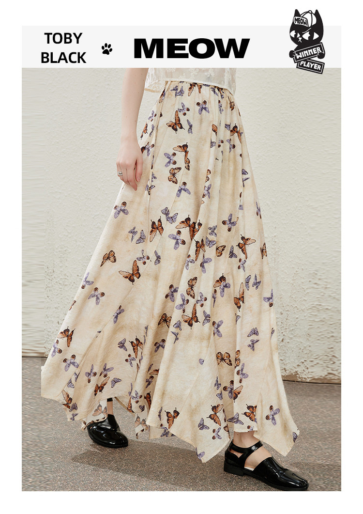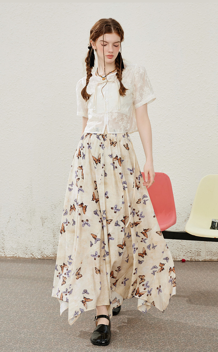 【新中式穿搭】蝴蝶印花设计感长裙夏复古高级气质半截裙 797917