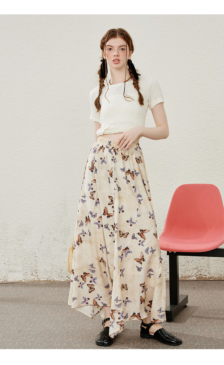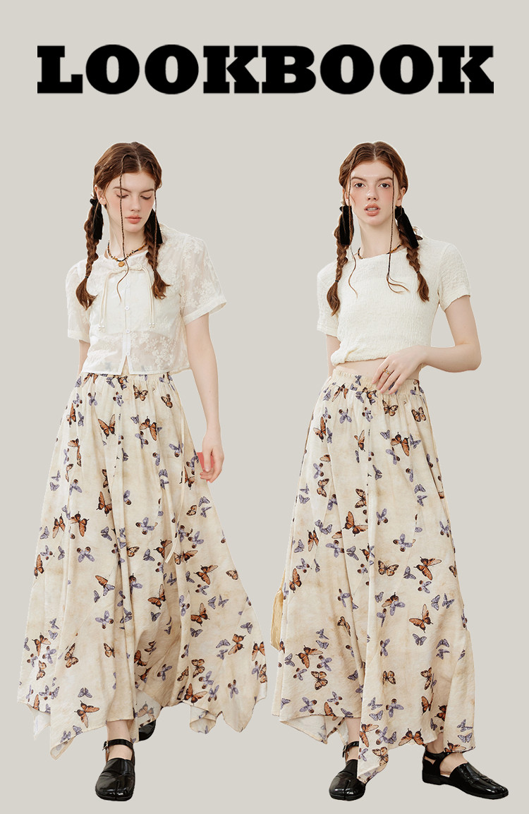 商品名称:【新中式穿搭】蝴蝶印花设计感长裙夏复古高级气质半截裙 797917
