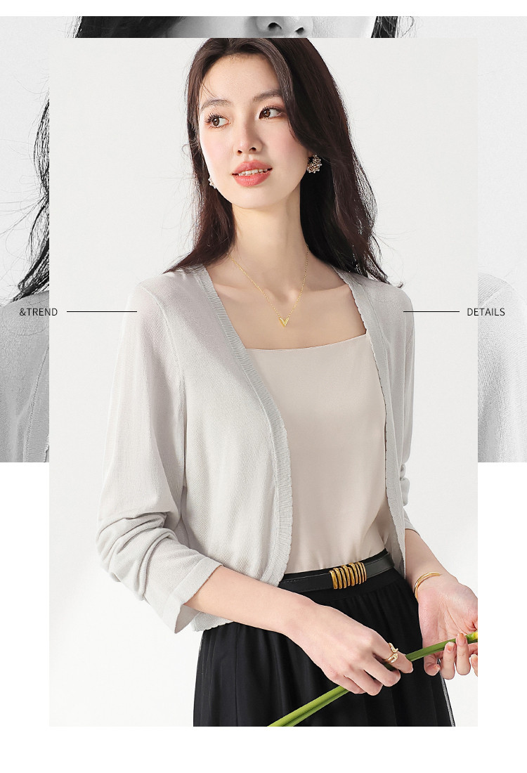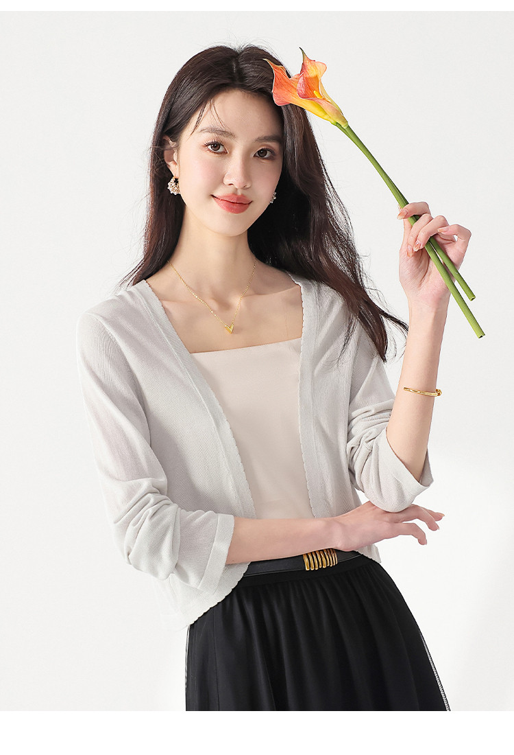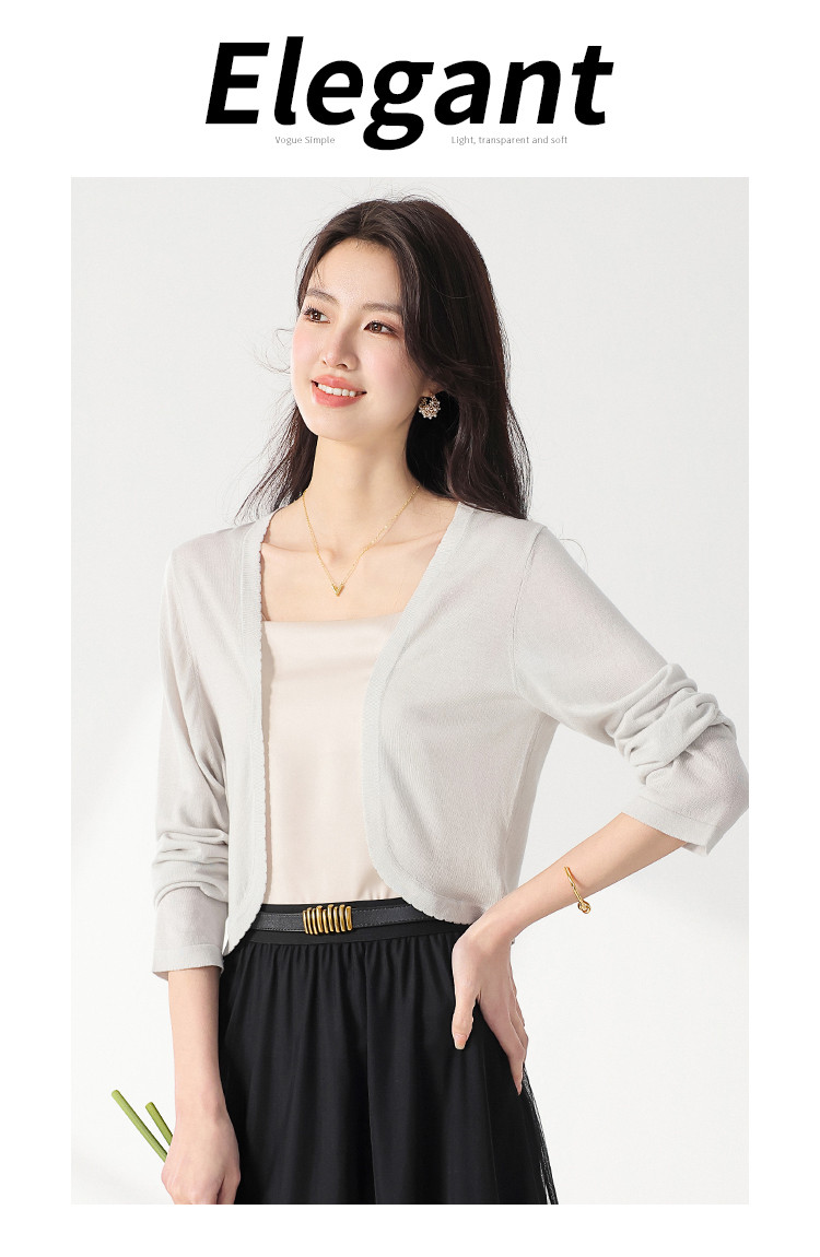 【含桑蚕丝】简约百搭纯色长袖针织打底开衫毛衣外套夏款小披肩 268563