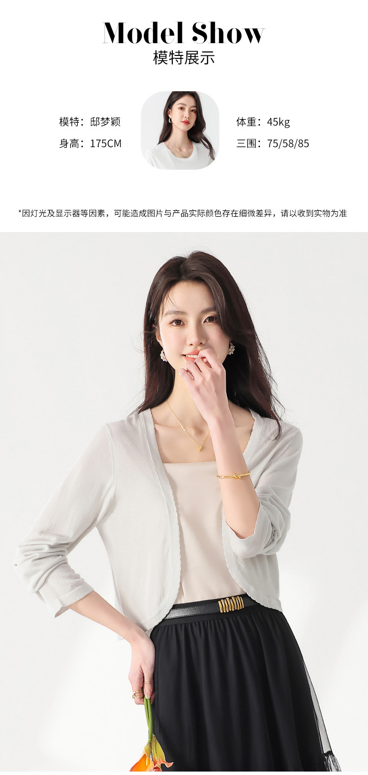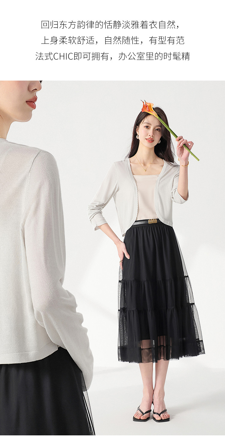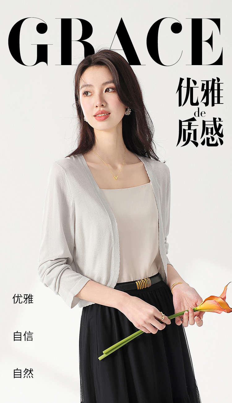商品名称:【含桑蚕丝】简约百搭纯色长袖针织打底开衫毛衣外套夏款小披肩 268563
