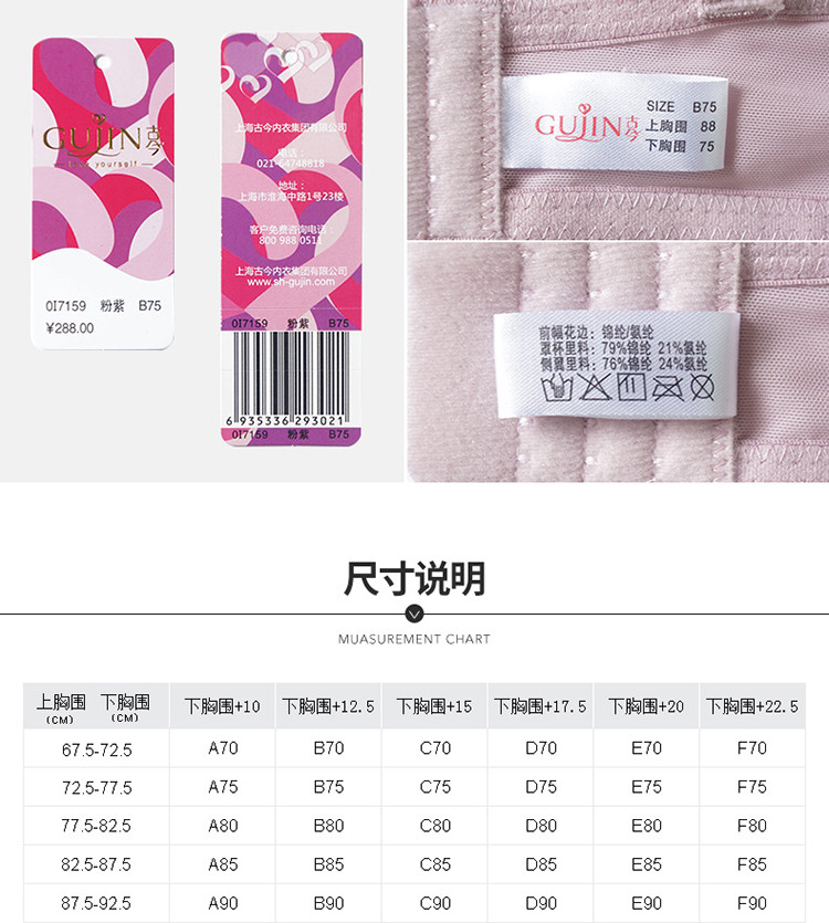 【新中式聚拢侧收】优质蕾丝大胸显小亲肤纯棉里料内衣调整文胸罩 954718