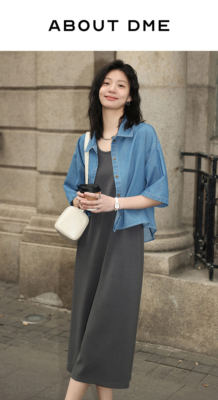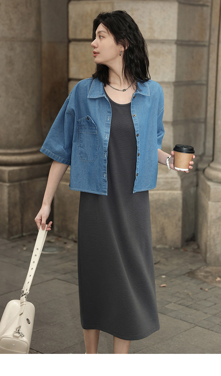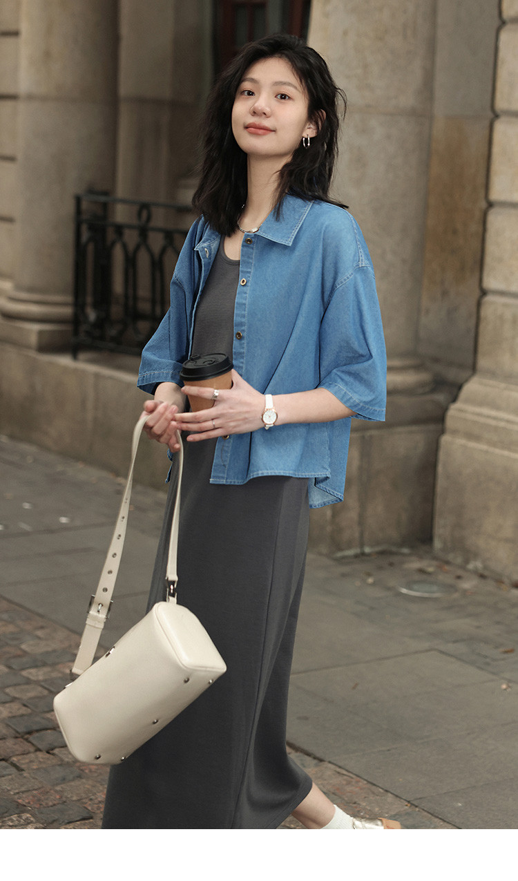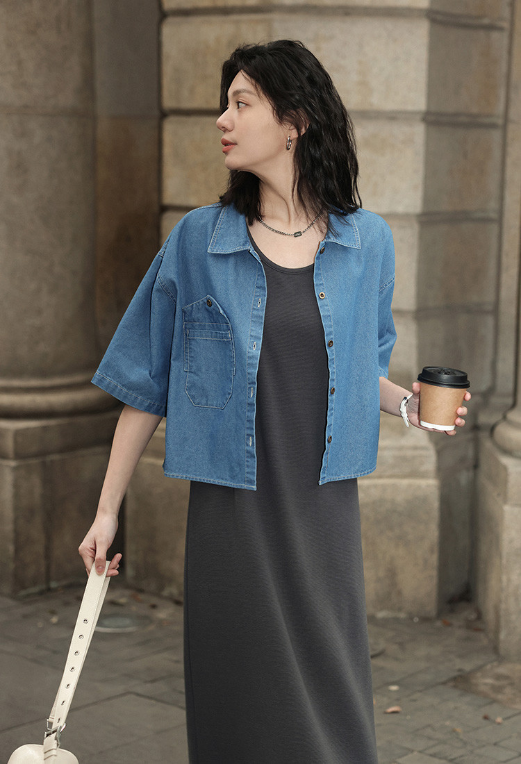 【设计感口袋牛仔上衣】夏异形重叠口袋翻领牛仔衬衫女 148994