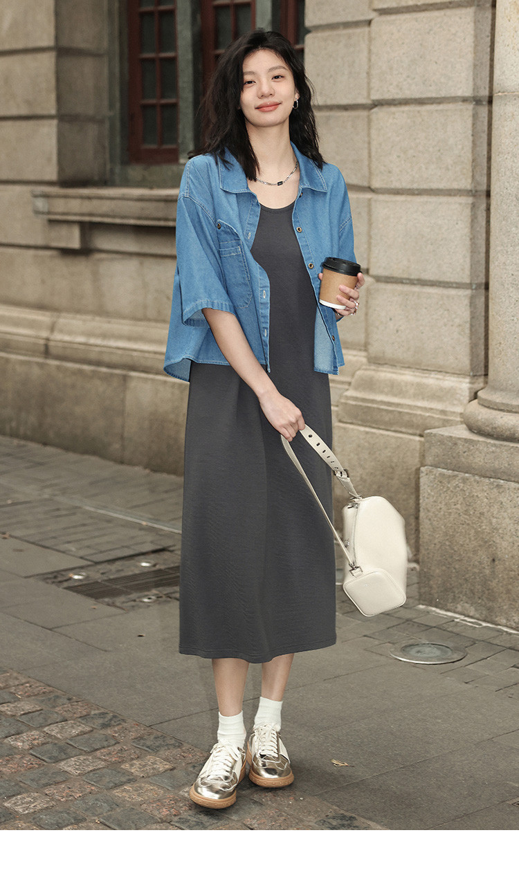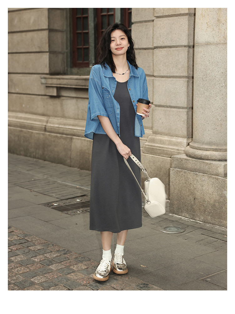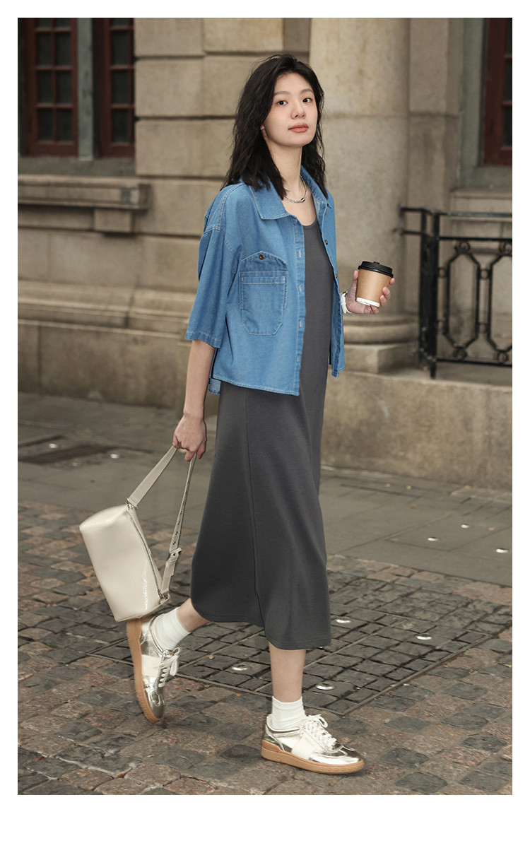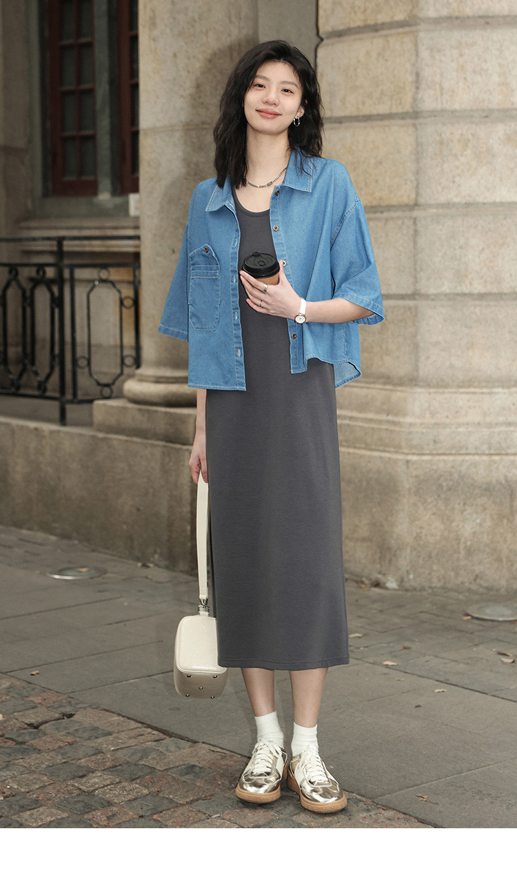 【设计感口袋牛仔上衣】夏异形重叠口袋翻领牛仔衬衫女 148994