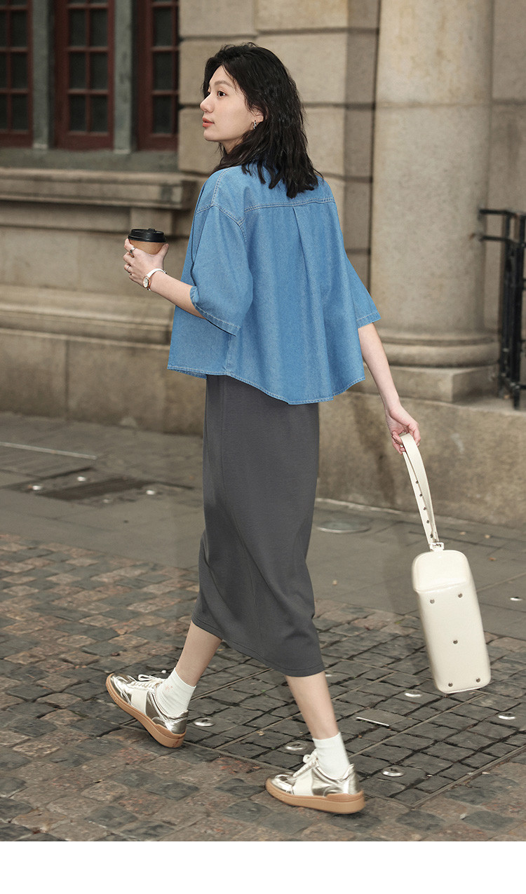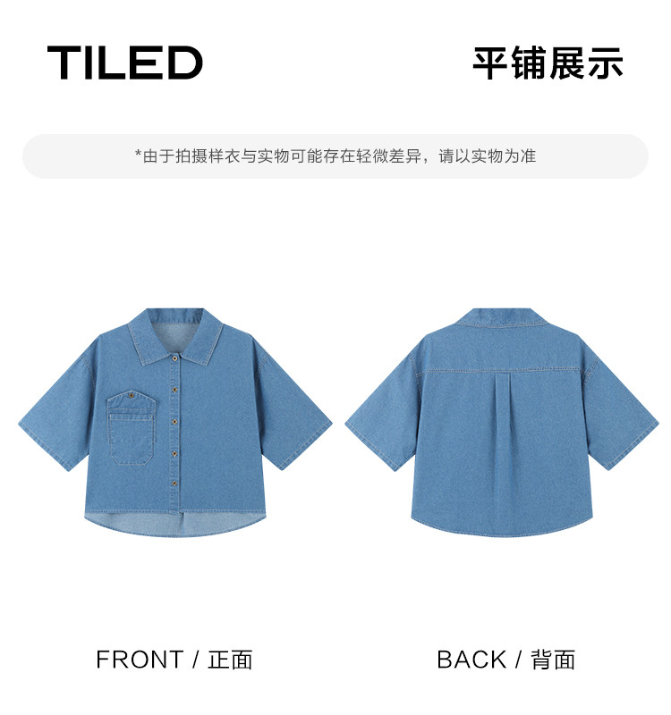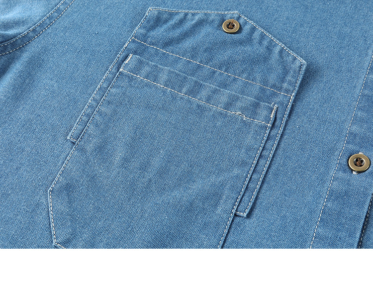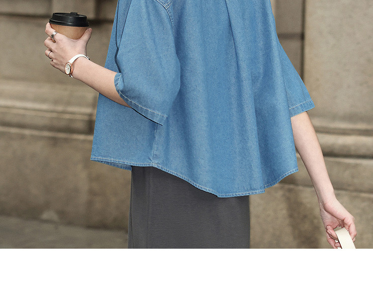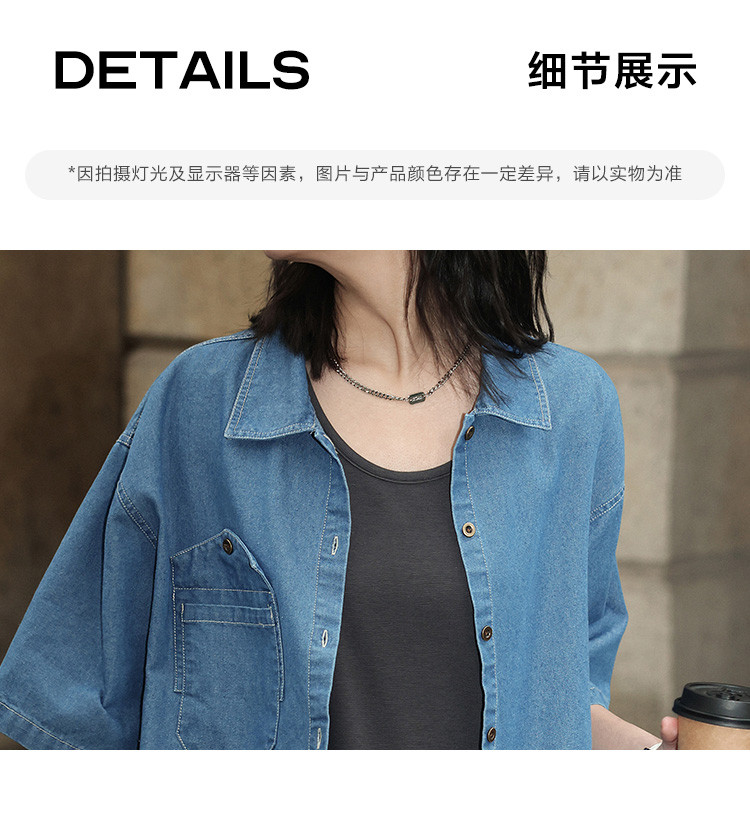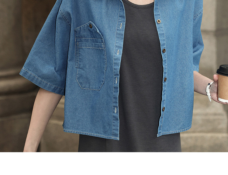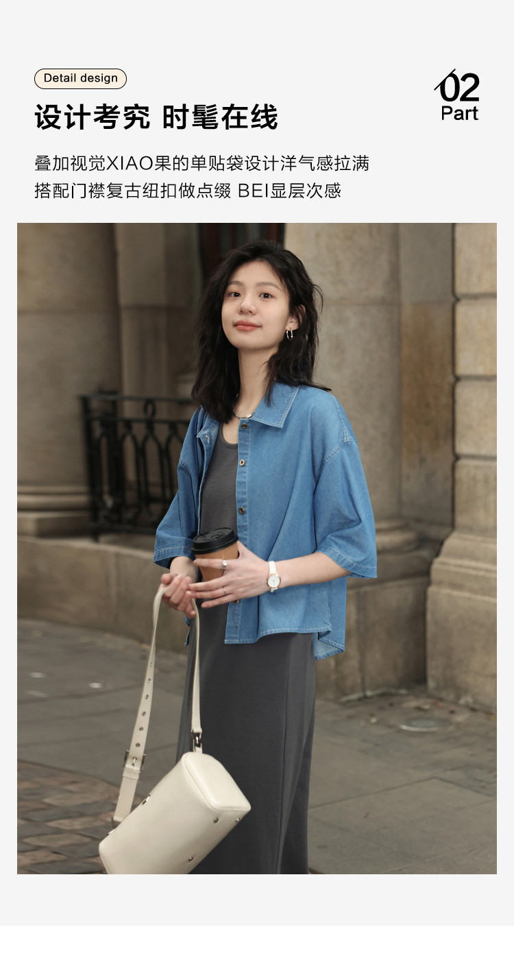商品名称:【设计感口袋牛仔上衣】夏异形重叠口袋翻领牛仔衬衫女 148994