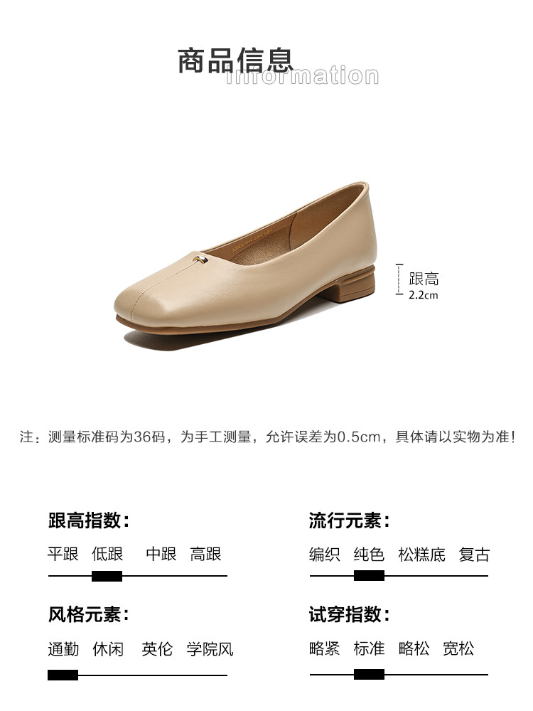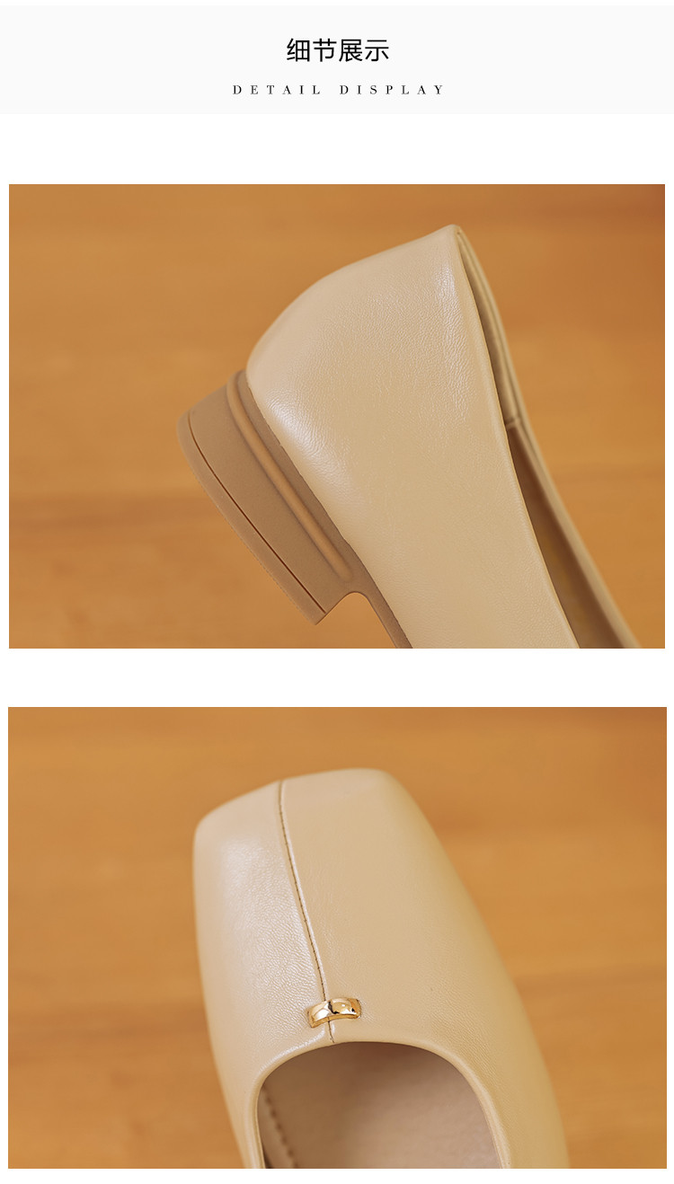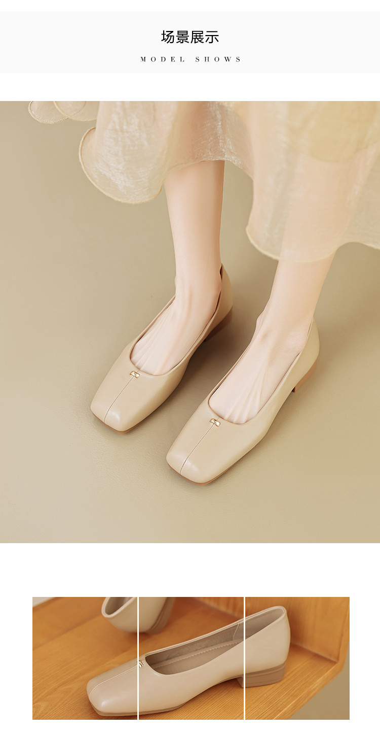 商品名称:春夏简约日常舒适软面金属拼接方头低跟通勤女单鞋 593025