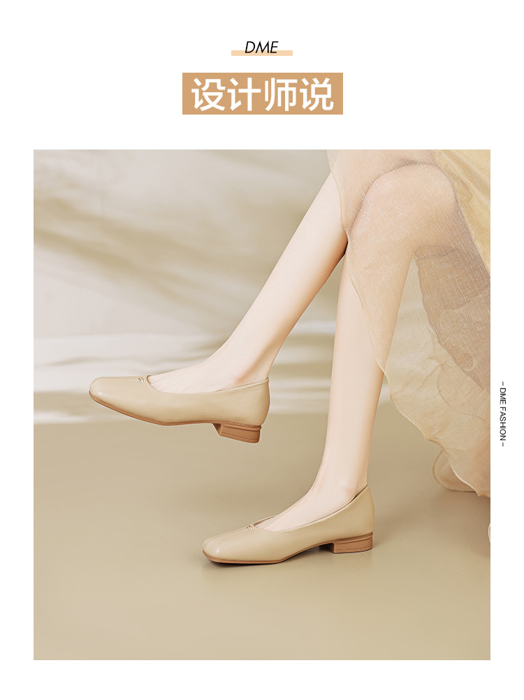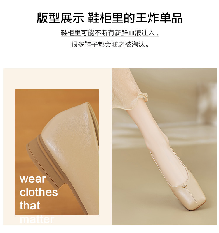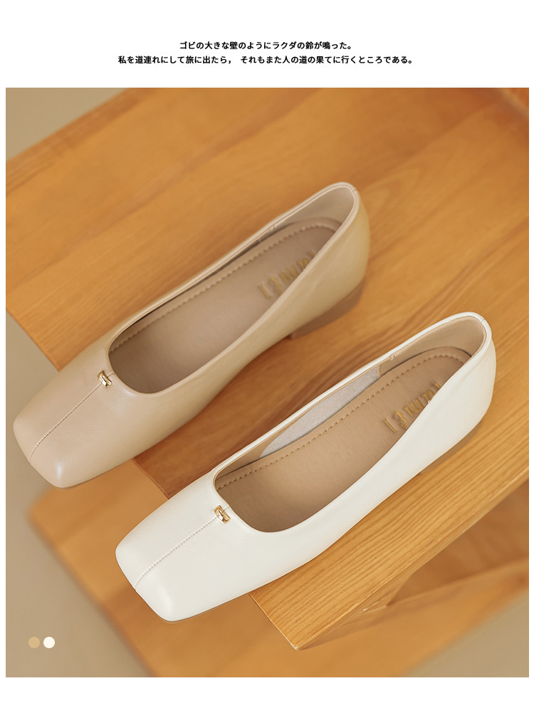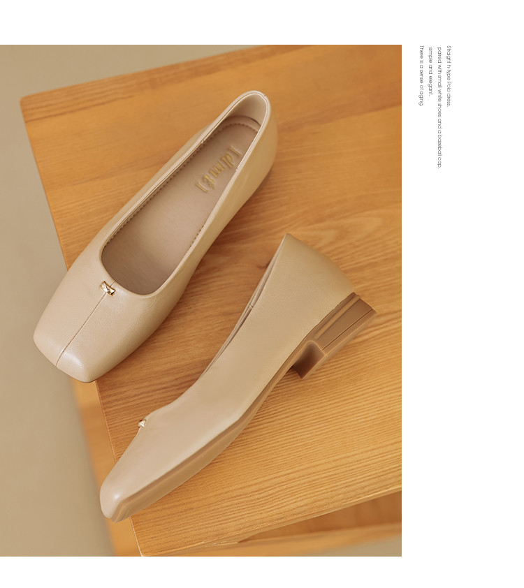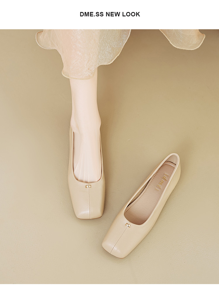 商品名称:春夏简约日常舒适软面金属拼接方头低跟通勤女单鞋 593025