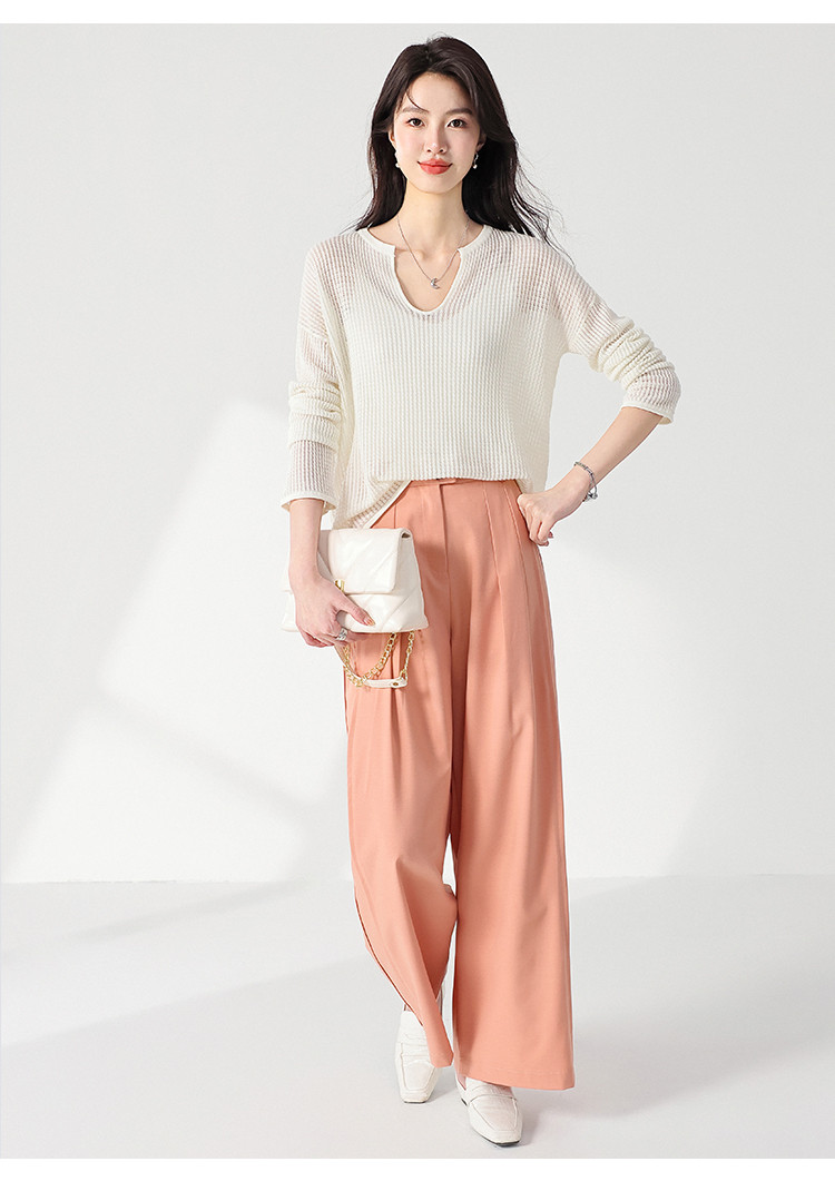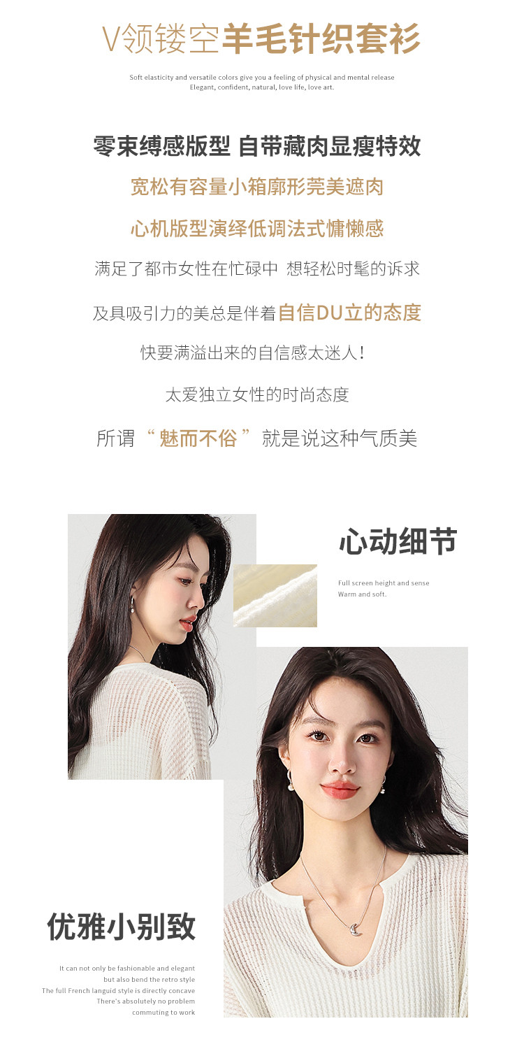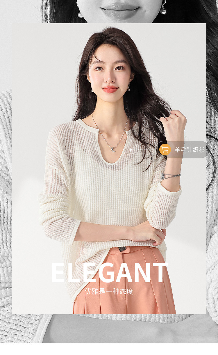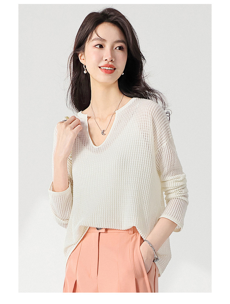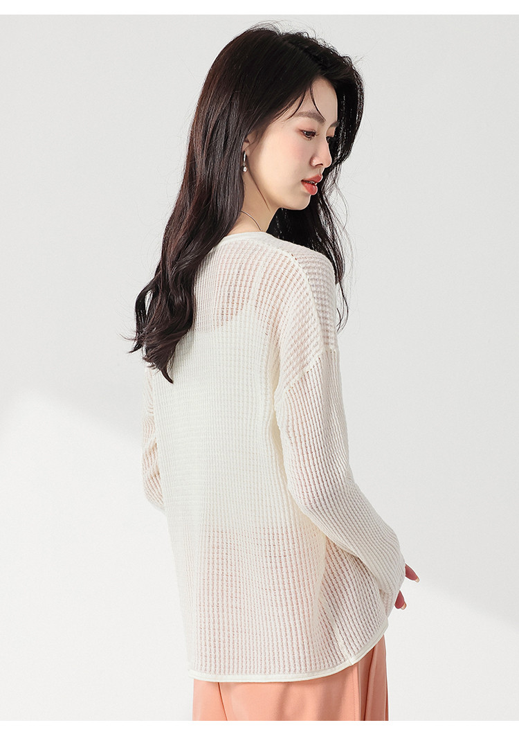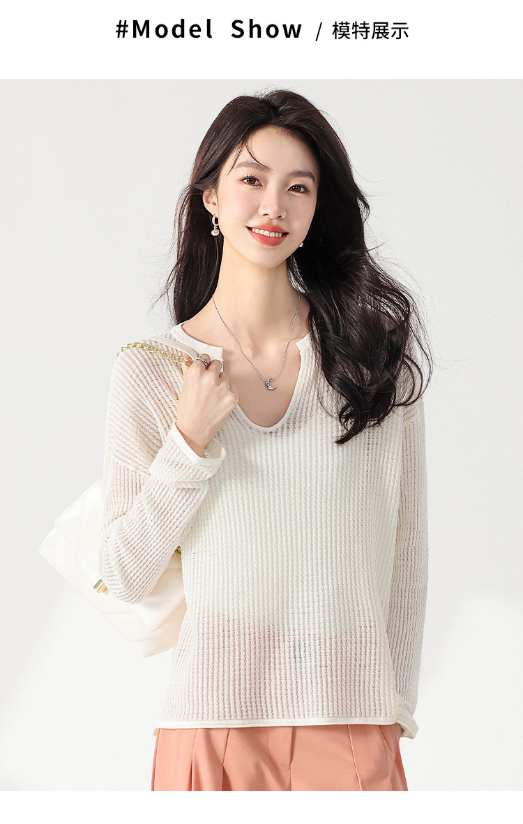 商品名称:轻薄透气网眼镂空纯色V领长袖羊毛针织衫毛衣罩衫空调衫夏款T恤 583315