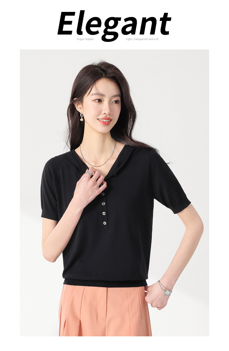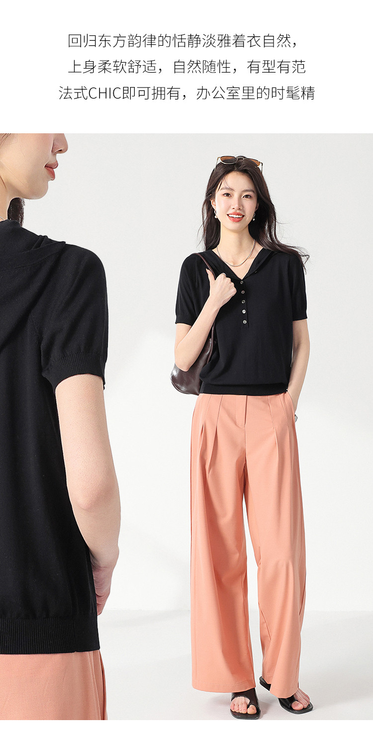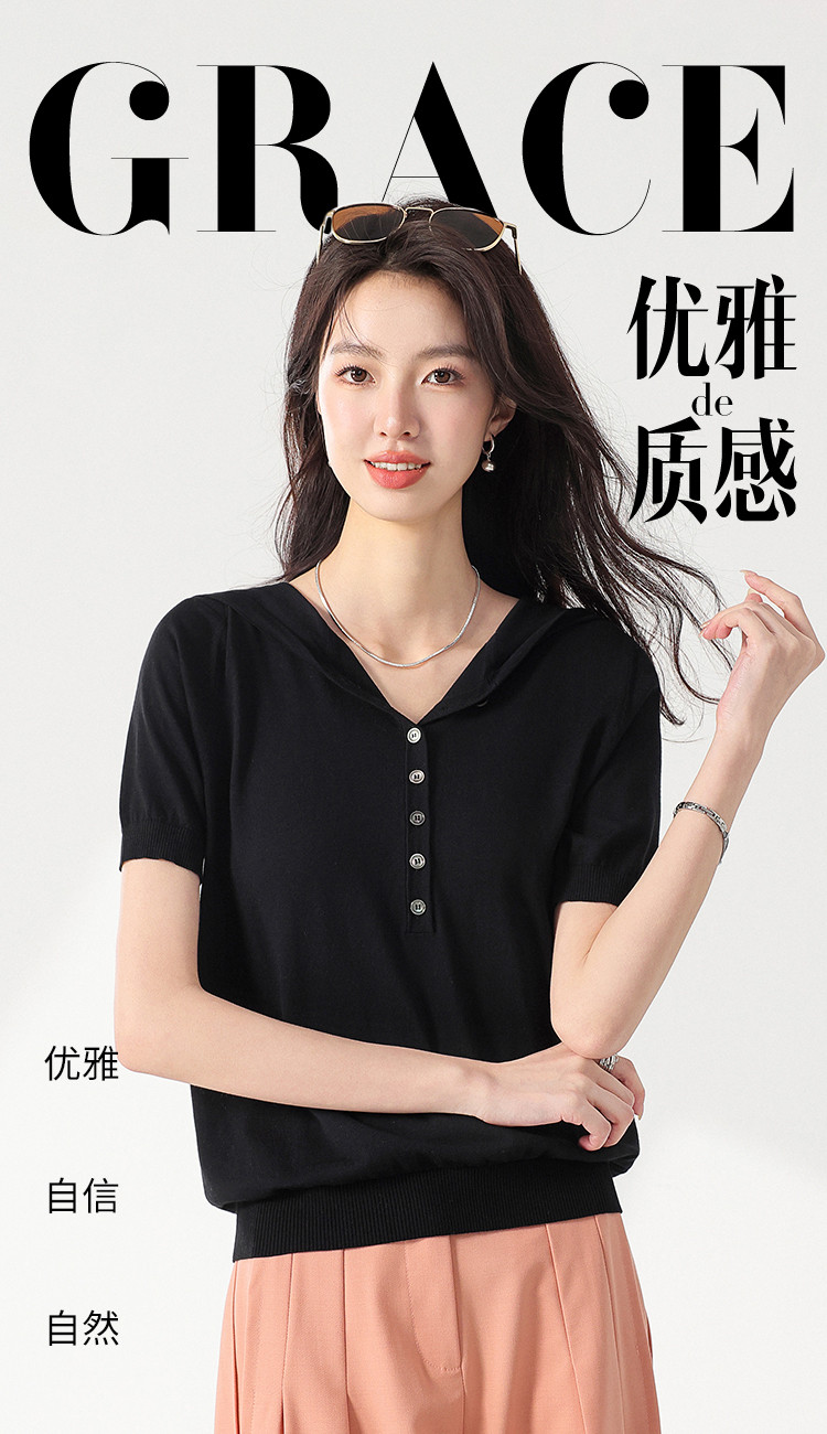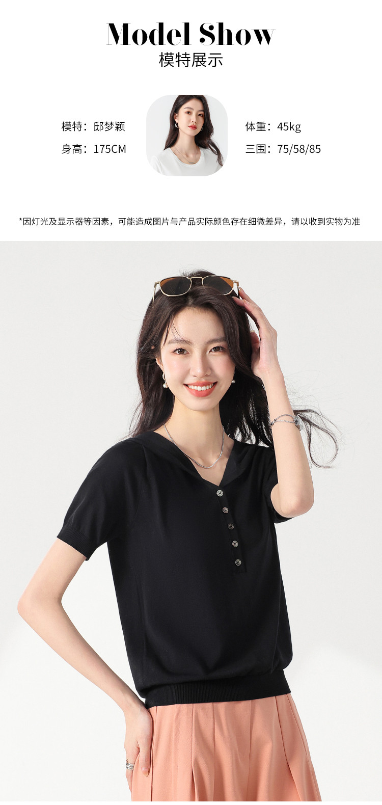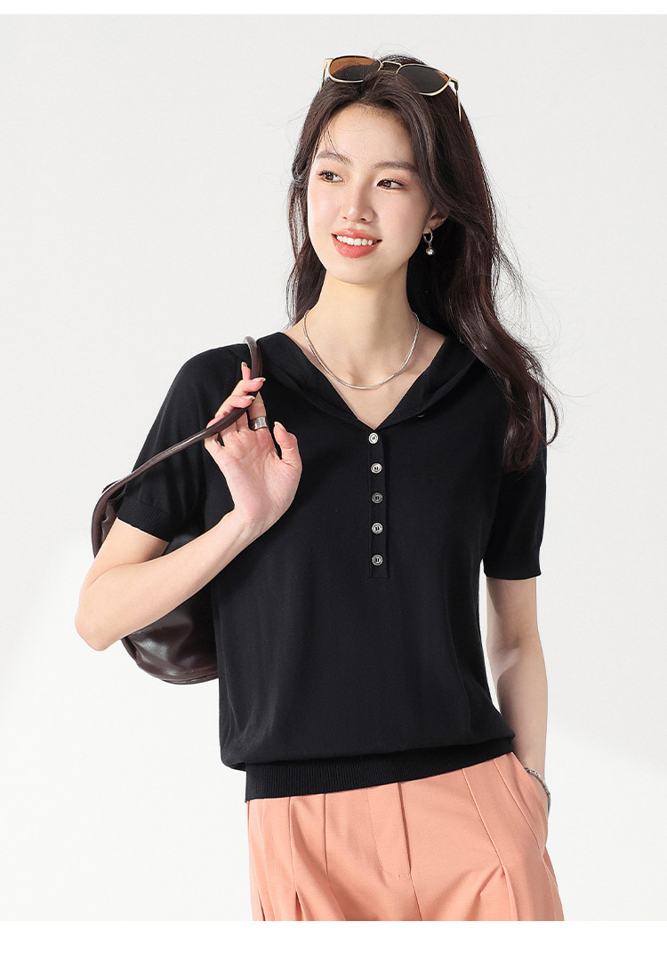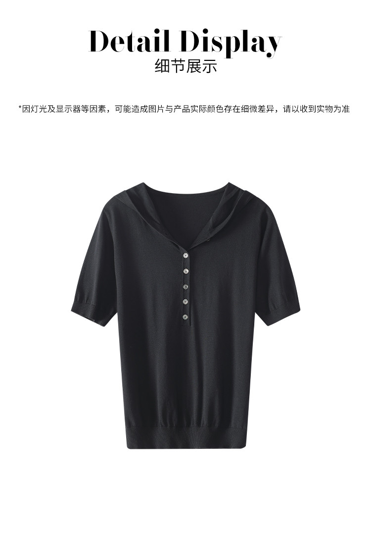 商品名称:【含桑蚕丝】简约百搭纯色连帽短袖卫衣针织衫打底衫T恤女夏 334099
