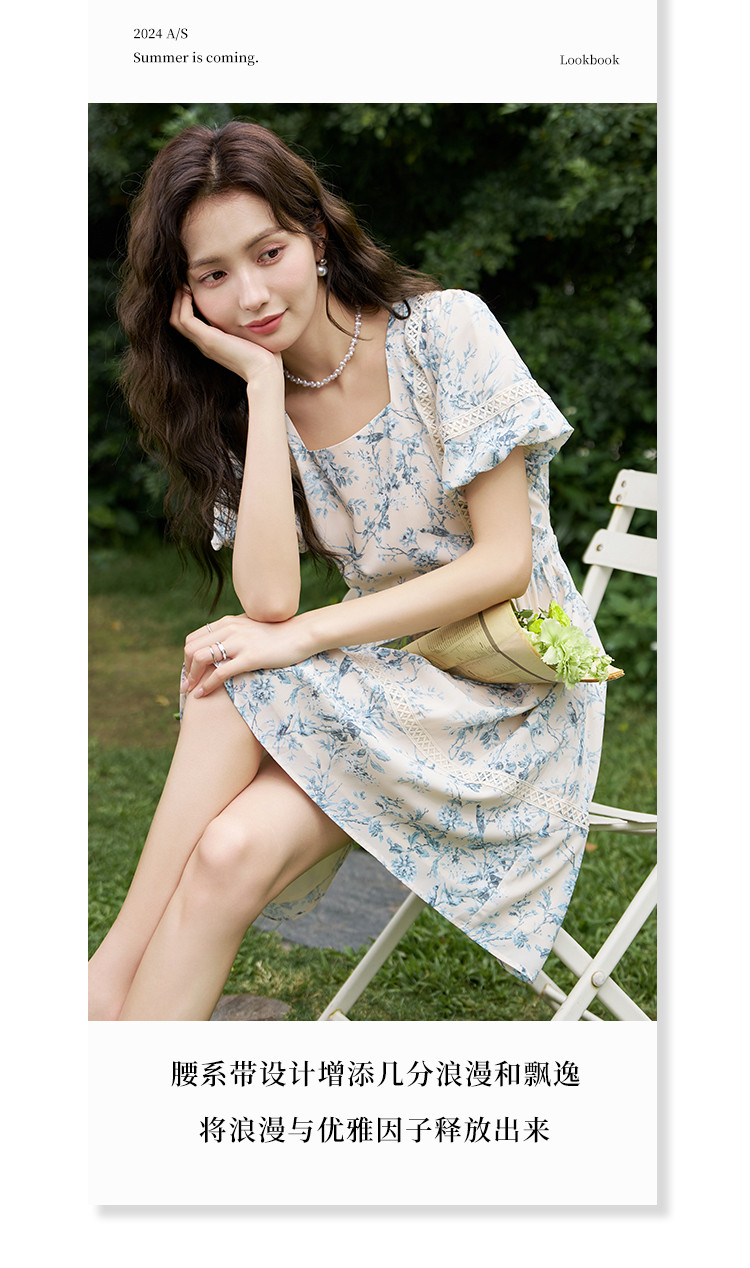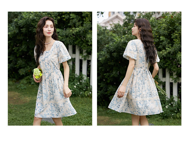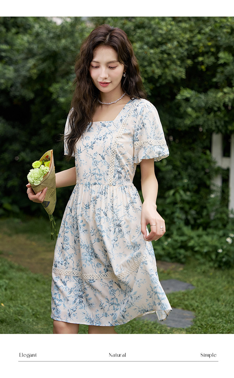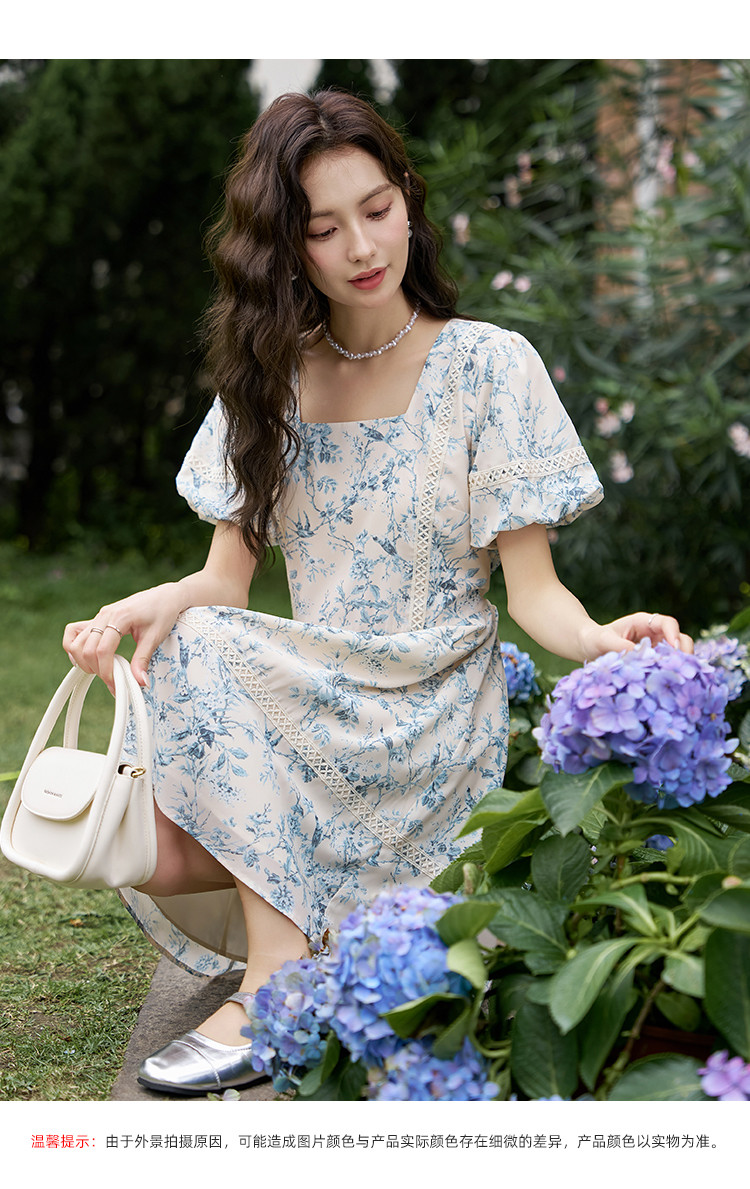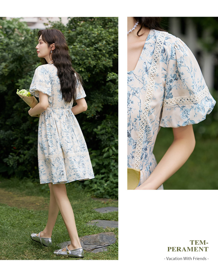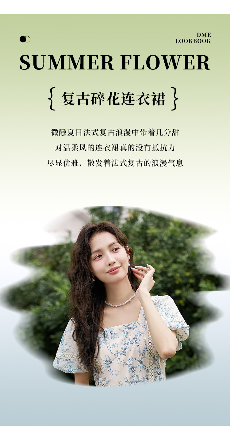 商品名称:【法式复古碎花连衣裙】夏季甜美温柔蕾丝拼接显瘦裙子女 470337