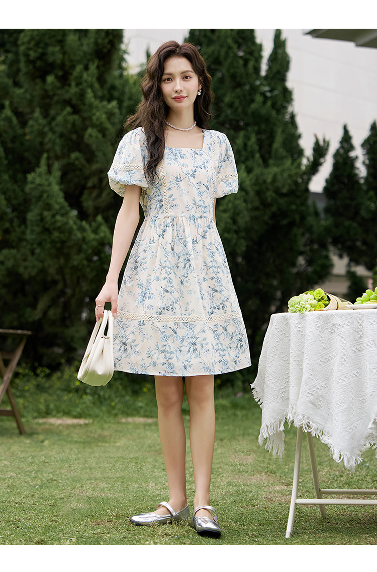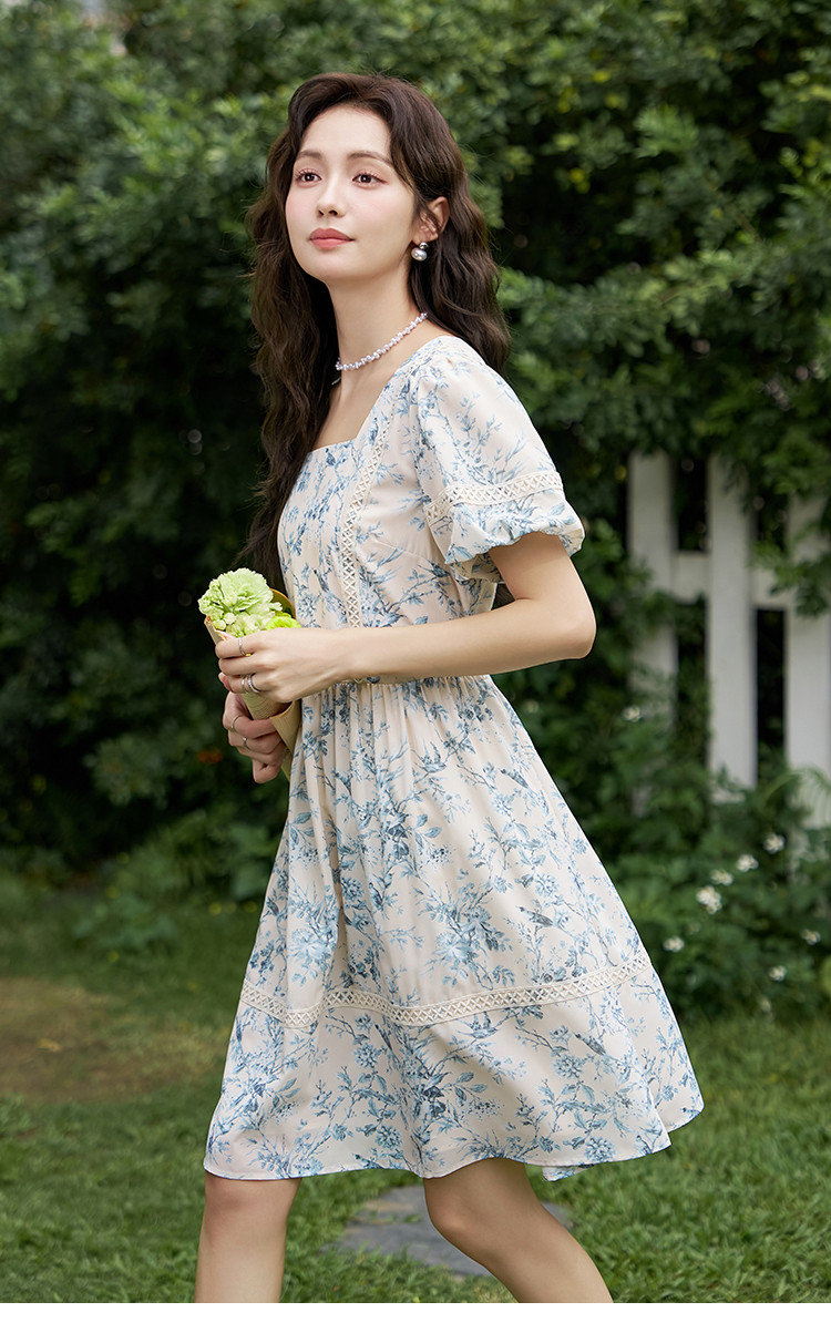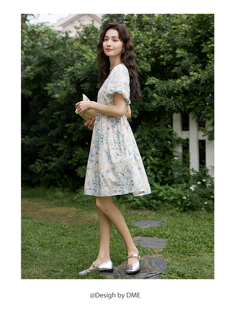 【法式复古碎花连衣裙】夏季甜美温柔蕾丝拼接显瘦裙子女 470337