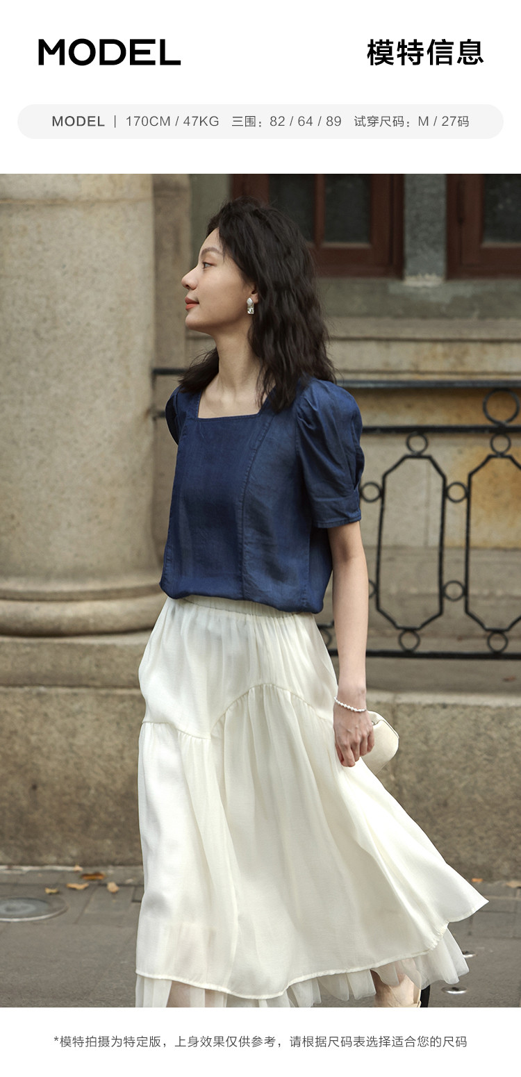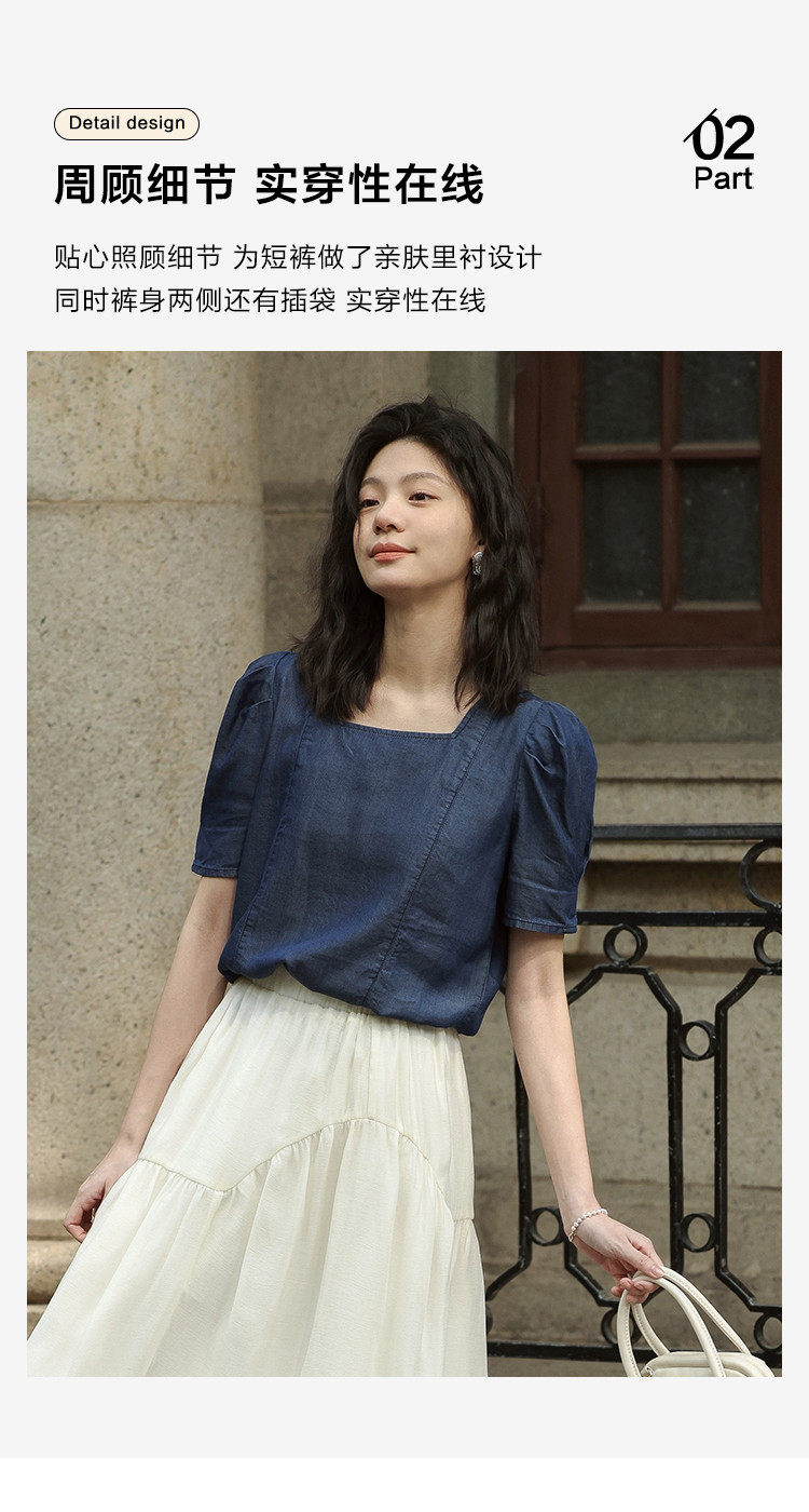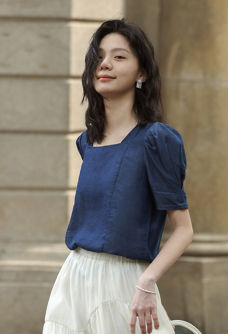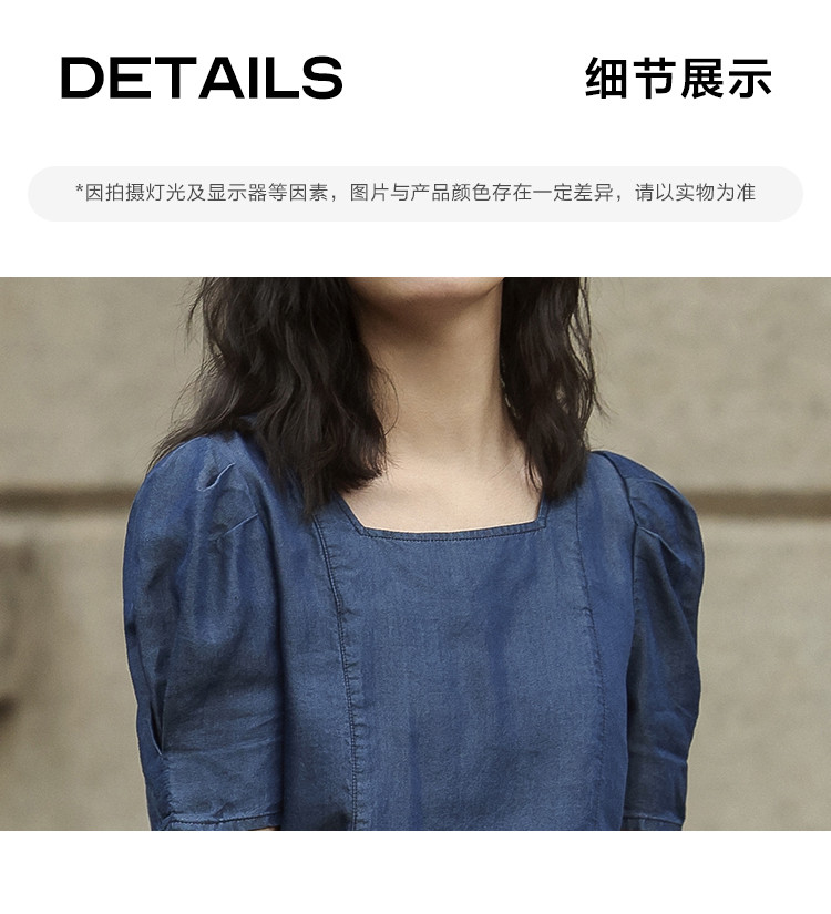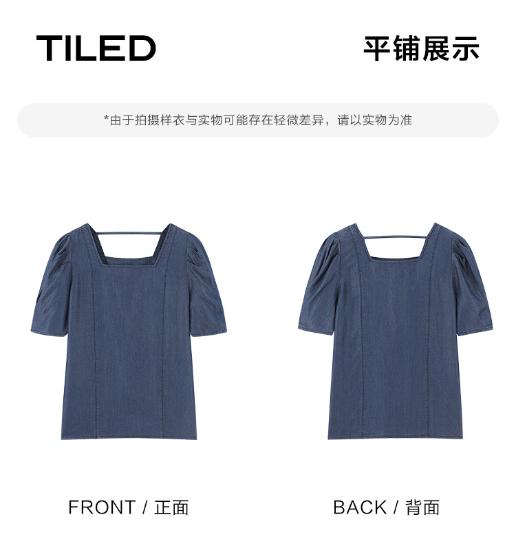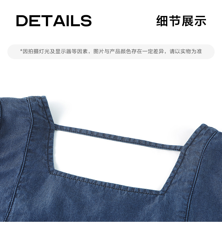 商品名称:【法式方领牛仔上衣】夏款背后小心机设计套头牛仔小衫 869058