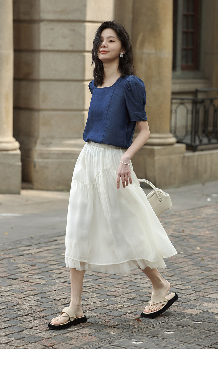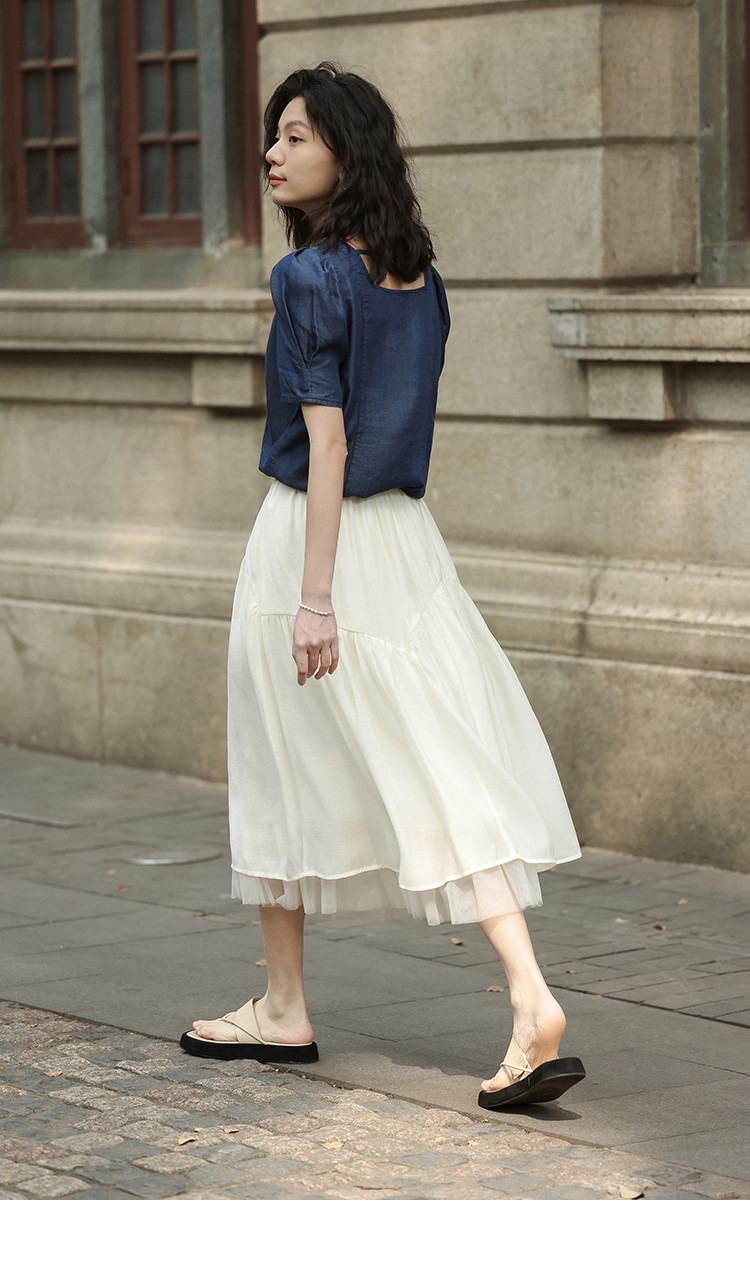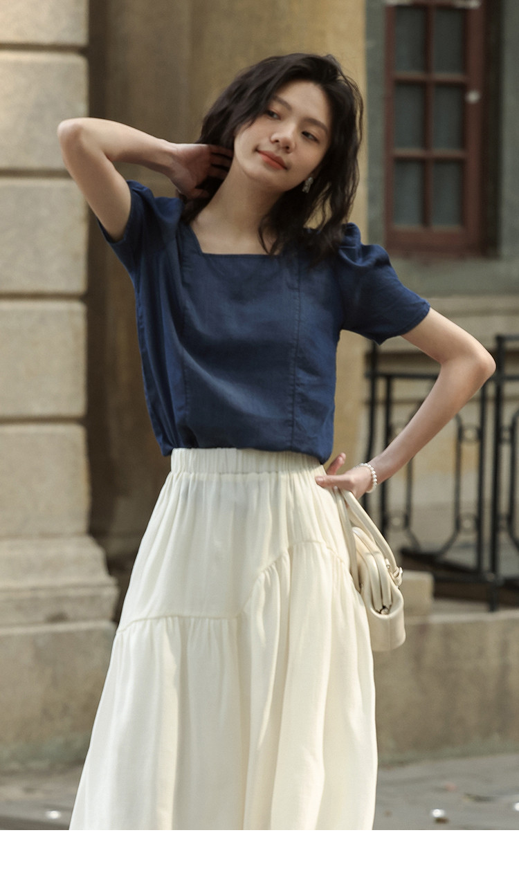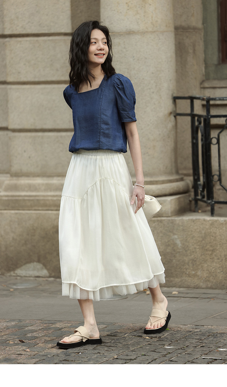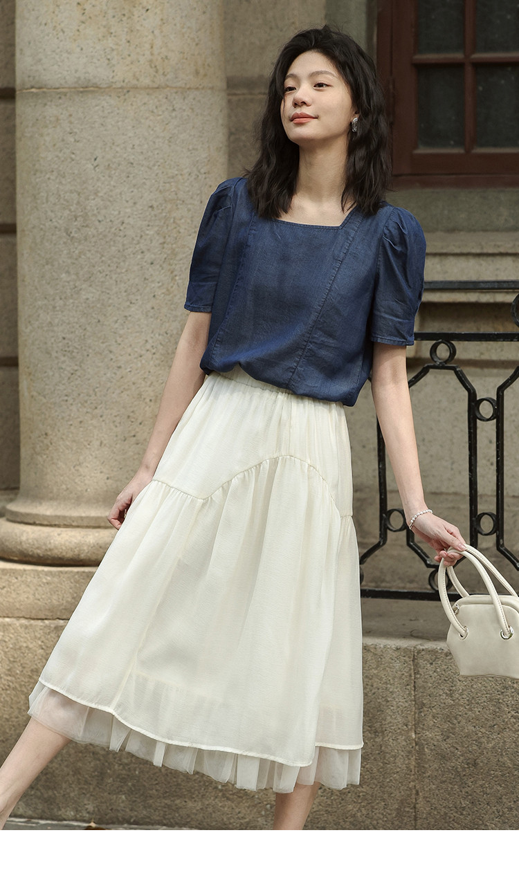 商品名称:【法式方领牛仔上衣】夏款背后小心机设计套头牛仔小衫 869058