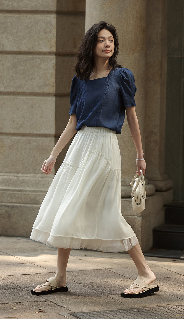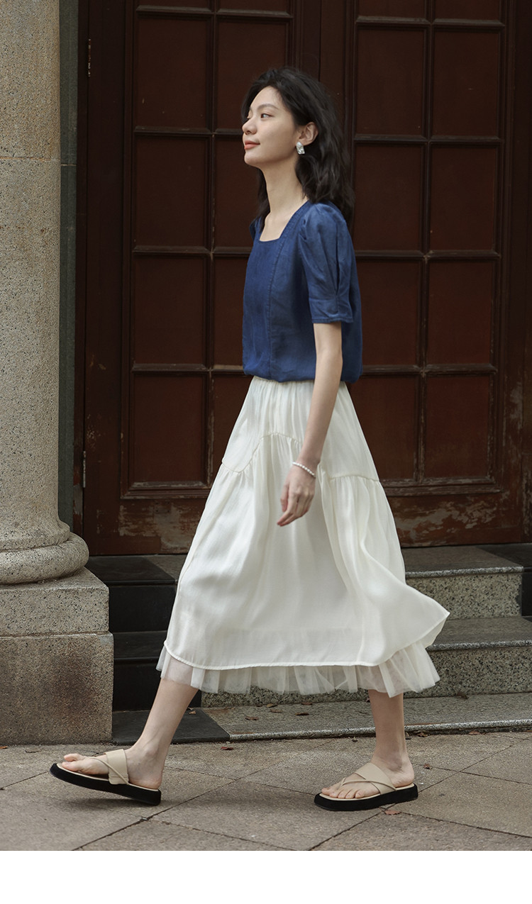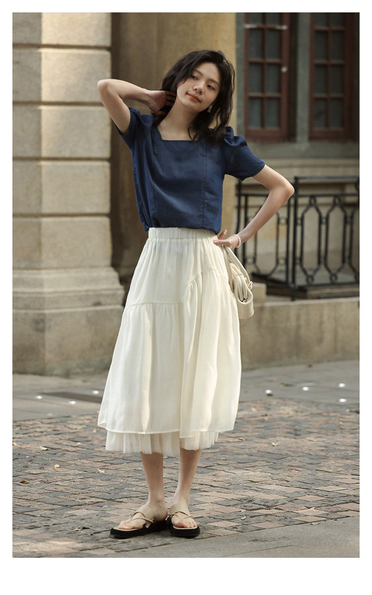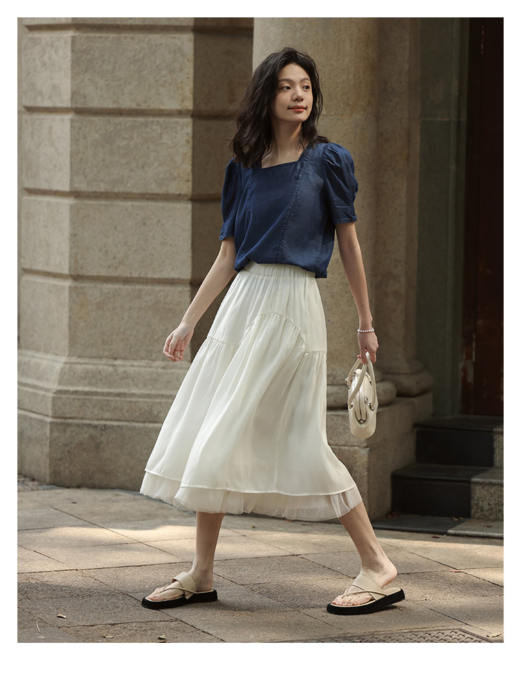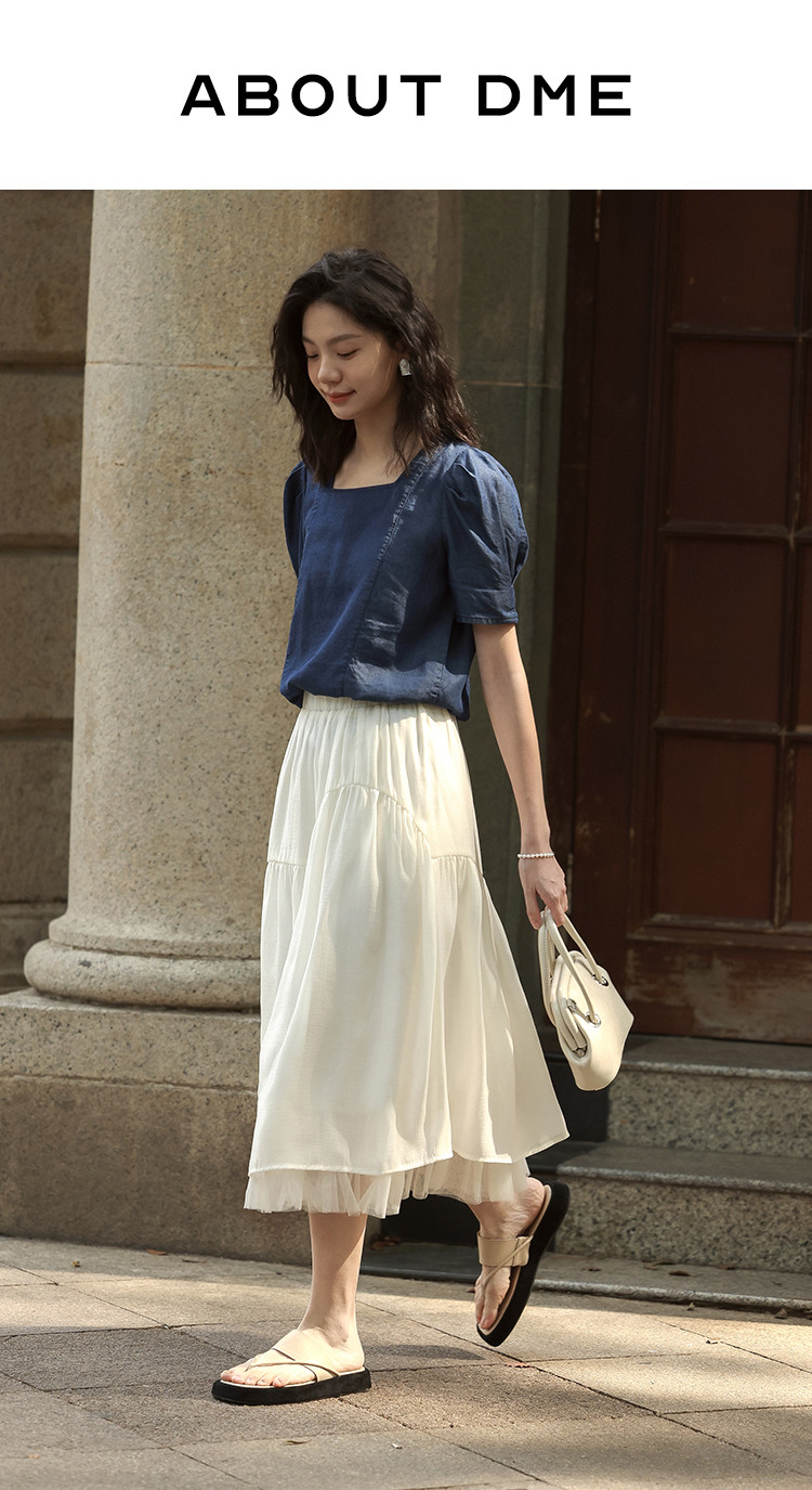 商品名称:【法式方领牛仔上衣】夏款背后小心机设计套头牛仔小衫 869058