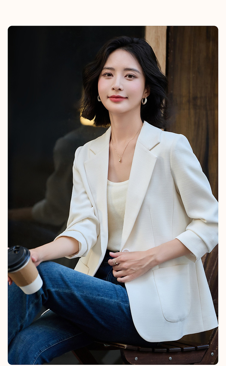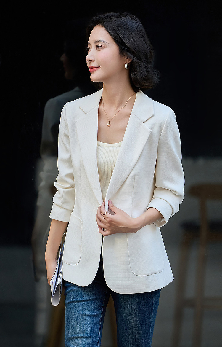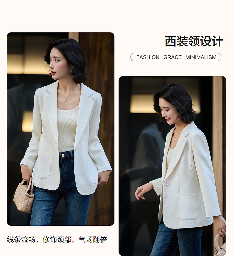 商品名称:【气质OL】春秋通勤商务简约西装领修身百搭一粒扣西服外套女 123137