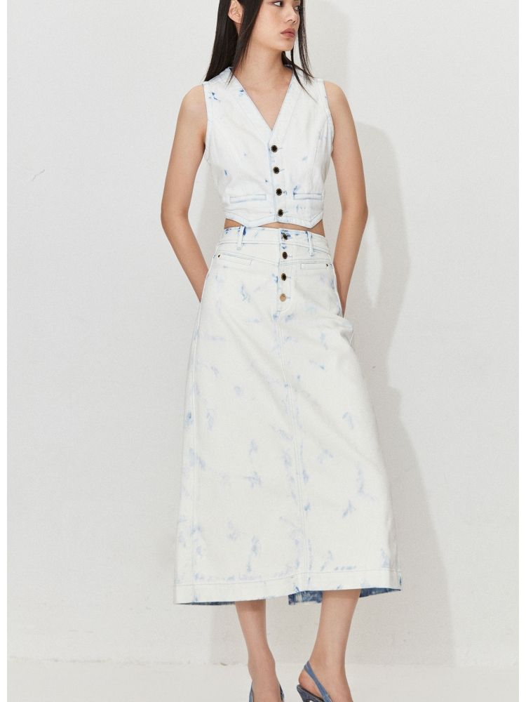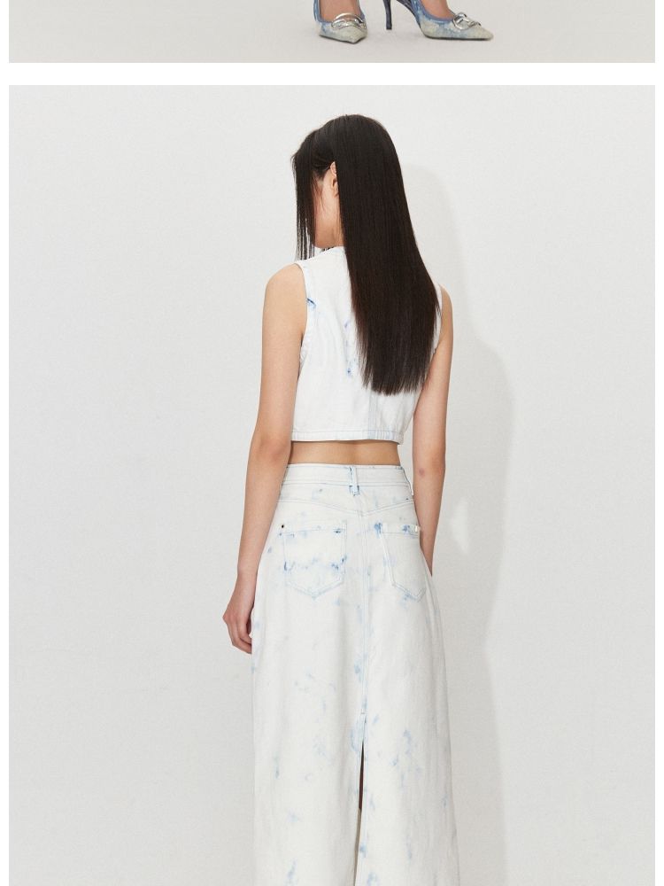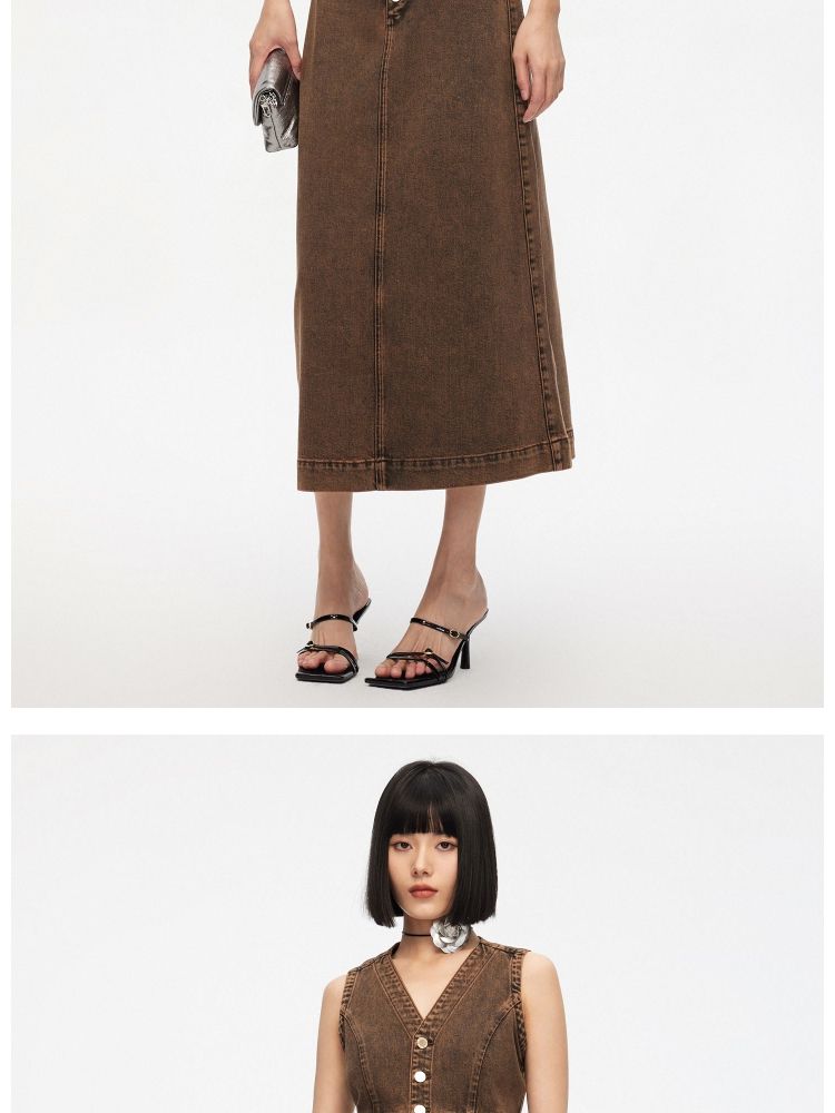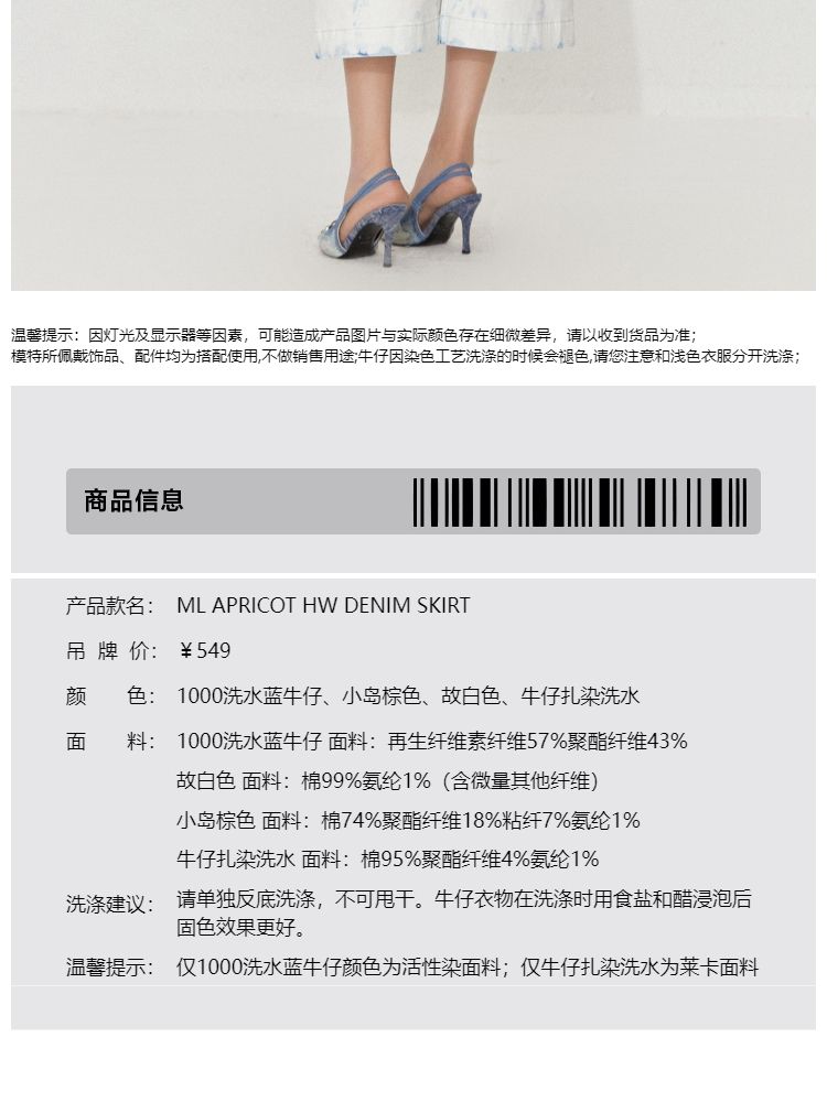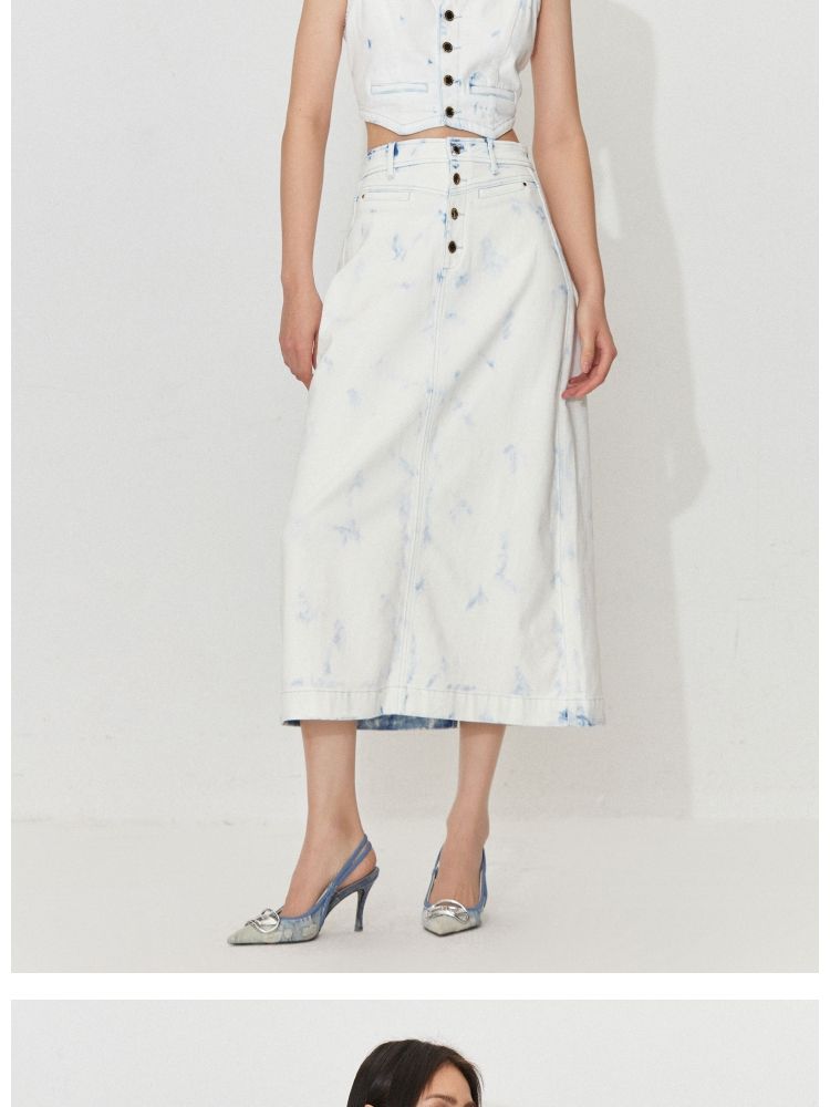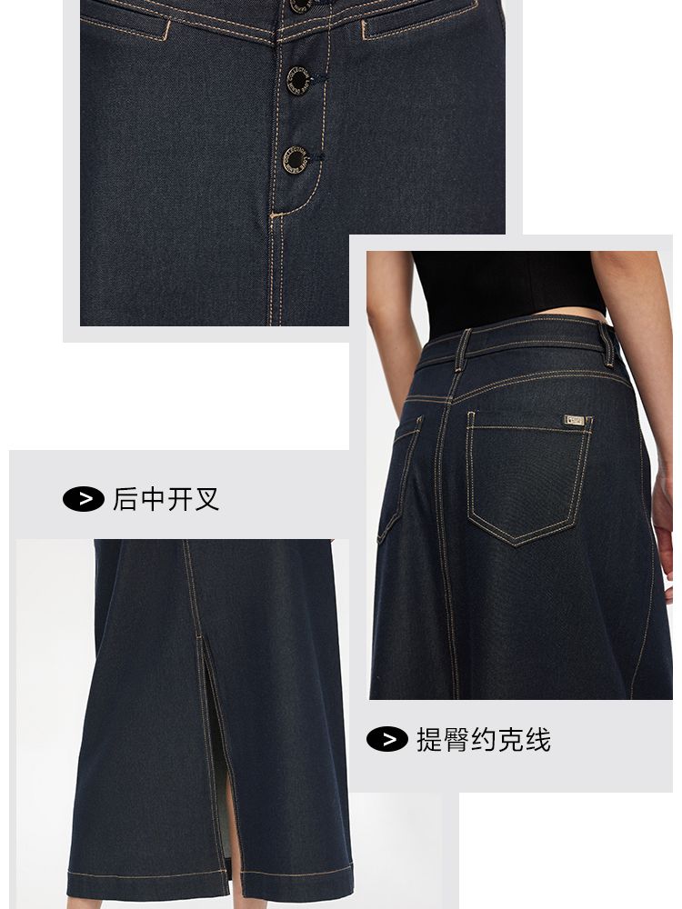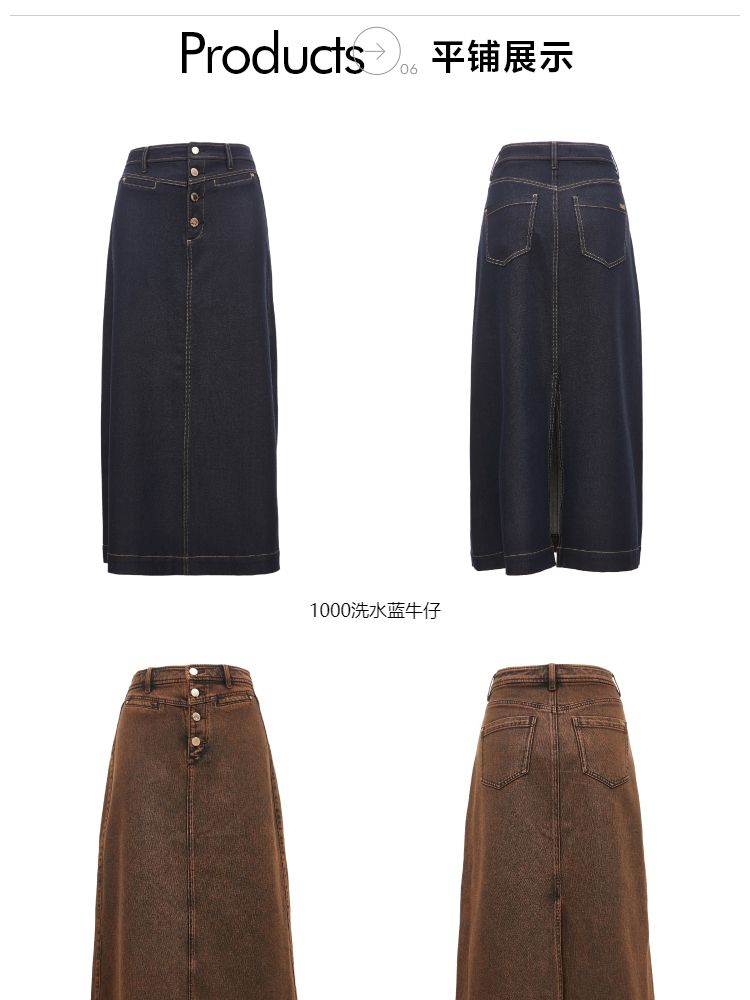 商品名称:【百搭】夏季高腰开叉活性染长款牛仔半身裙女 437722