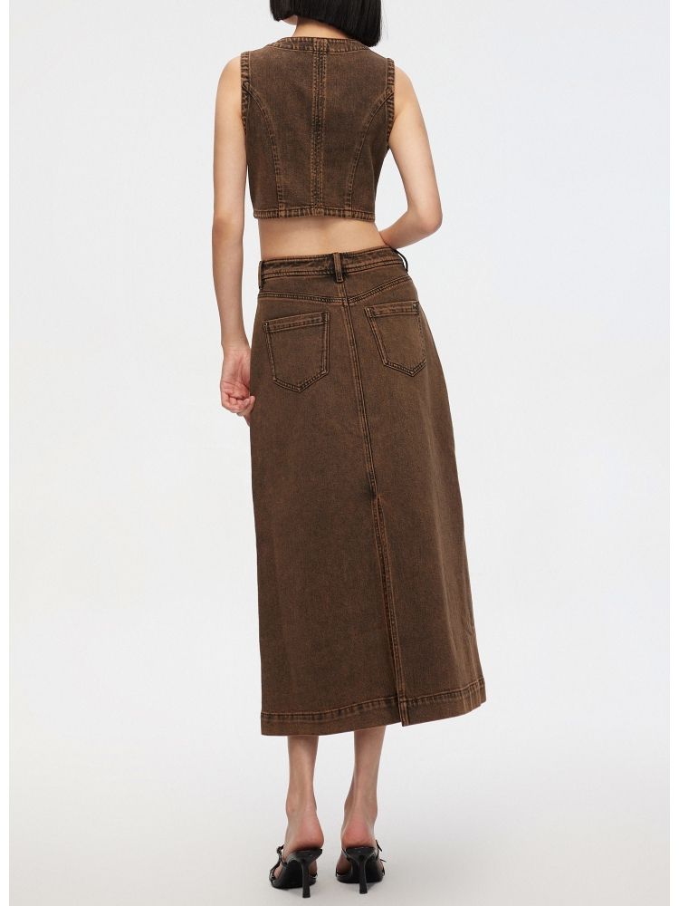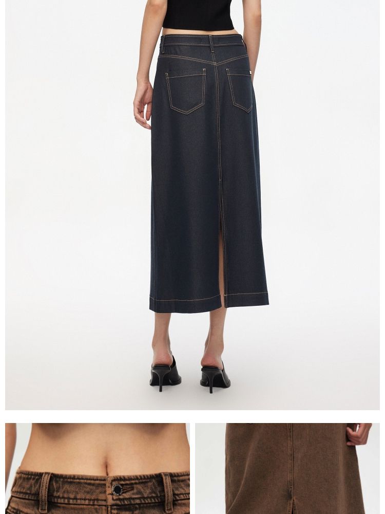 【百搭】夏季高腰开叉活性染长款牛仔半身裙女 437722