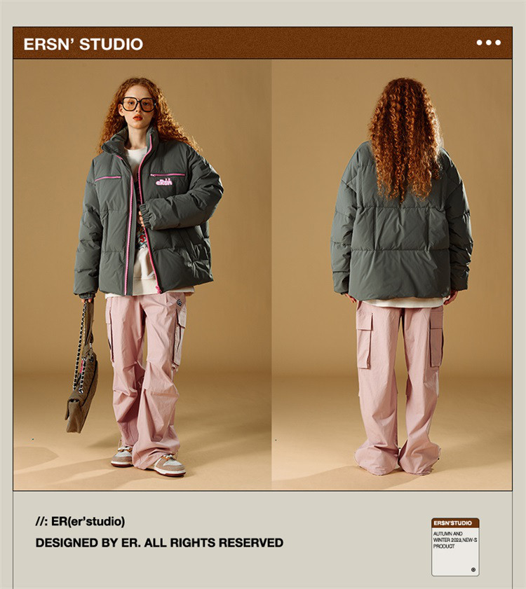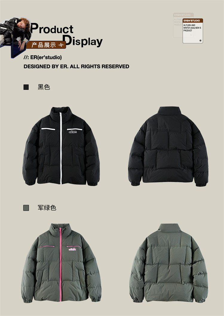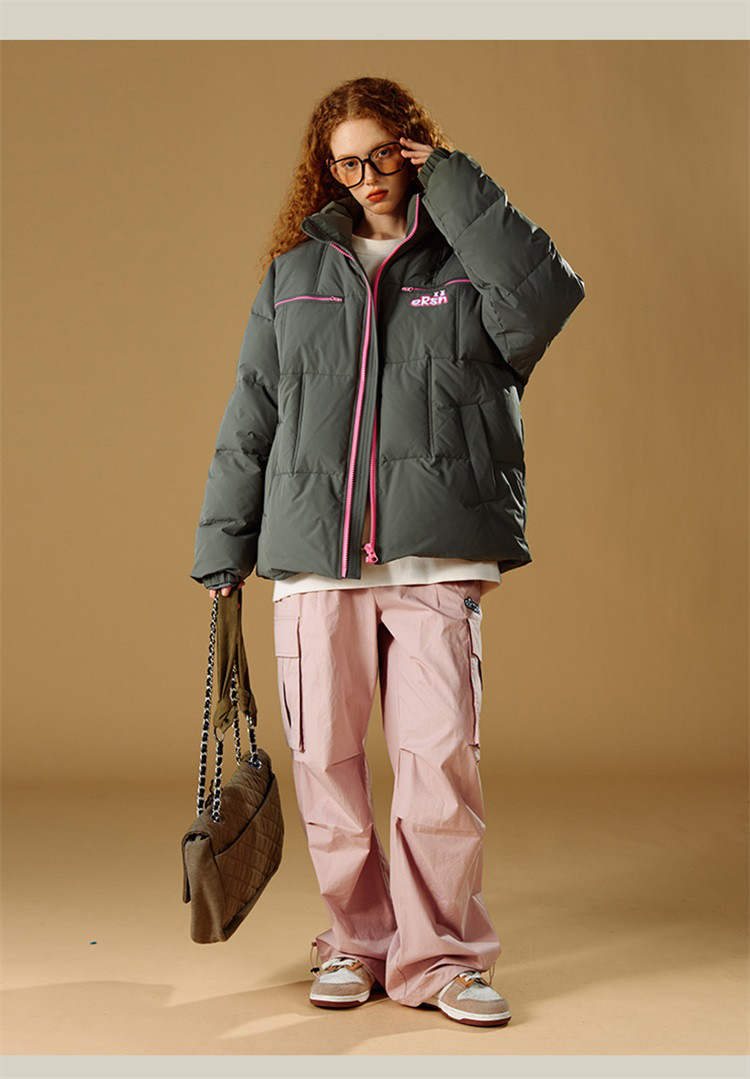 商品名称:撞色立领保暖羽绒服男女同款冬季美式潮牌90鸭绒保暖情侣外套 889431