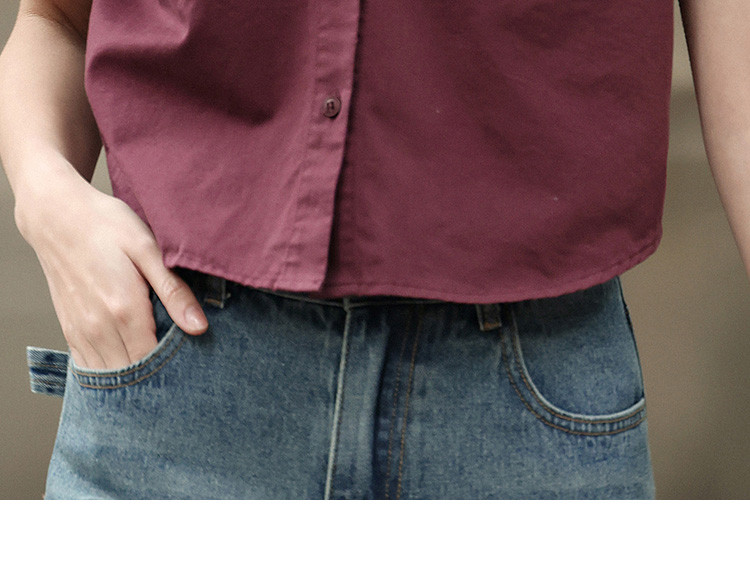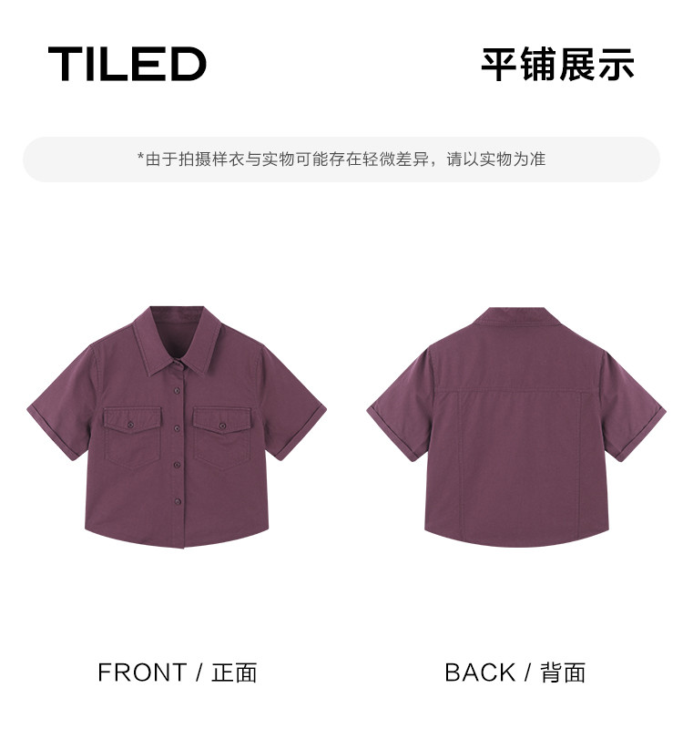 商品名称:【翻边短袖衬衫】夏款时髦翻领双贴袋袖口翻边短款外套女 028226