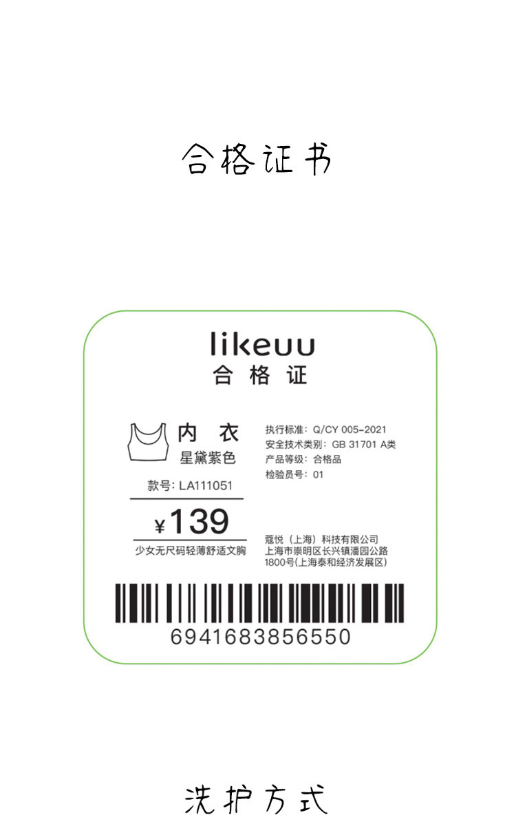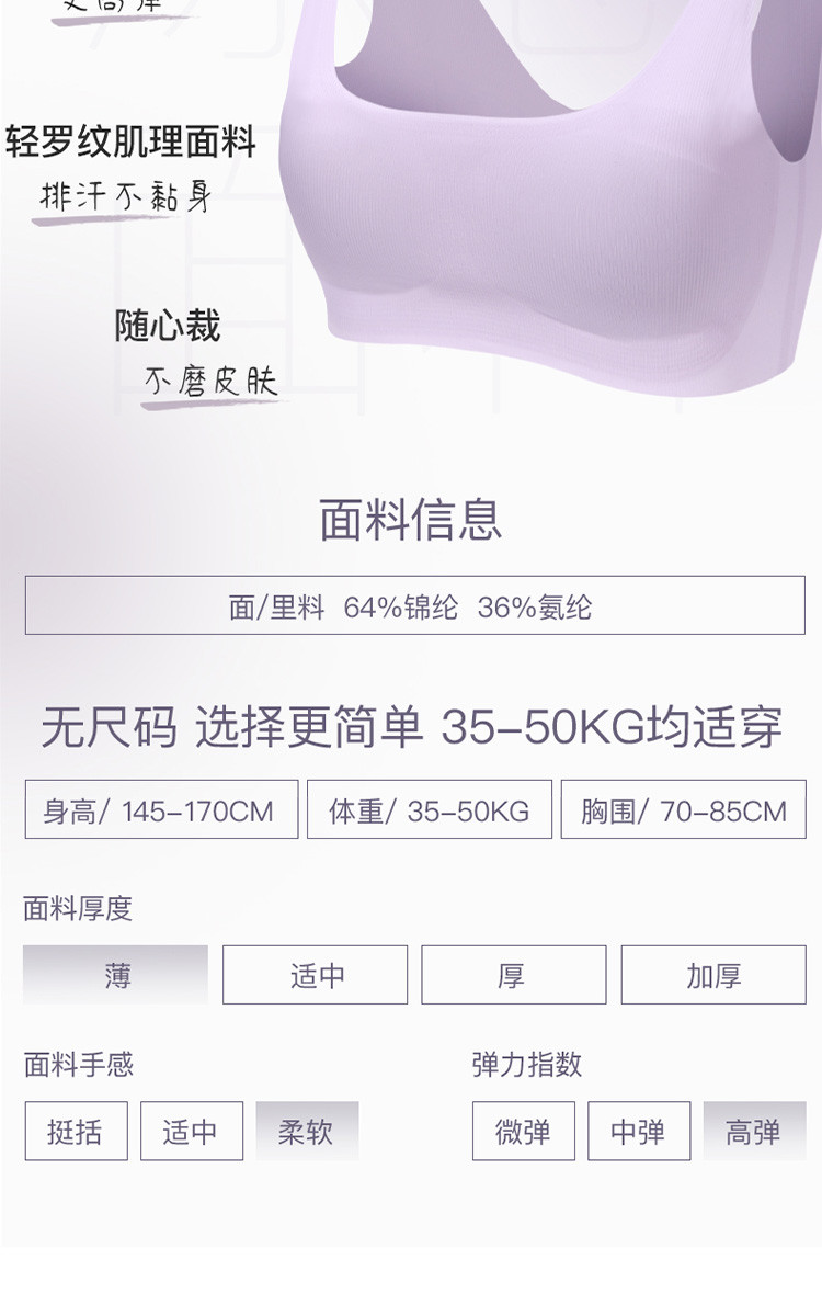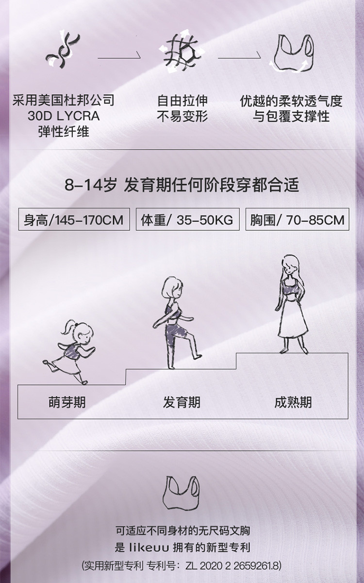 商品名称:【反季钜惠】likeuu少女无尺码轻薄舒适文胸 612352