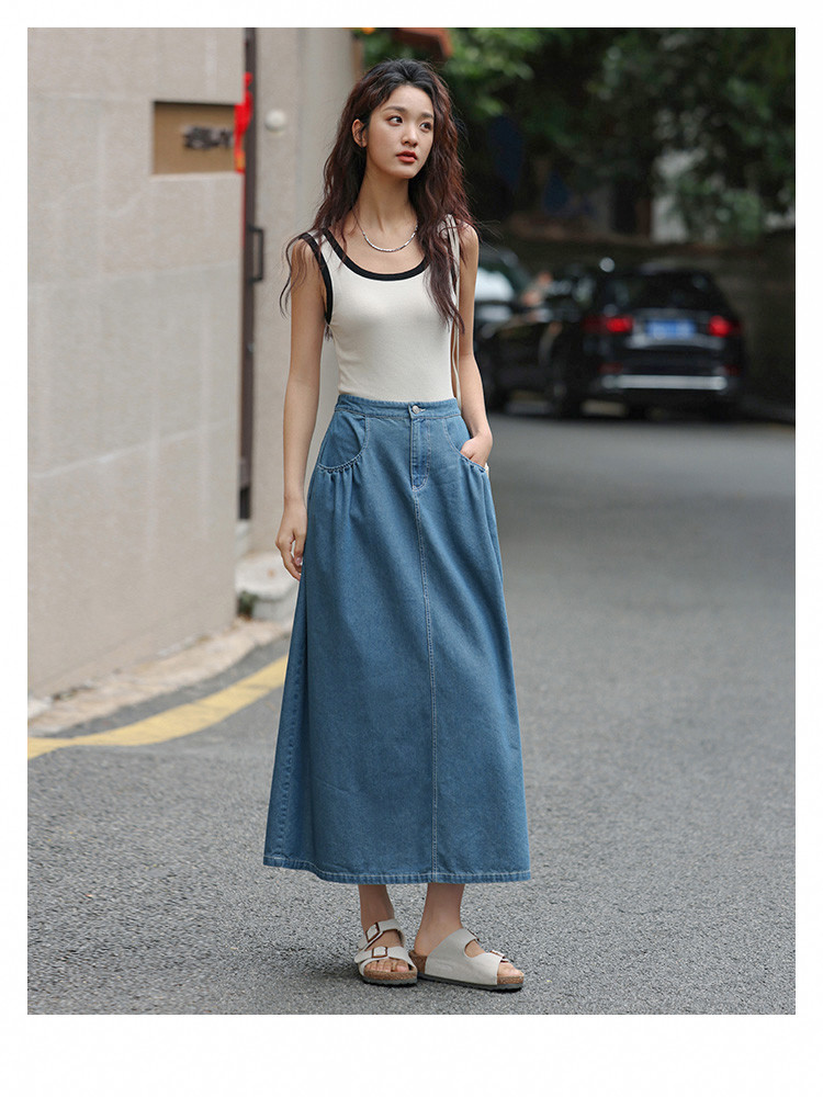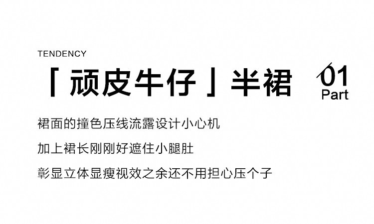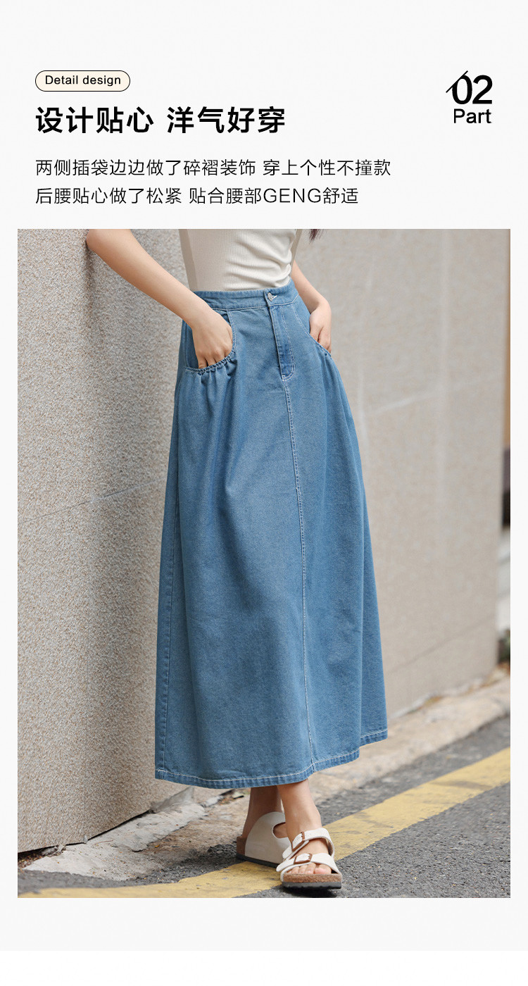 商品名称:【顽皮牛仔半裙】夏款时髦日常显瘦遮肉牛仔半身裙 307266