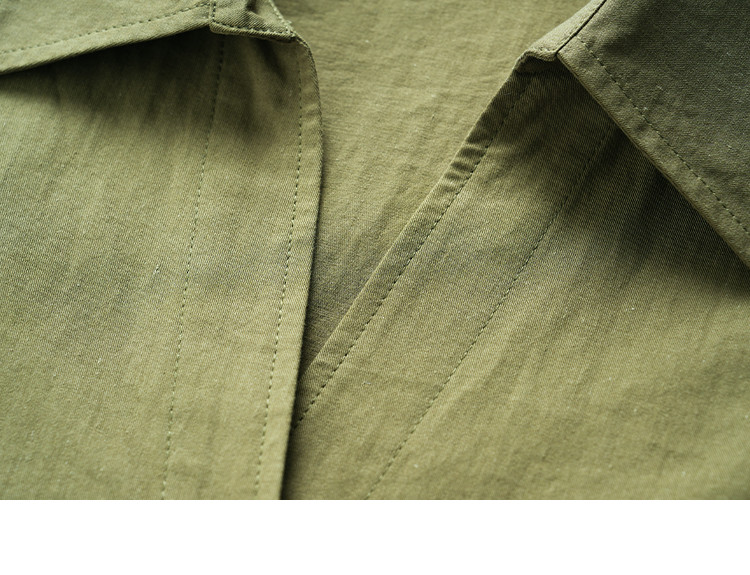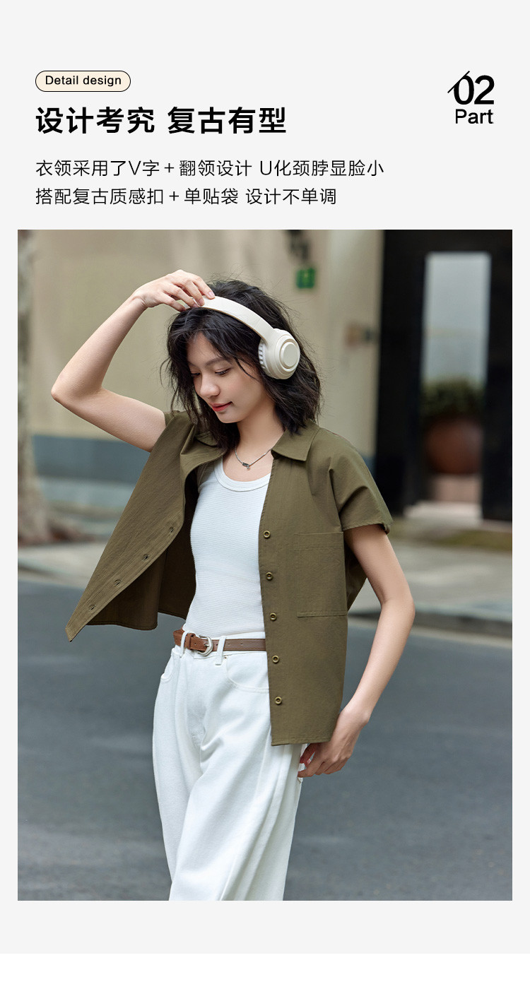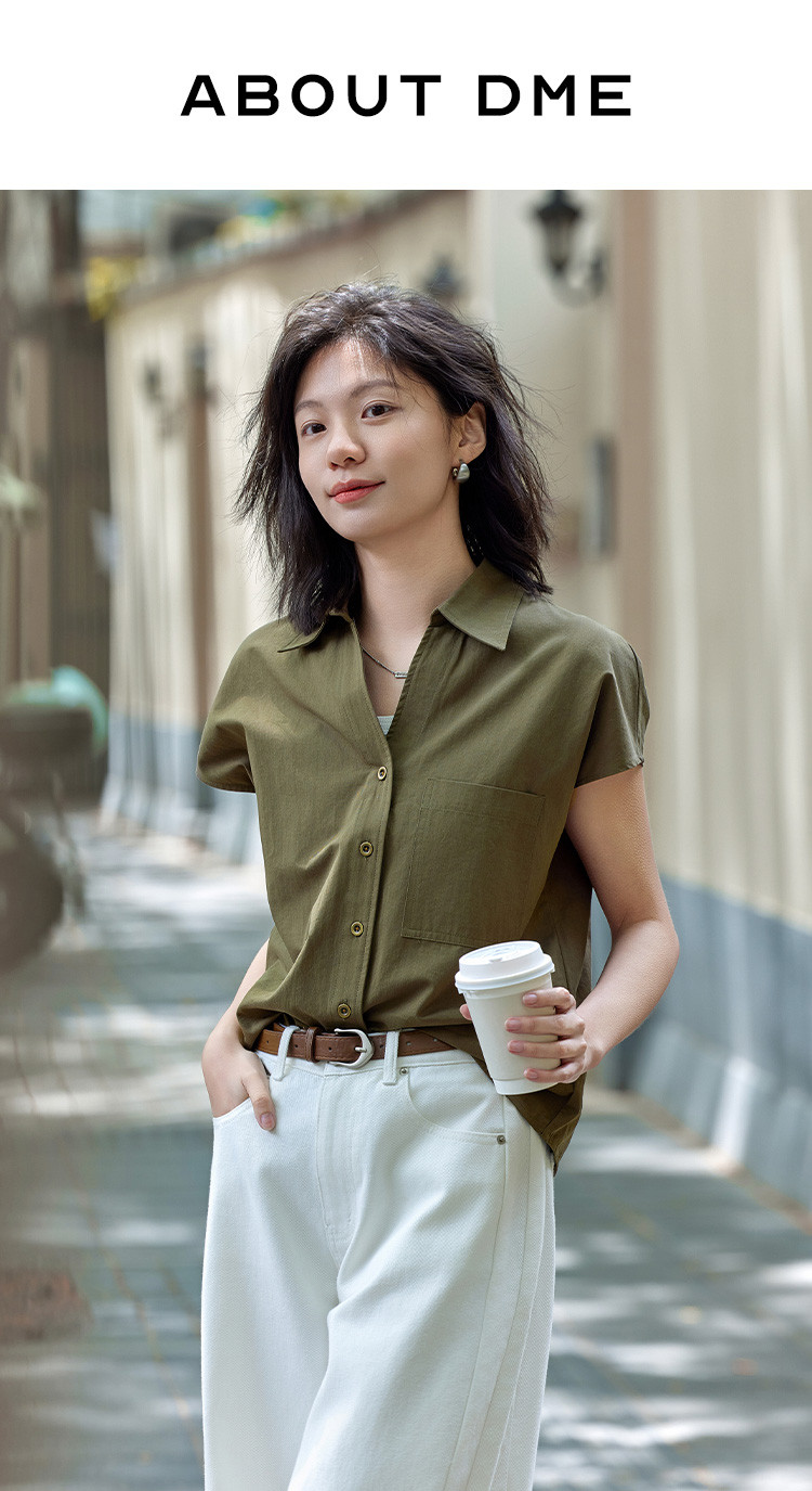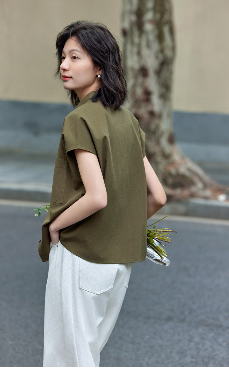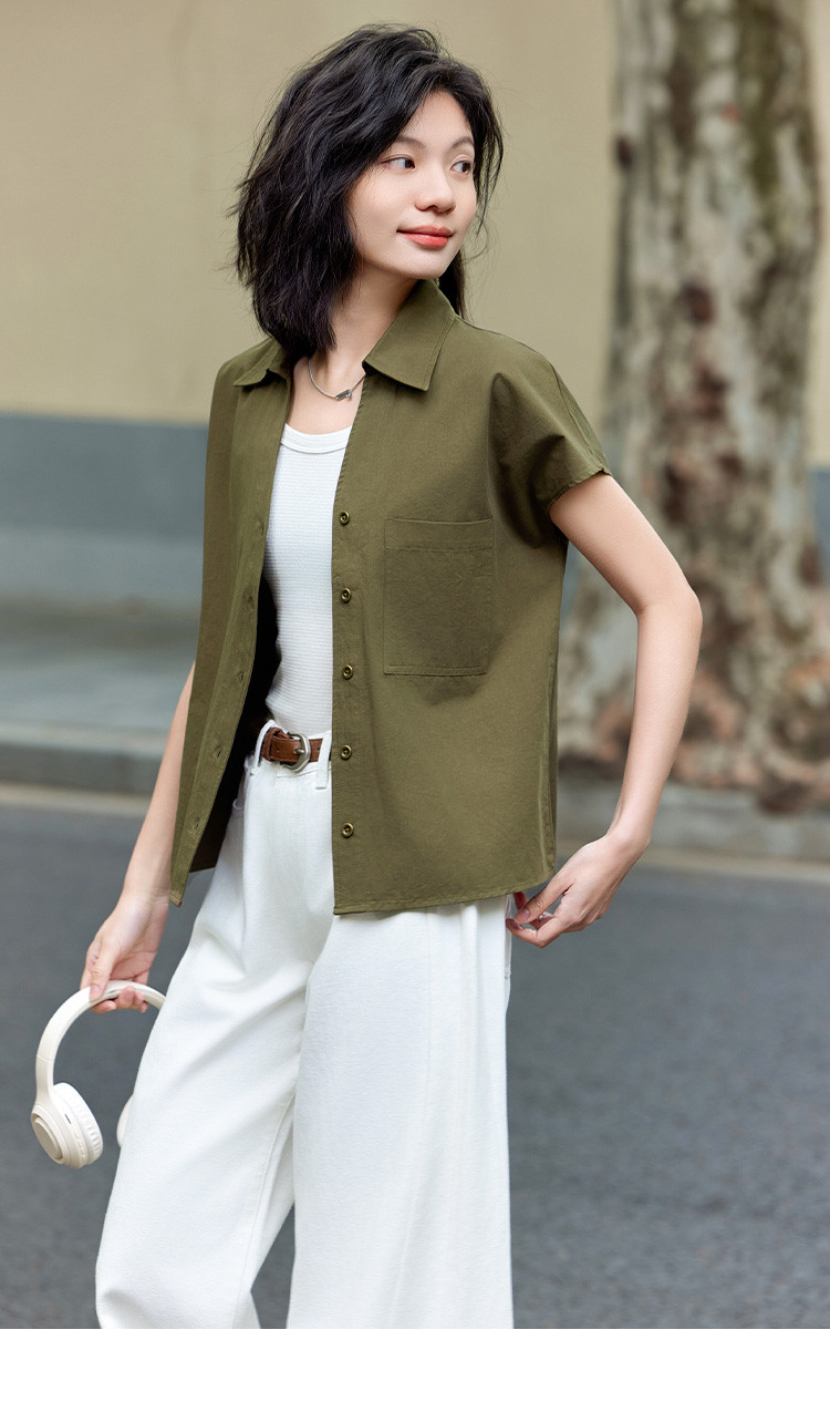 【显白军绿色衬衫】夏款户外休闲风单贴袋翻领宽松衬衫女 815810