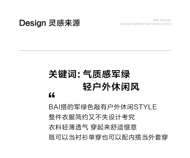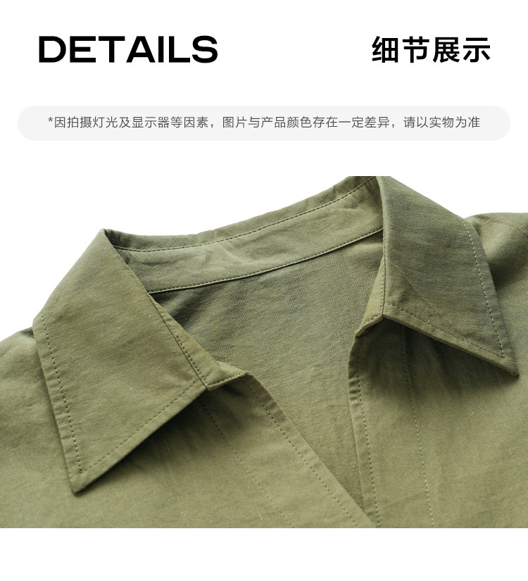 商品名称:【显白军绿色衬衫】夏款户外休闲风单贴袋翻领宽松衬衫女 815810