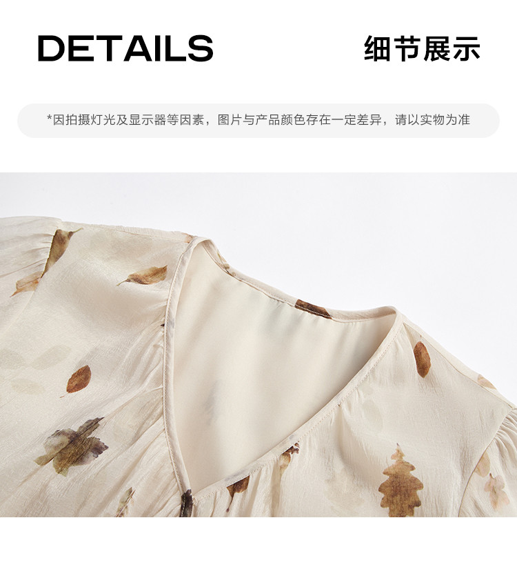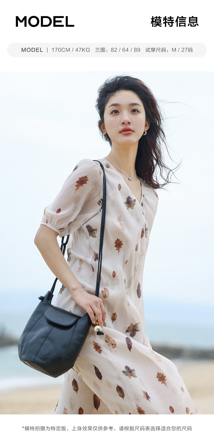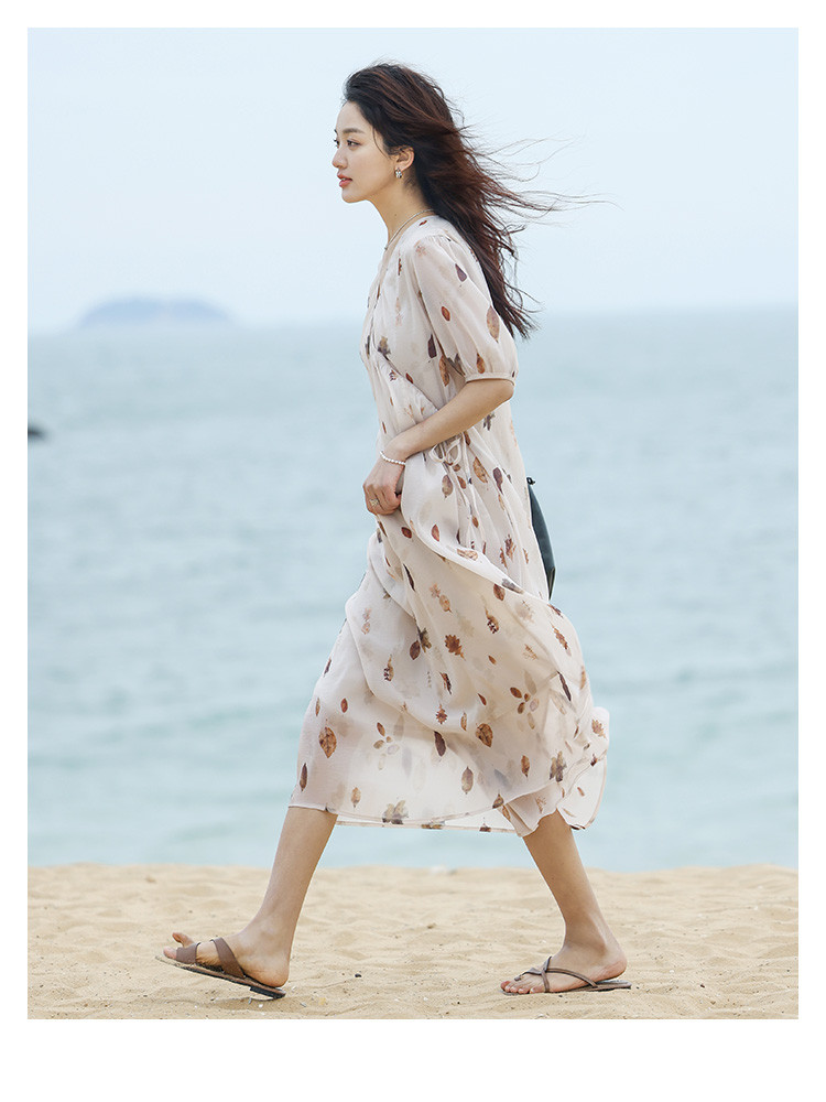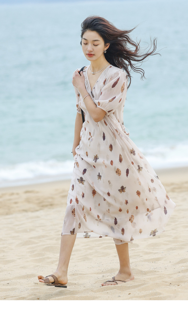 商品名称:【新中式连衣裙】夏款交叉V领树叶印花个性小众舒适长裙 303170