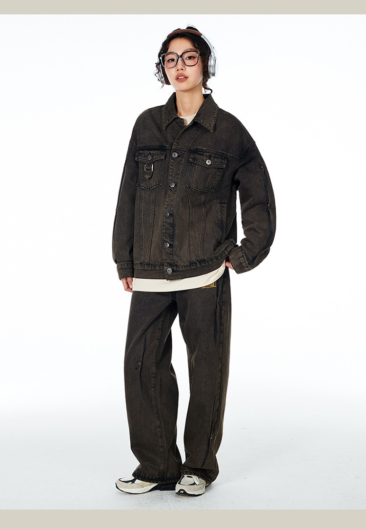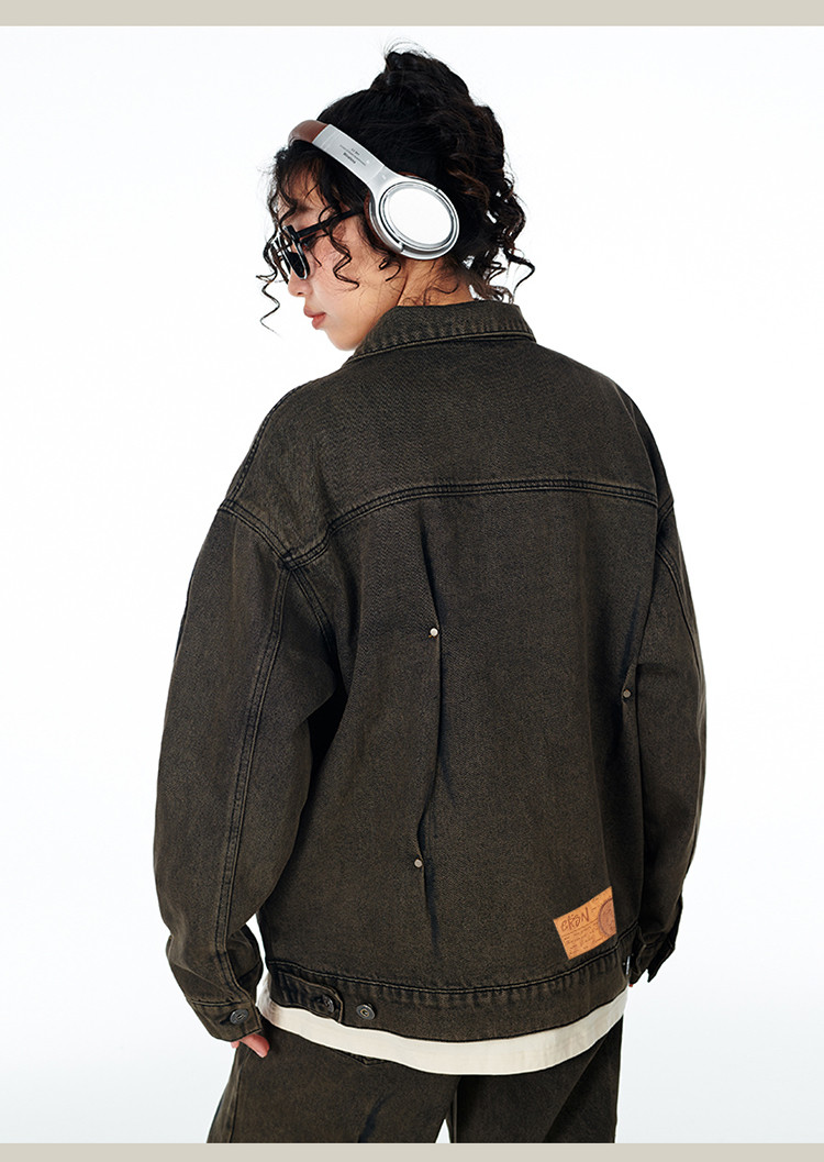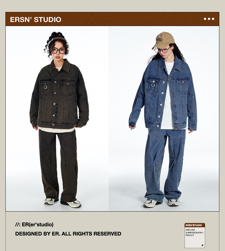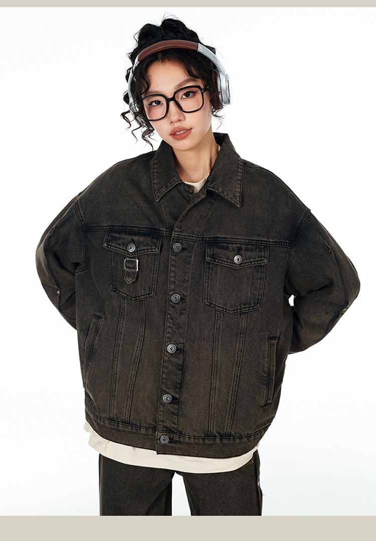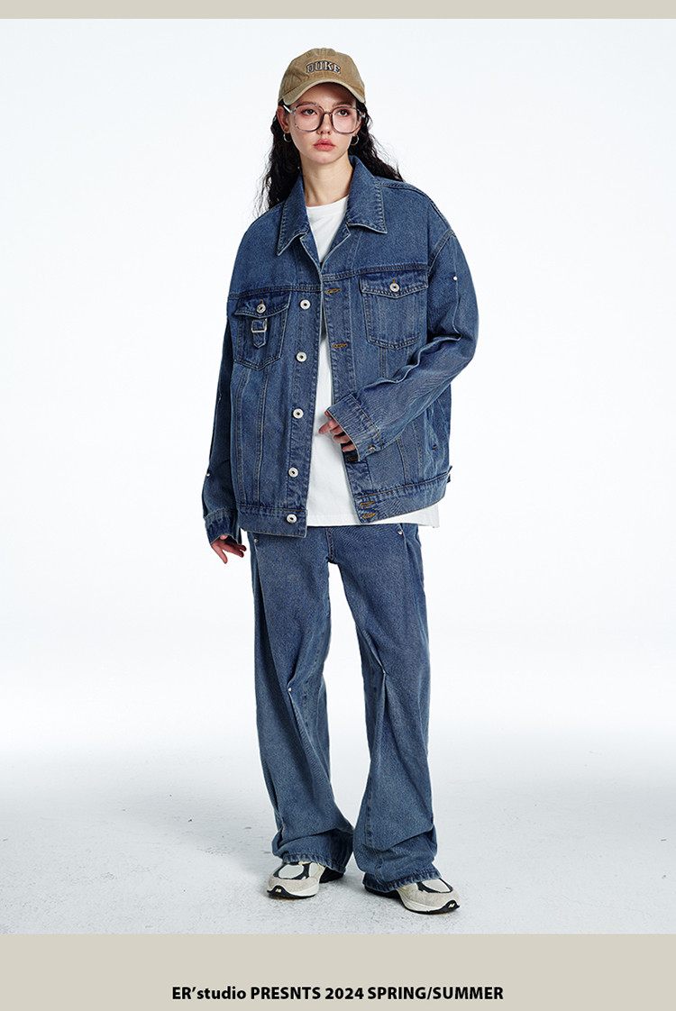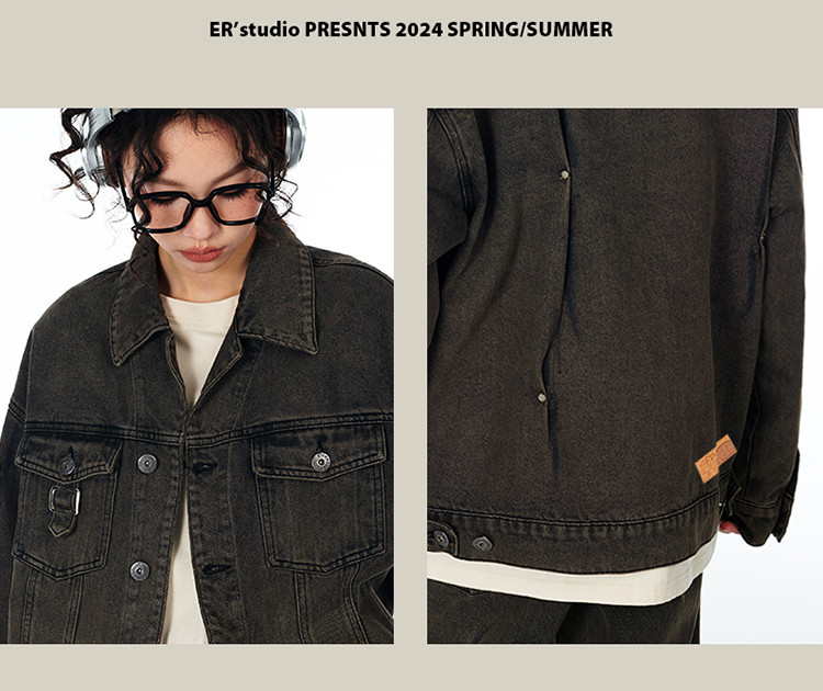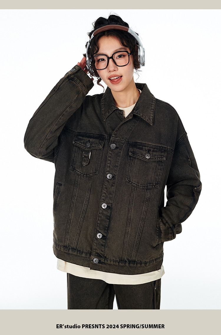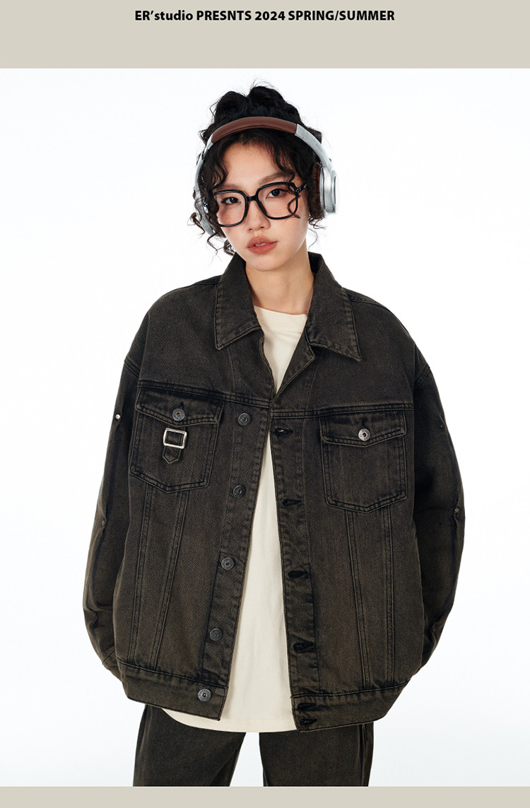 暗扣牛仔夹克2024春季新款高街痞帅潮牌水洗小众情侣宽松外套 504023