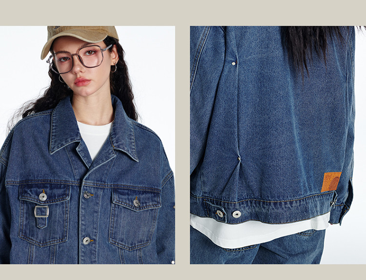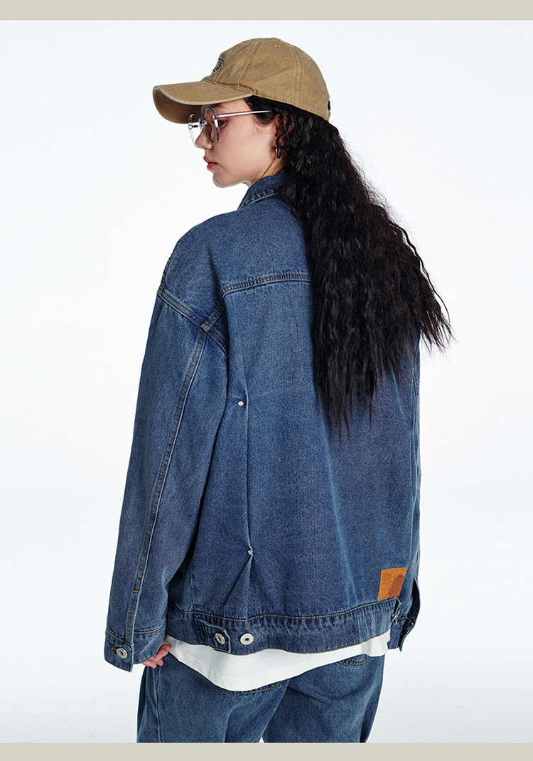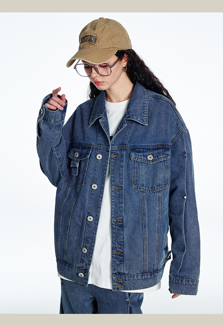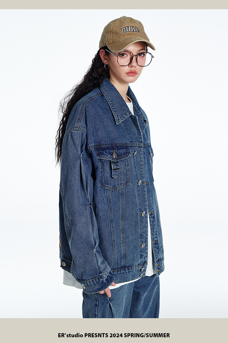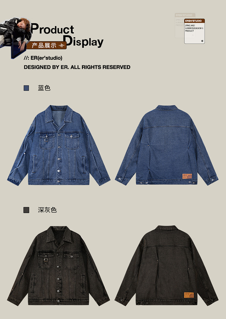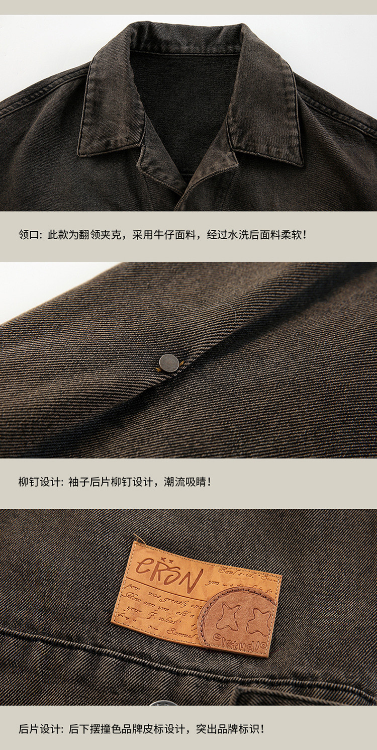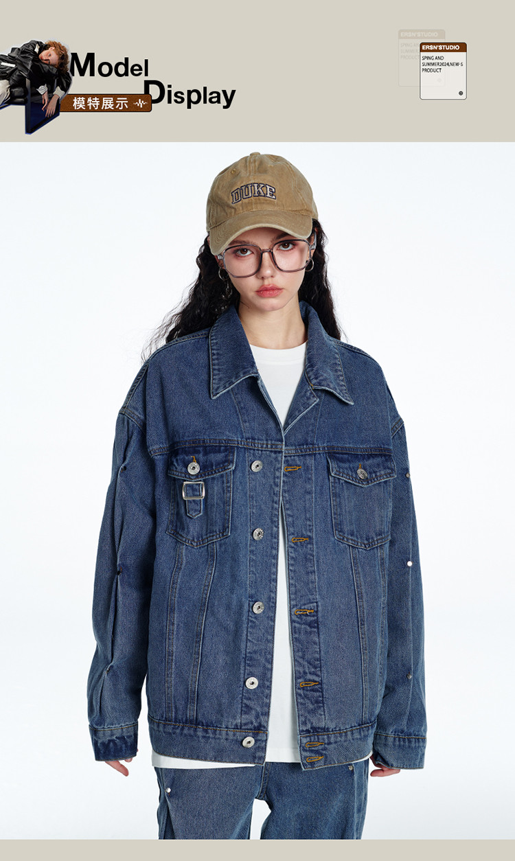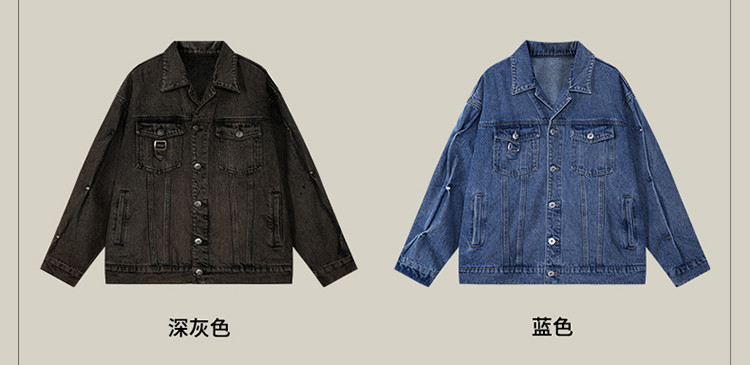 商品名称:暗扣牛仔夹克2024春季新款高街痞帅潮牌水洗小众情侣宽松外套 504023