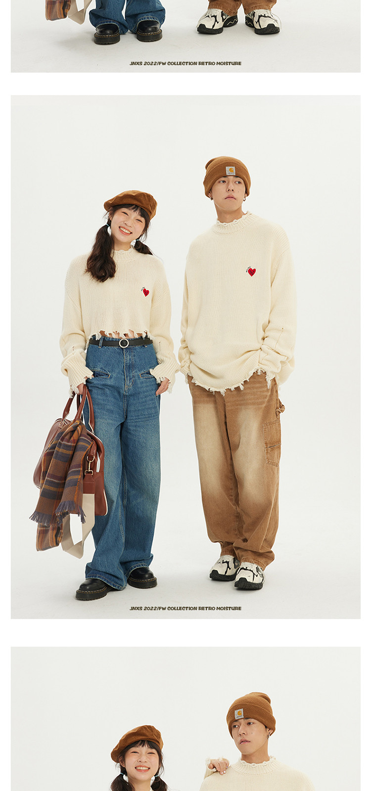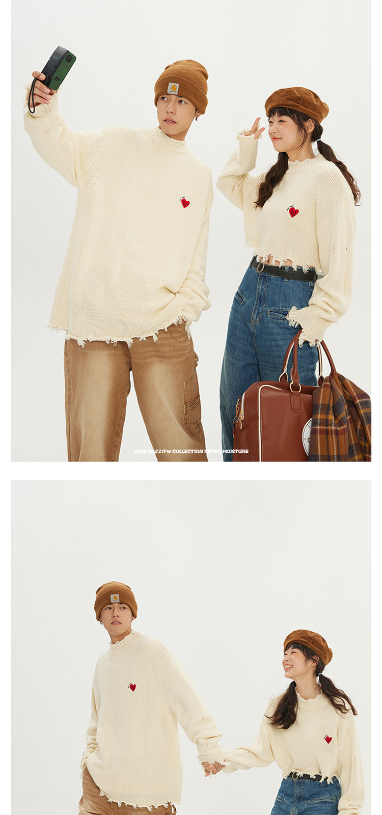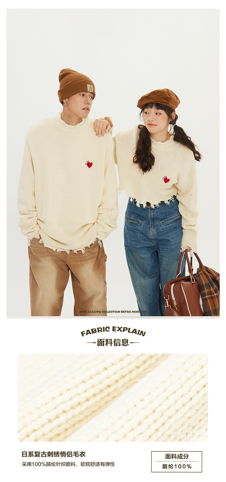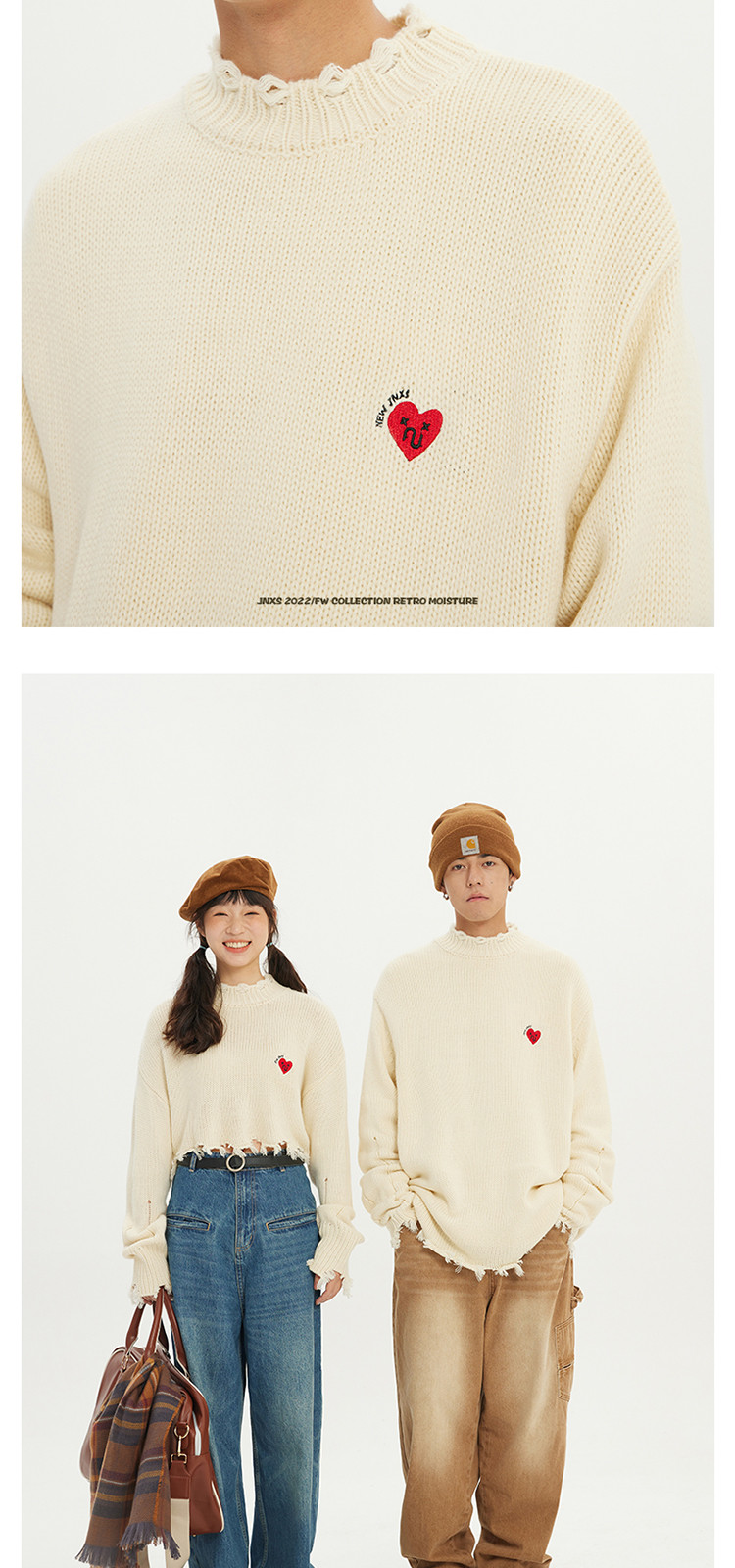 商品名称:JNXS/江南先生日系爱心刺绣情侣毛衣男女秋季潮牌宽松针织衫 205969