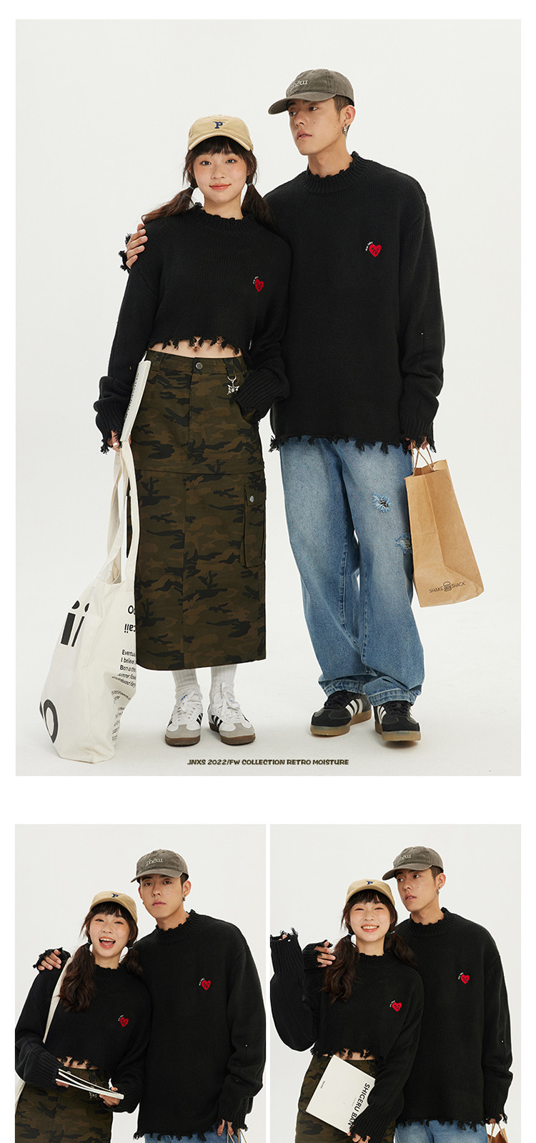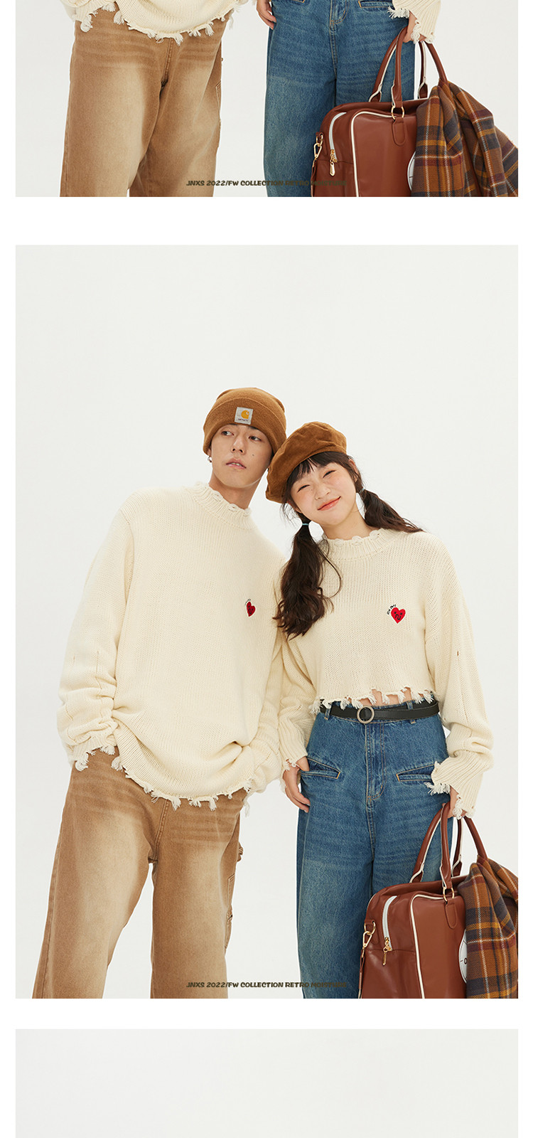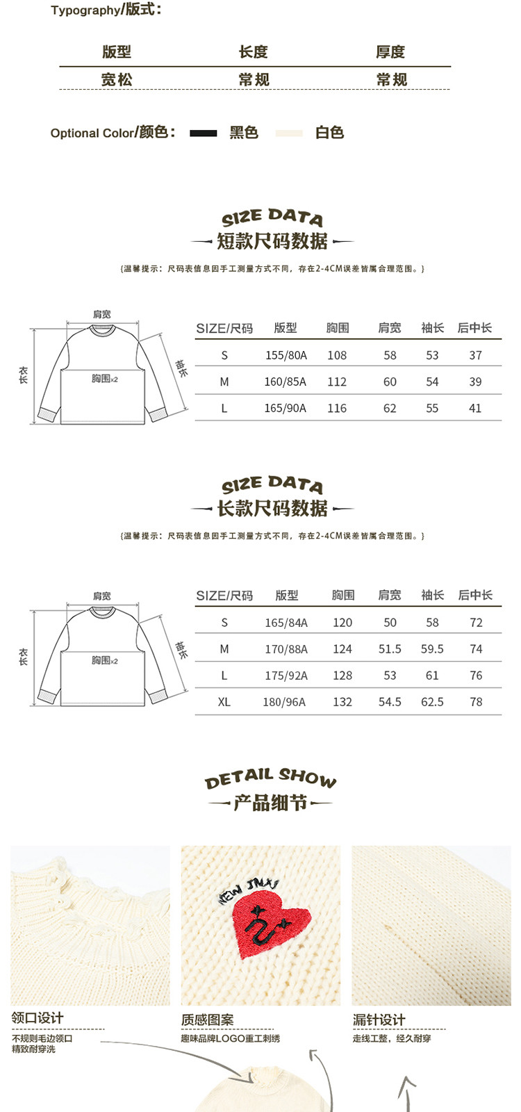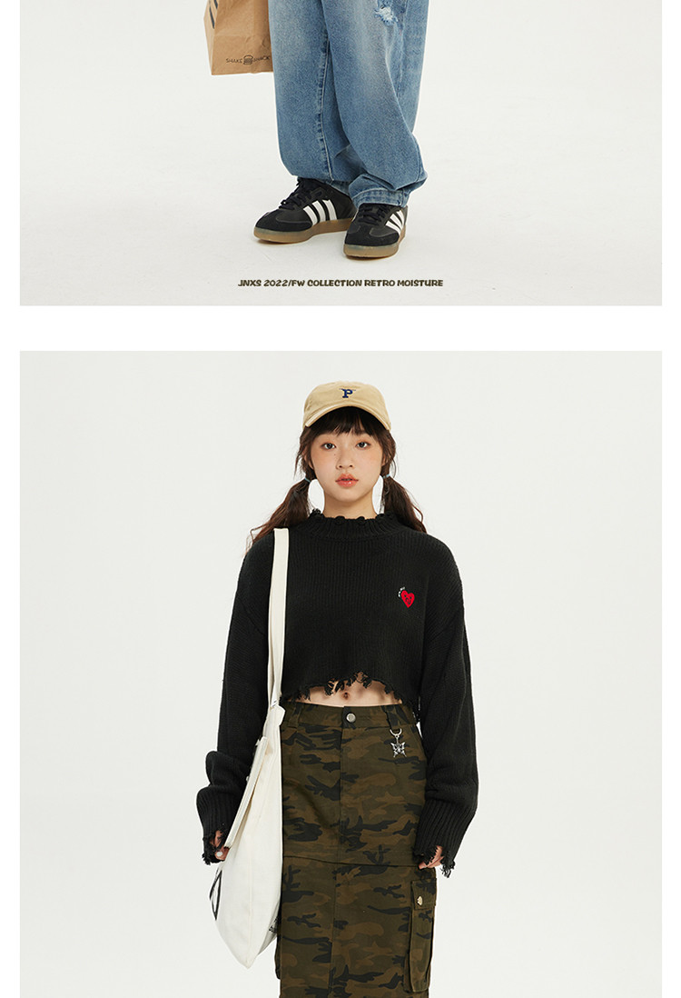 商品名称:JNXS/江南先生日系爱心刺绣情侣毛衣男女秋季潮牌宽松针织衫 205969