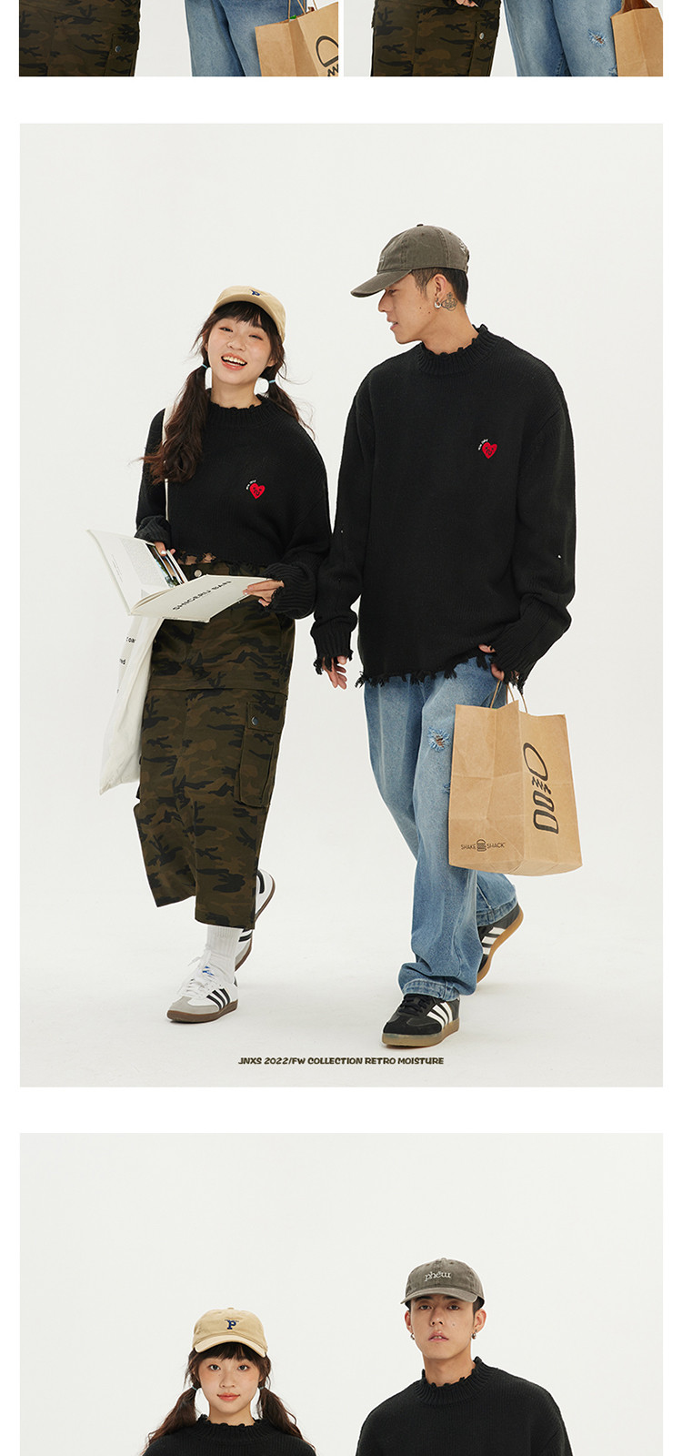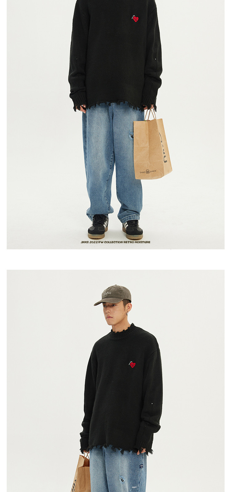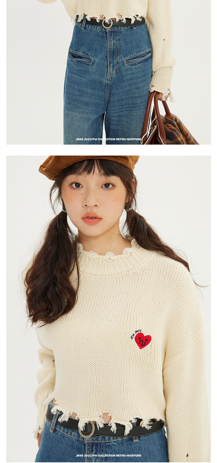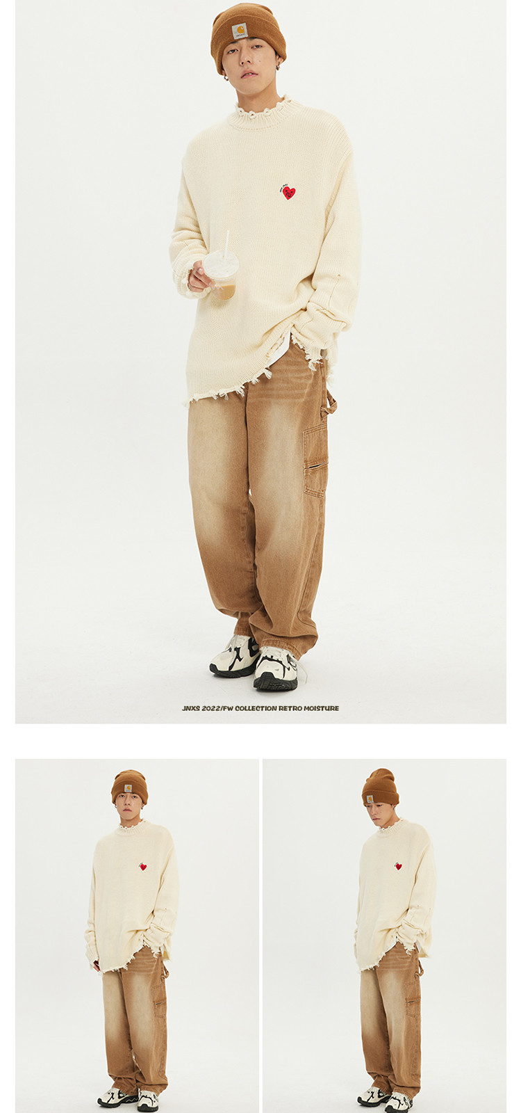 商品名称:JNXS/江南先生日系爱心刺绣情侣毛衣男女秋季潮牌宽松针织衫 205969