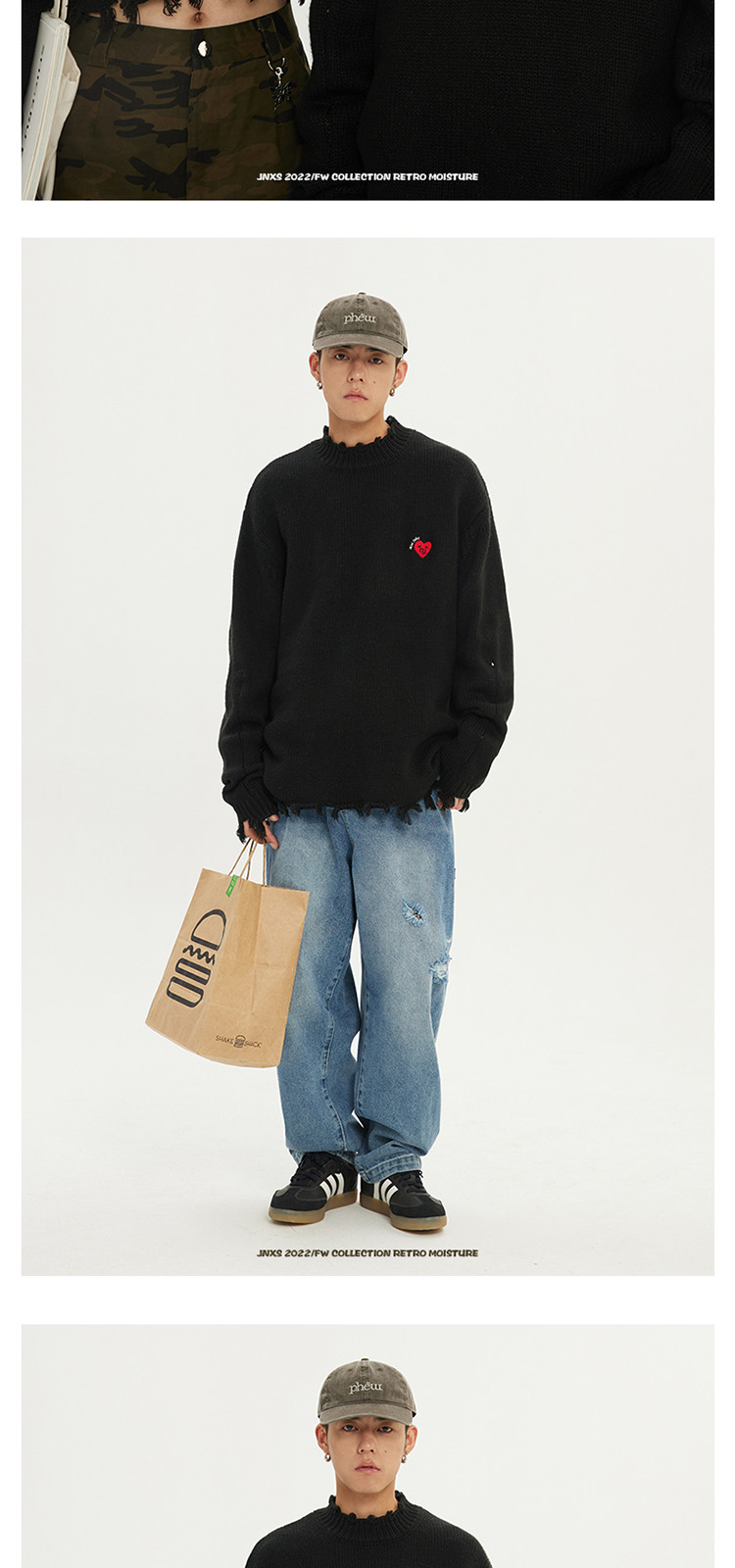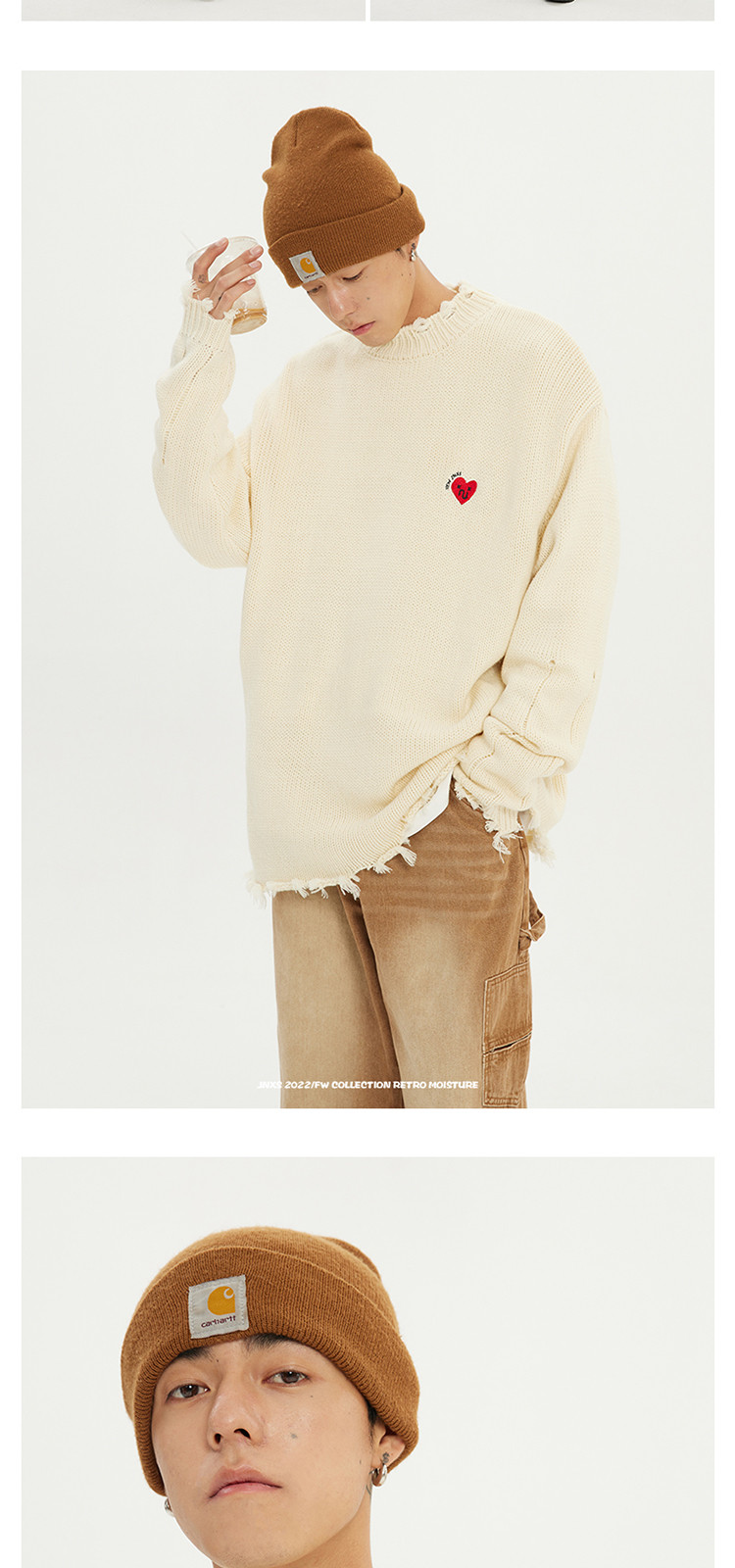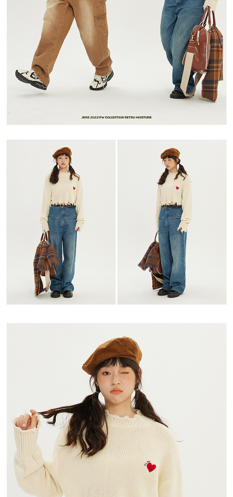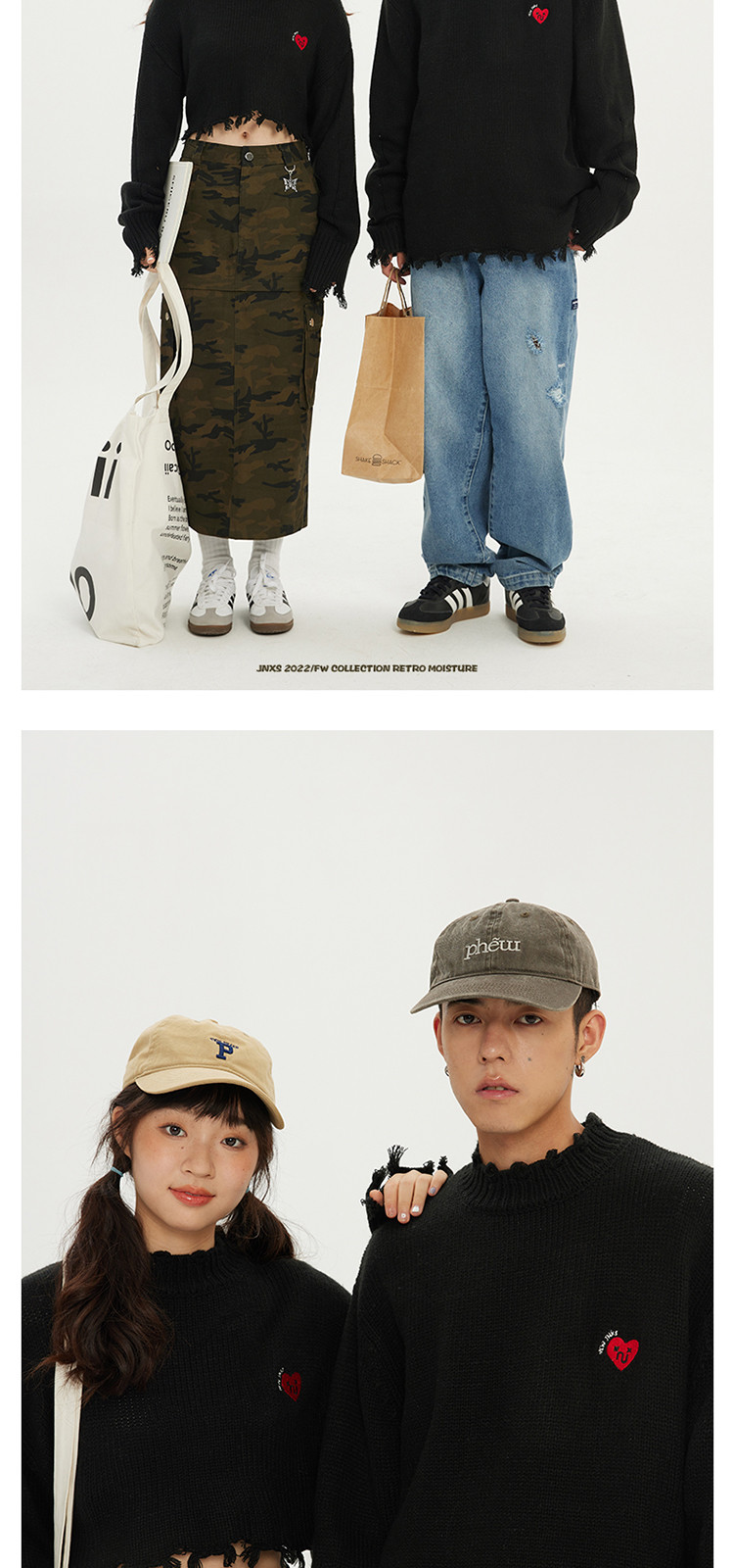 商品名称:JNXS/江南先生日系爱心刺绣情侣毛衣男女秋季潮牌宽松针织衫 205969