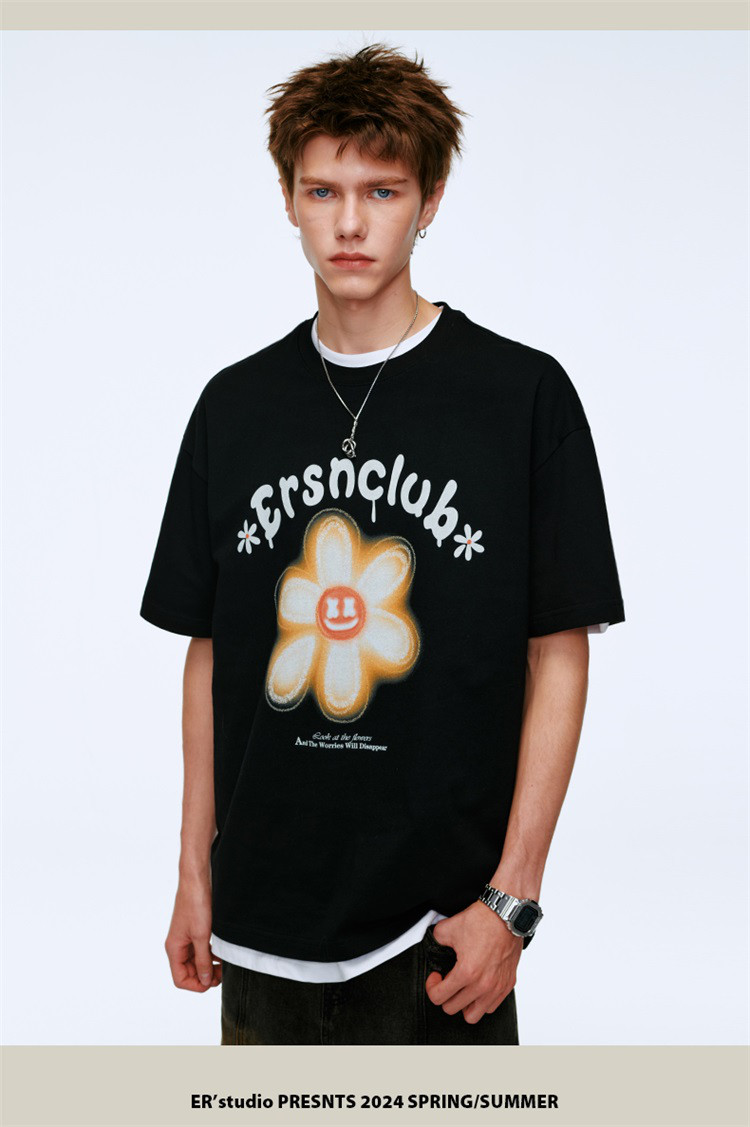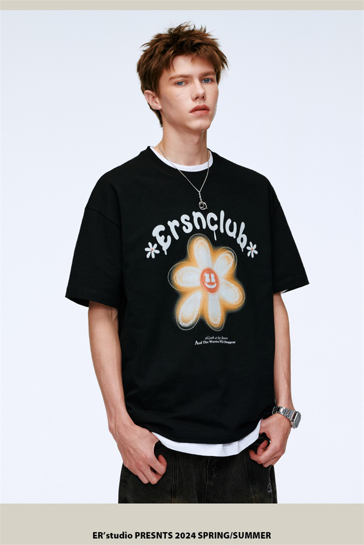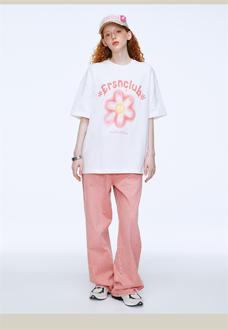 【100%棉】樱花重影涂鸦印花短袖T恤潮牌宽松情侣款 278423