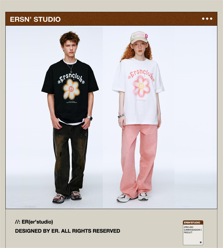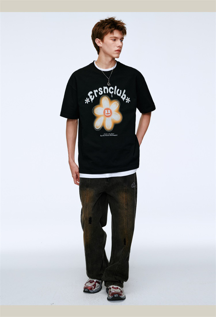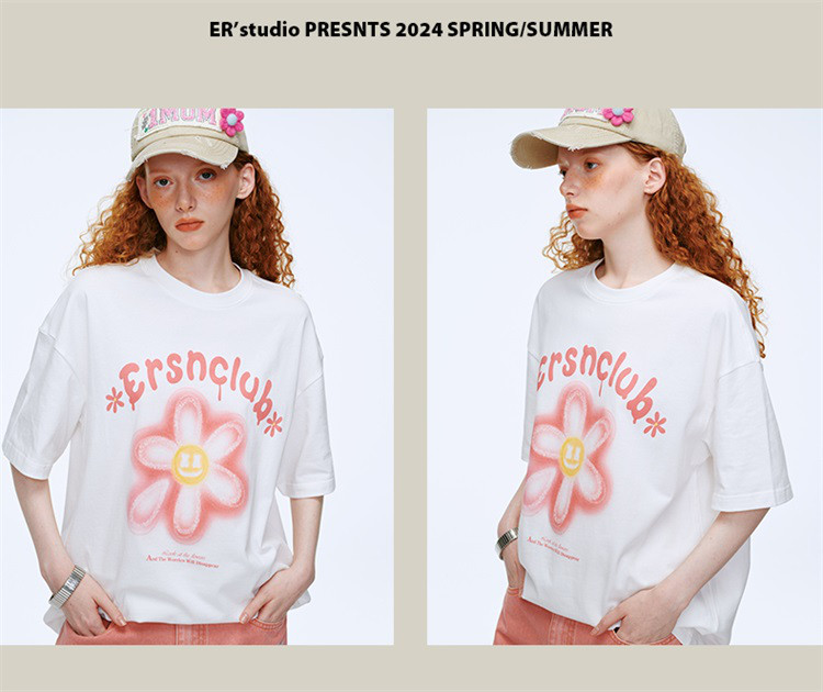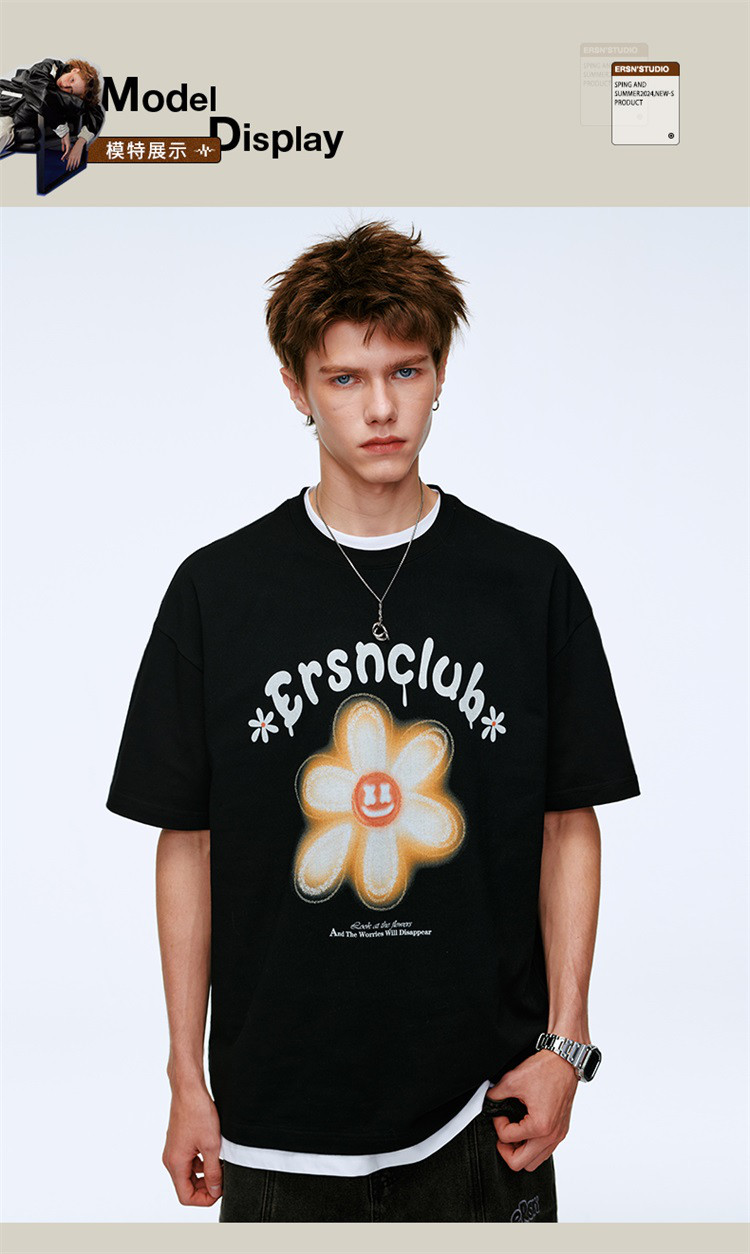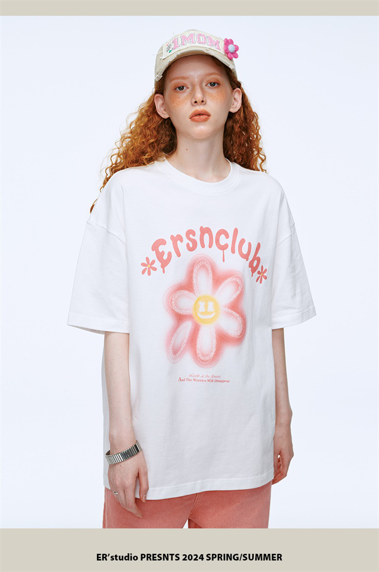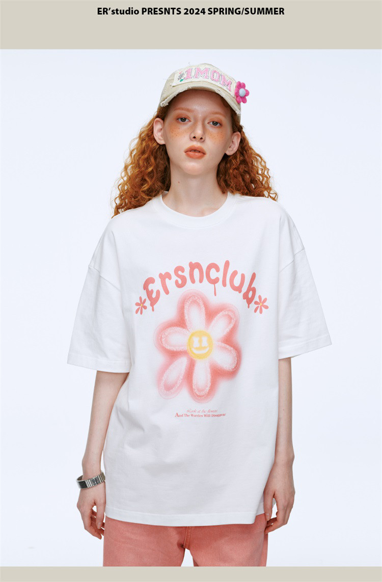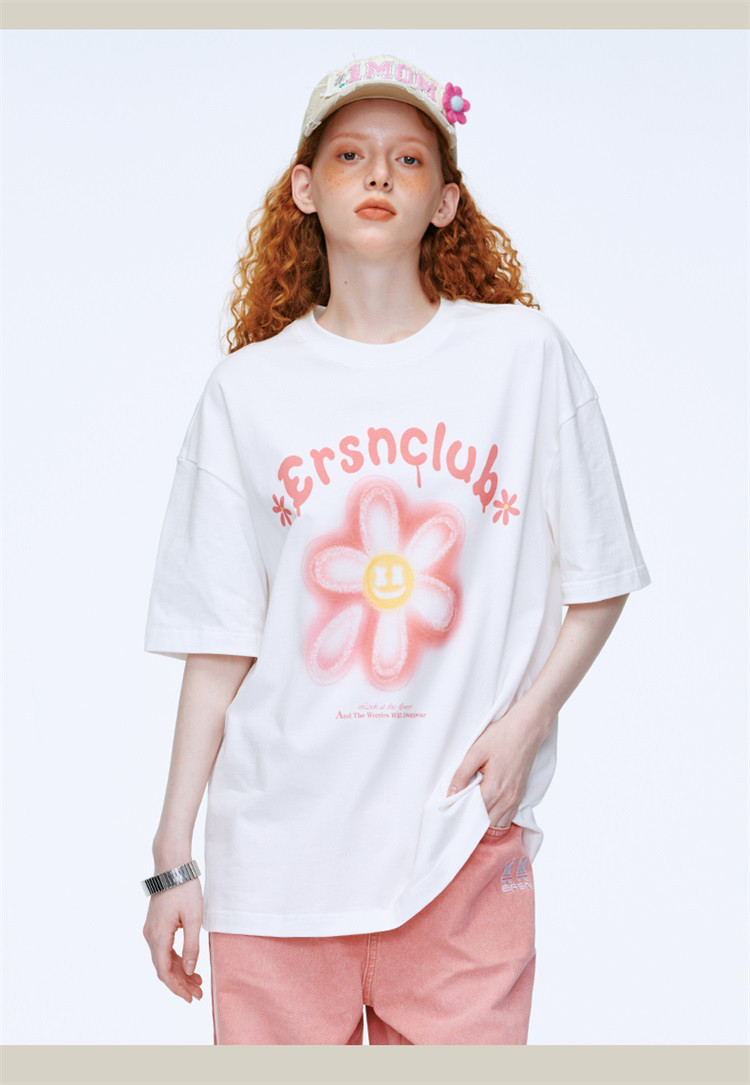 商品名称:【100%棉】樱花重影涂鸦印花短袖T恤潮牌宽松情侣款 278423