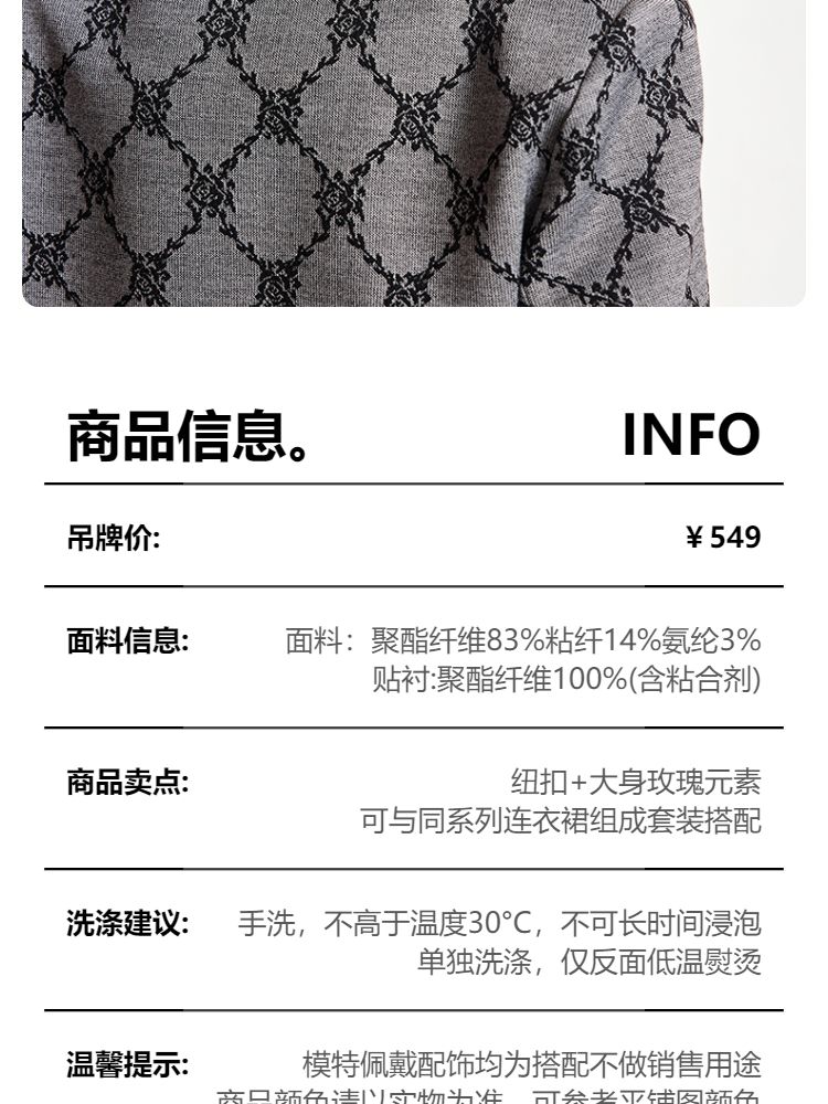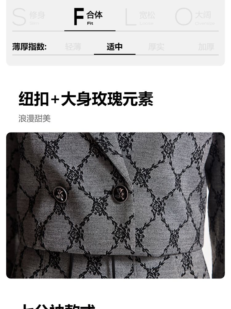 商品名称:【玫瑰元素】西装浪漫摇滚风七分袖薄垫肩短上衣西服 527505
