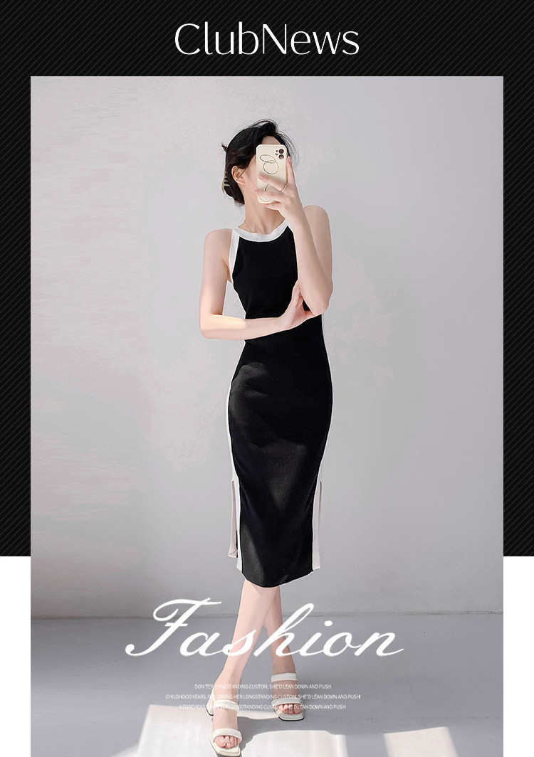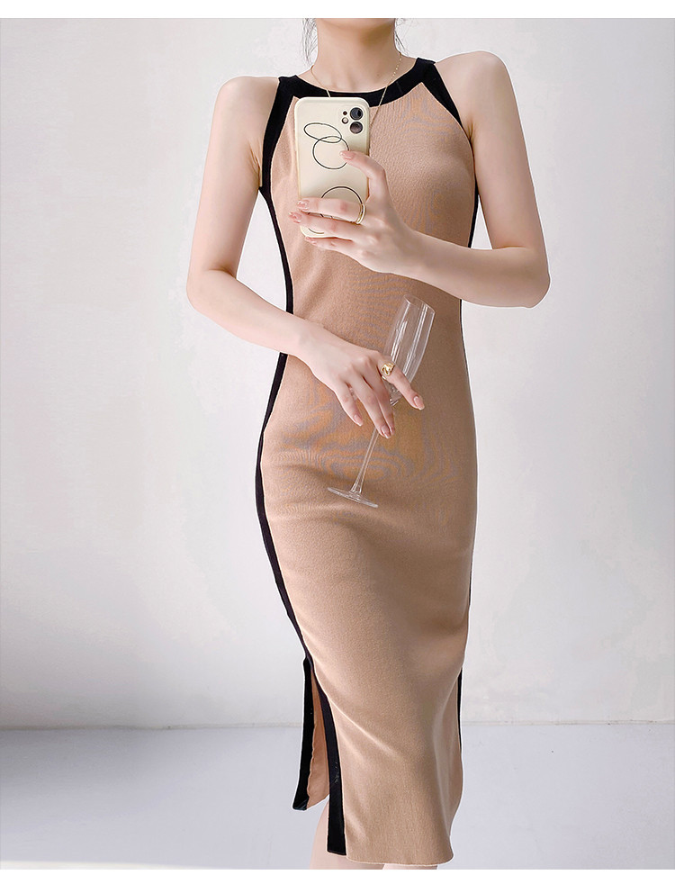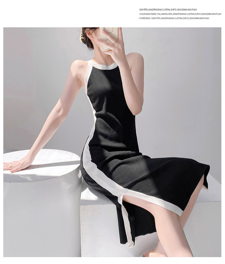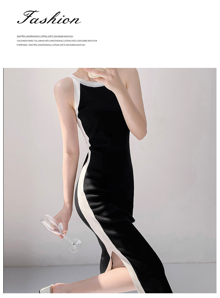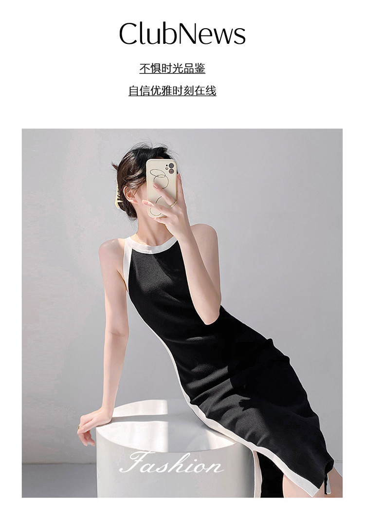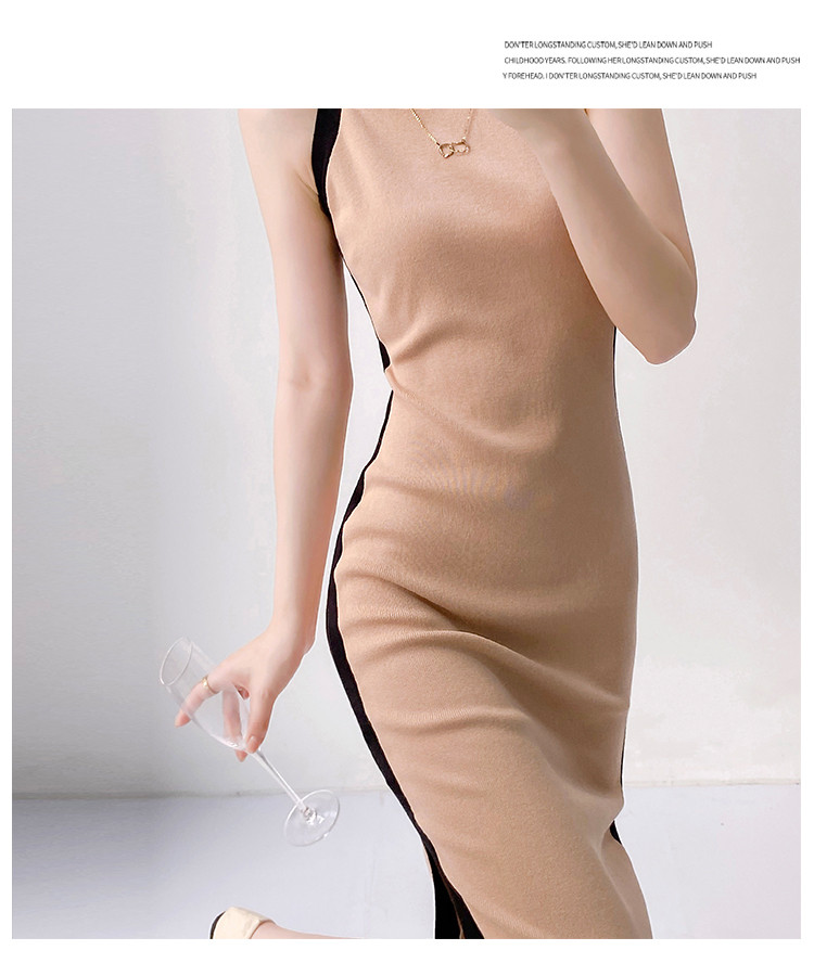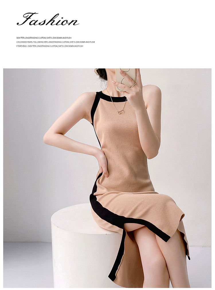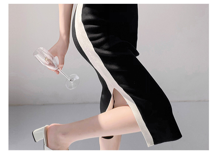 商品名称:法式设计感撞色直筒裙女优雅气质针织裙子 830403