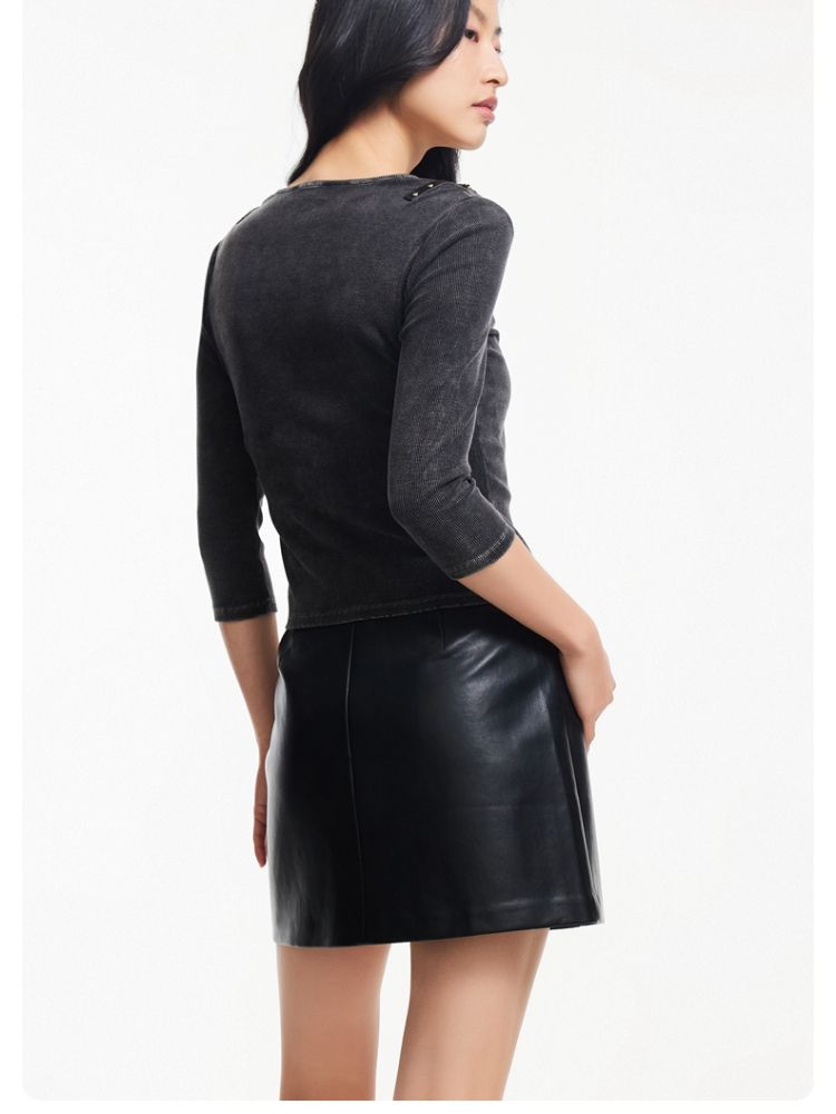 【女装正肩】女式短款小个子T恤紧身显瘦夏季小众抽褶设计感短袖 792851