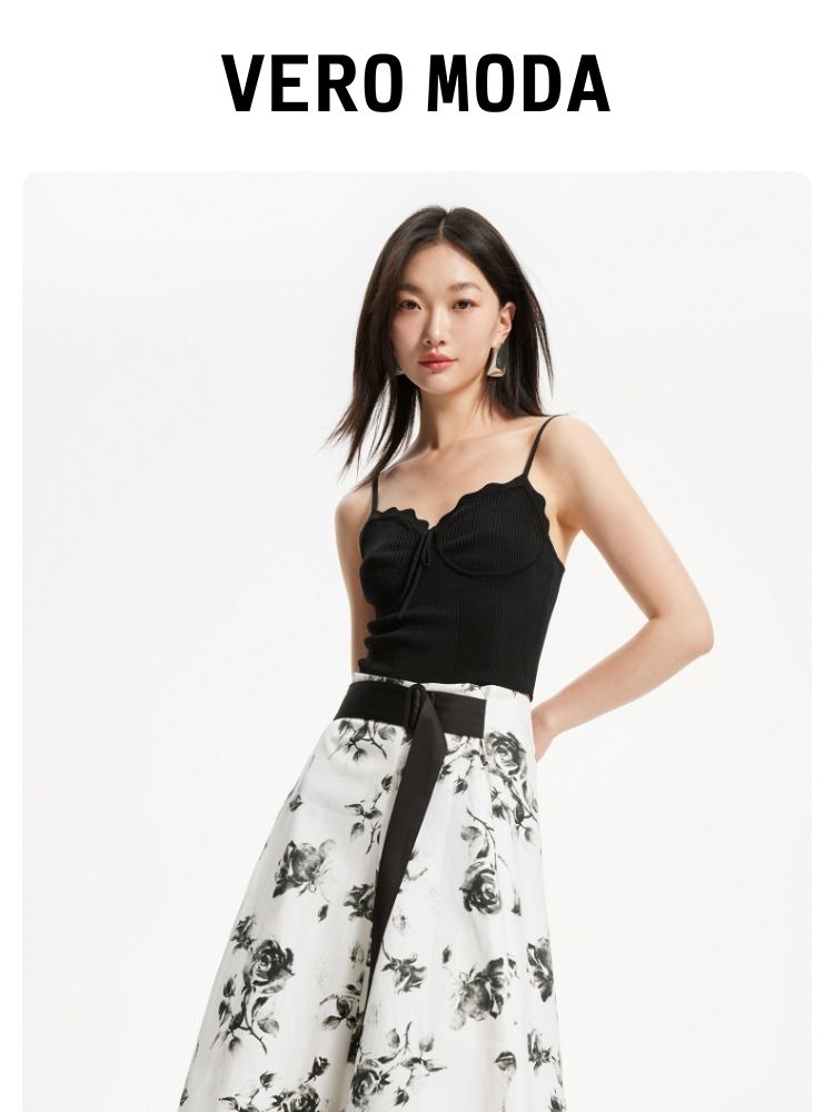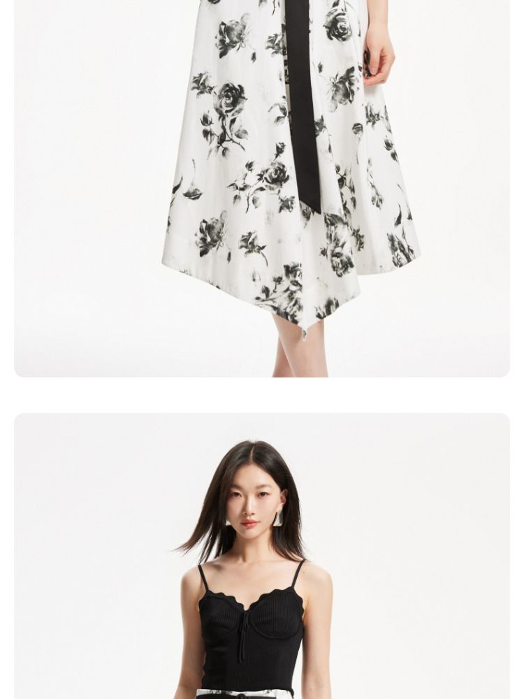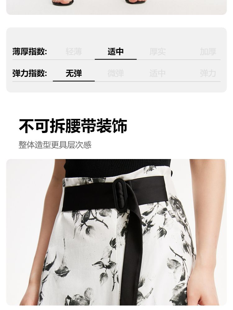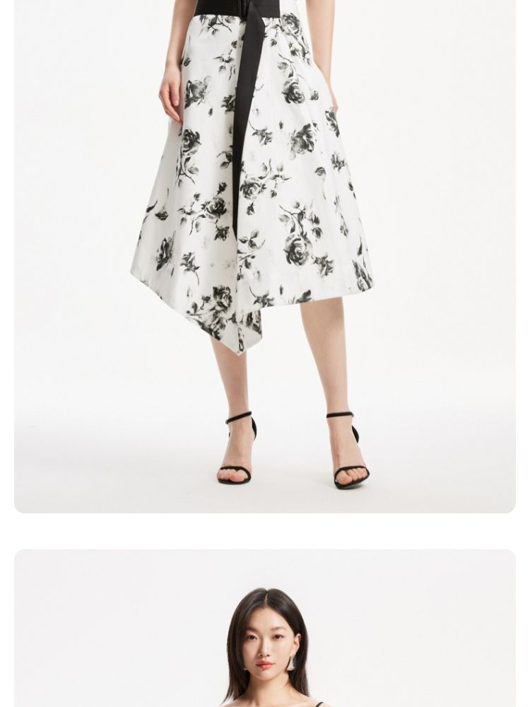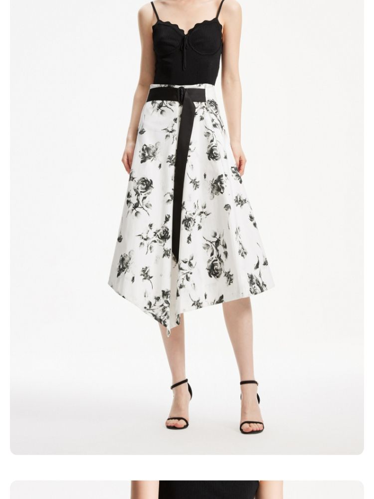 商品名称:【高腰A摆设计】夏半身裙女玫瑰印花收腰A摆钻石领中长裙 007441