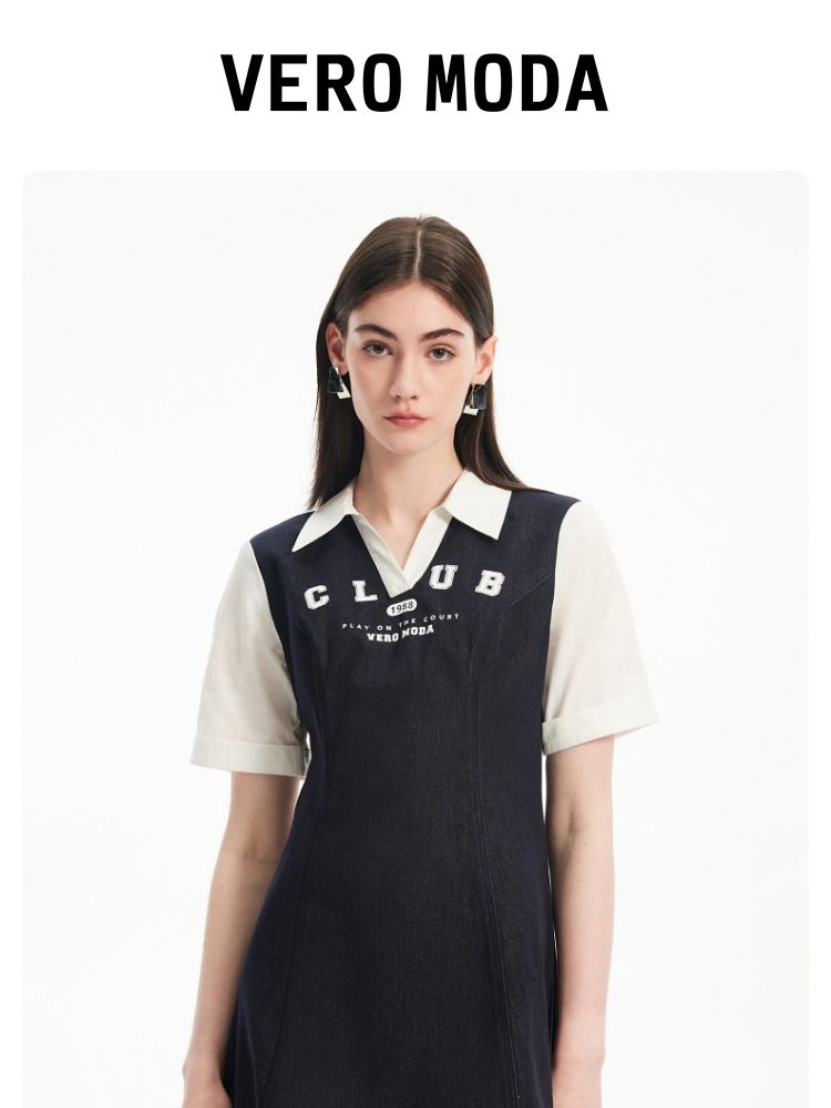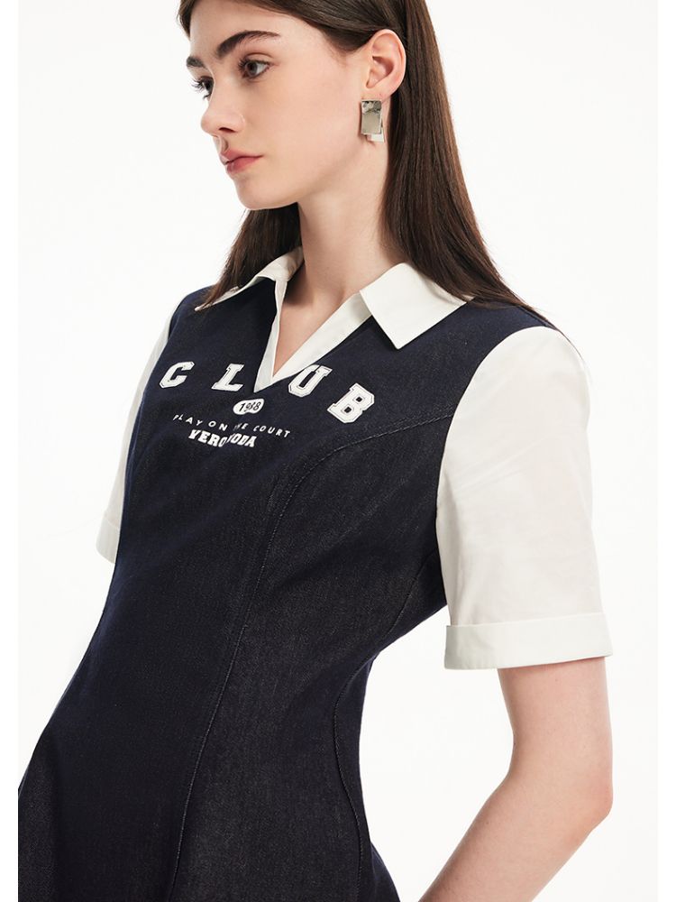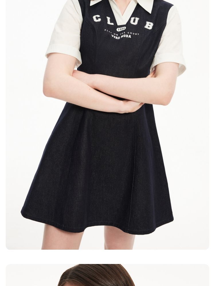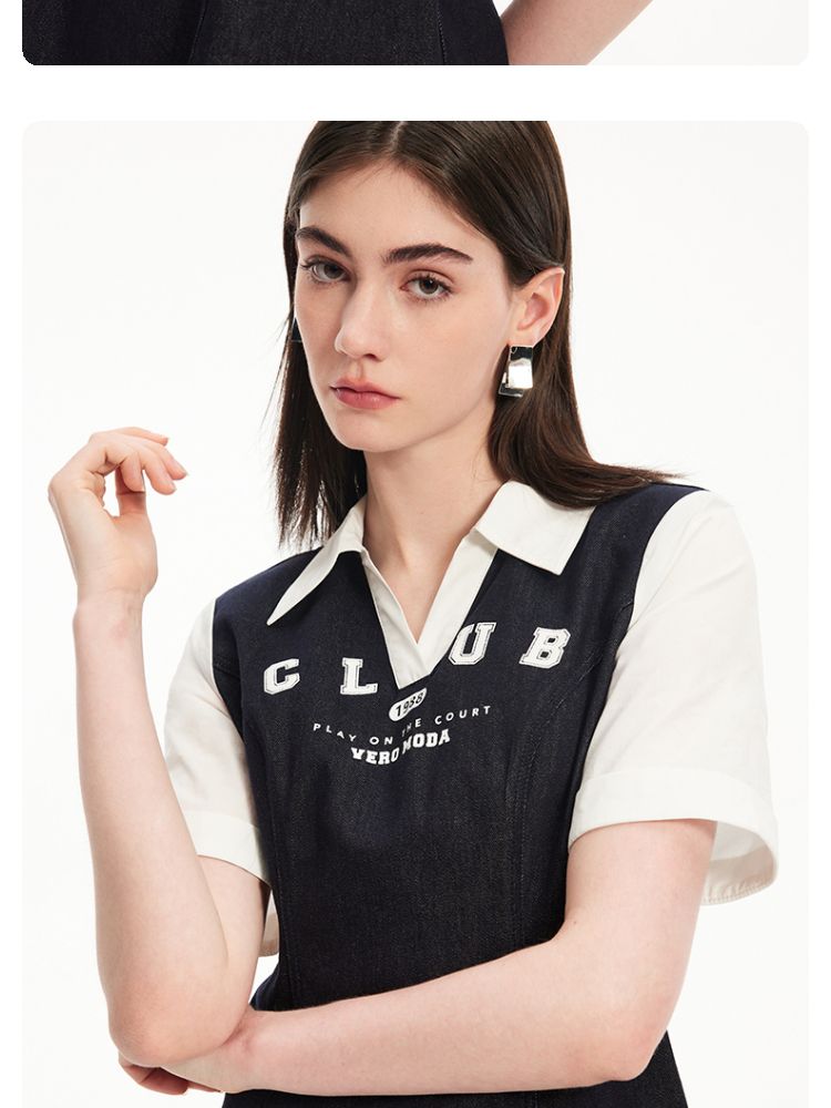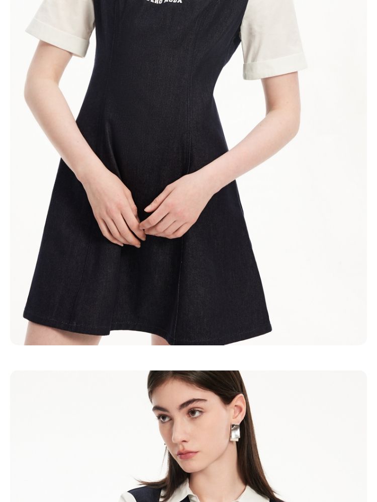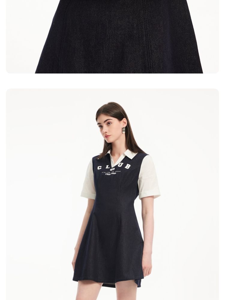 商品名称:连衣裙高街潮流运动拼接纯棉短袖牛仔短裙 955601