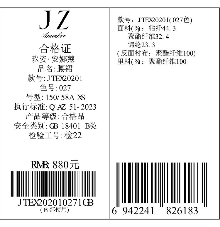 商品名称:旗下安娜蔻系列静奢小香风通勤肌理感小A裙短裙半身裙女夏季 155276