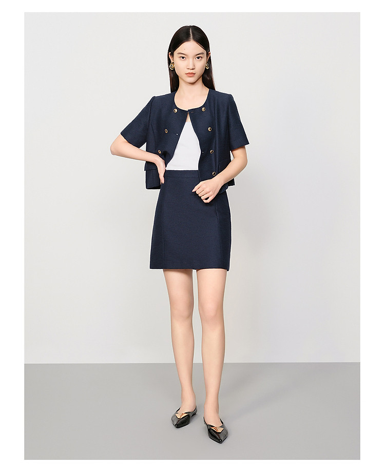 旗下安娜蔻系列静奢小香风通勤肌理感小A裙短裙半身裙女夏季 155276