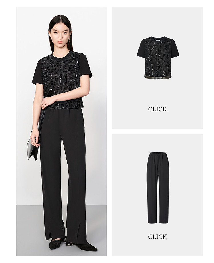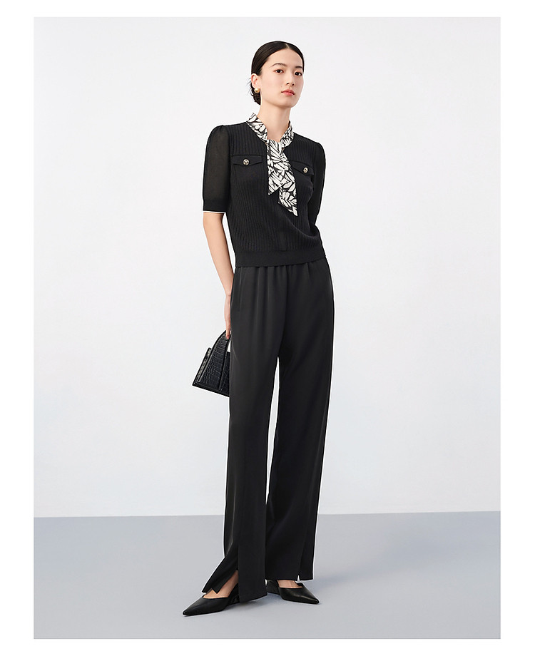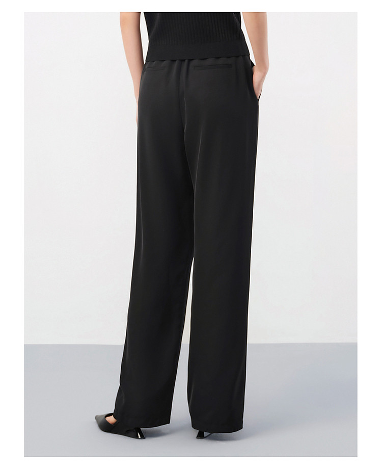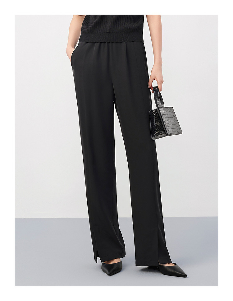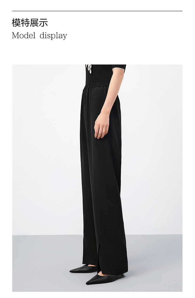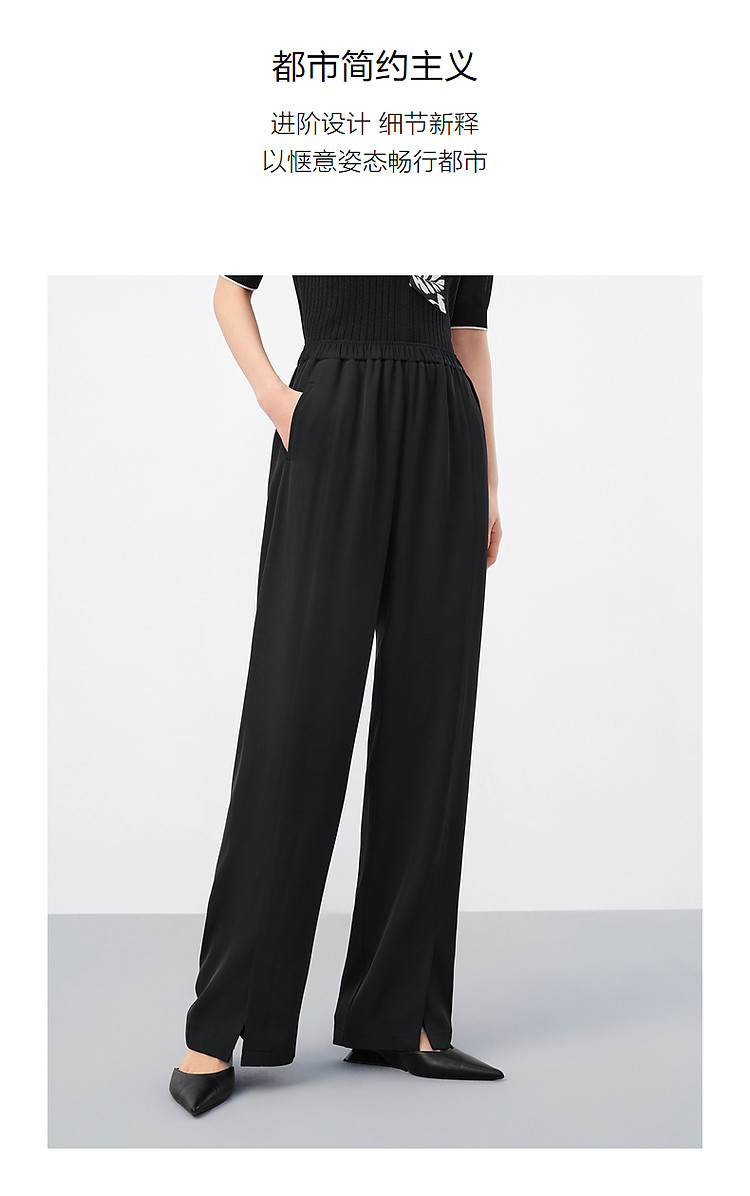 旗下安娜蔻系列商务通勤松紧腰垂感开叉阔腿裤休闲裤女夏季 836044