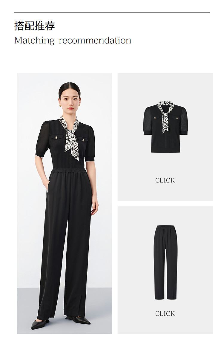 商品名称:旗下安娜蔻系列商务通勤松紧腰垂感开叉阔腿裤休闲裤女夏季 836044