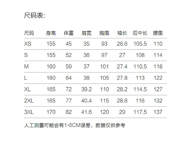 | 尺码 | 裙长(cm) | 肩宽(cm) | 腰围(cm) | 袖长(cm) | 胸围(cm) | 号型 |