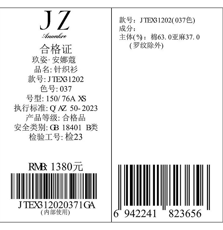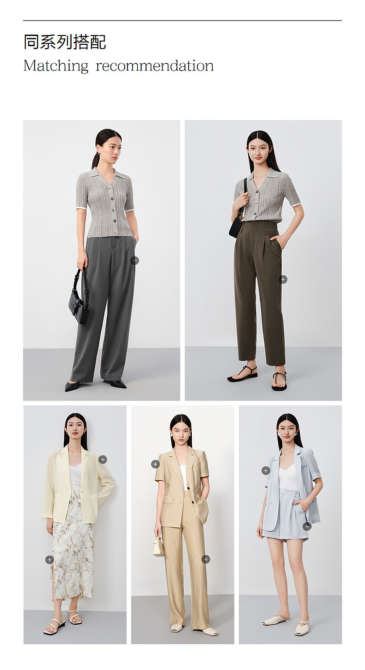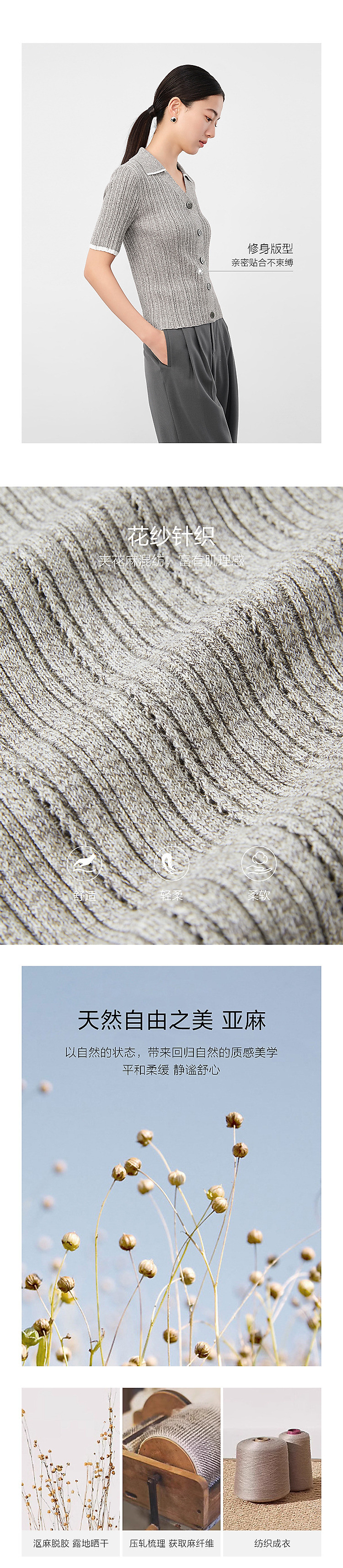 商品名称:旗下安娜蔻系列通勤风clean fit亚麻镂空翻领撞色针织衫夏季 977932