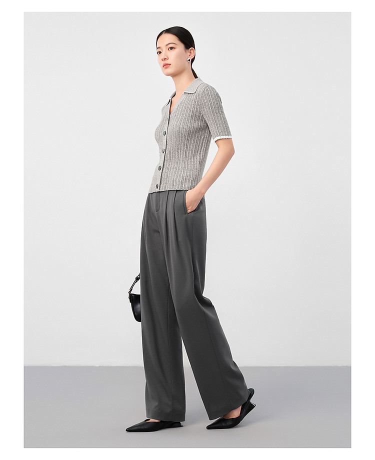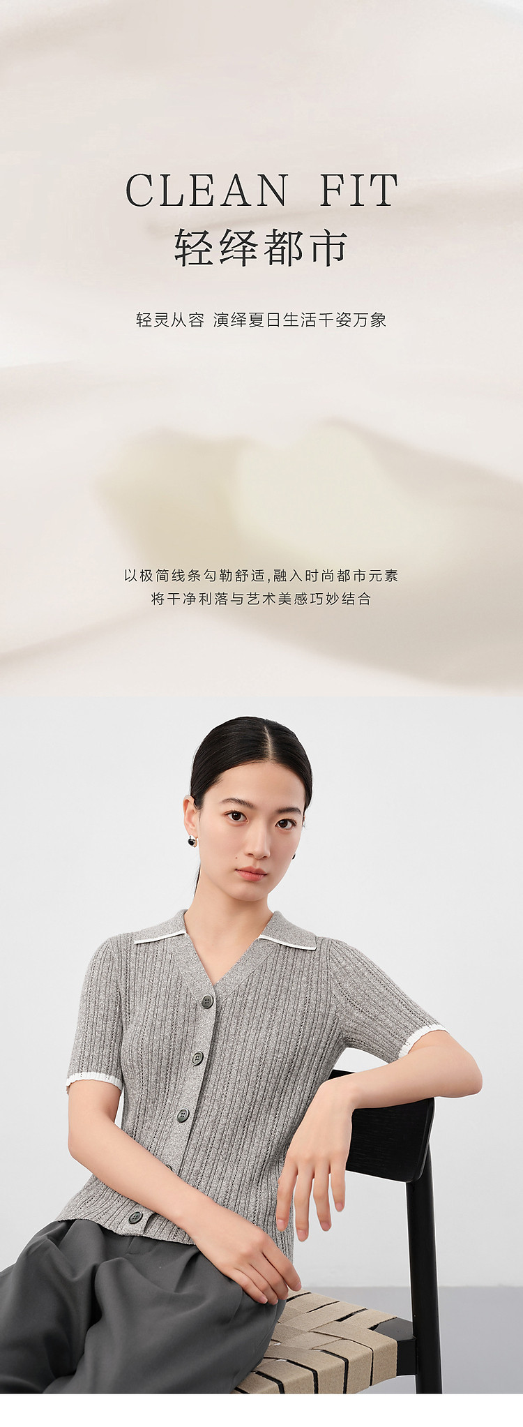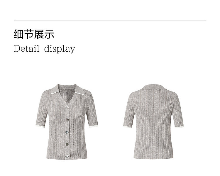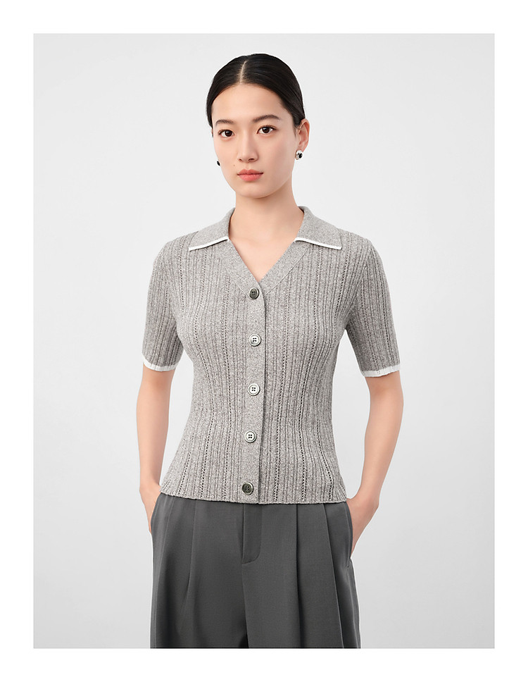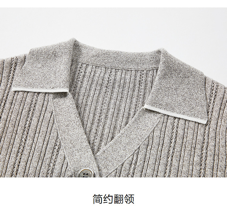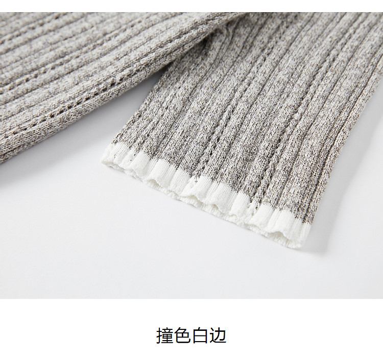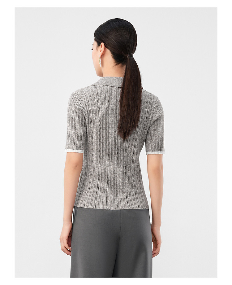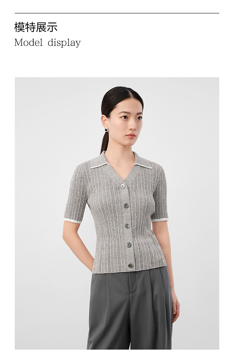 旗下安娜蔻系列通勤风clean fit亚麻镂空翻领撞色针织衫夏季 977932