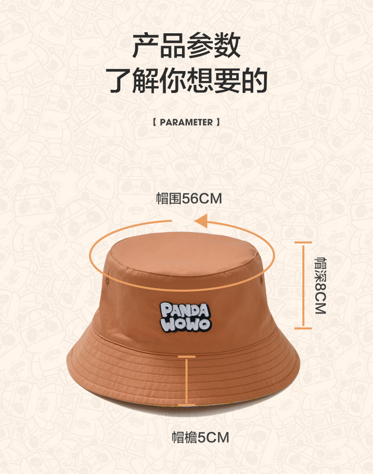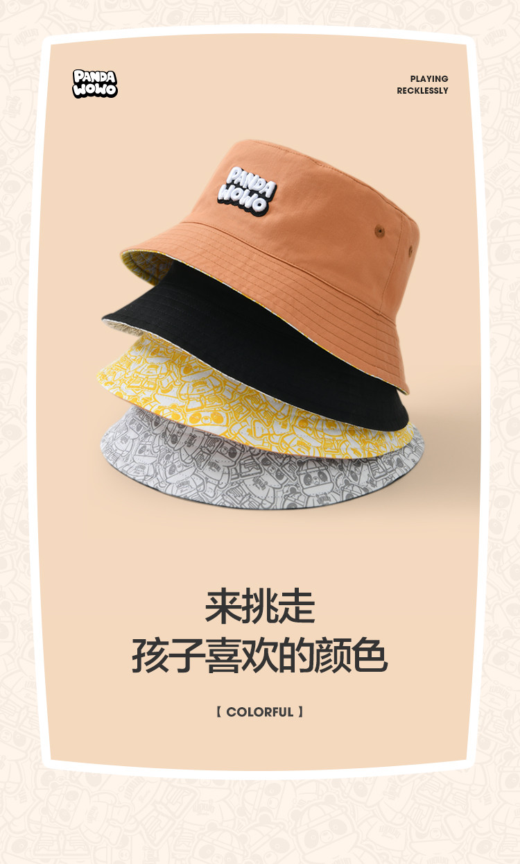 商品名称:儿童渔夫帽双面遮阳春夏户外运动可爱熊猫中大童男女可爱百搭 967446