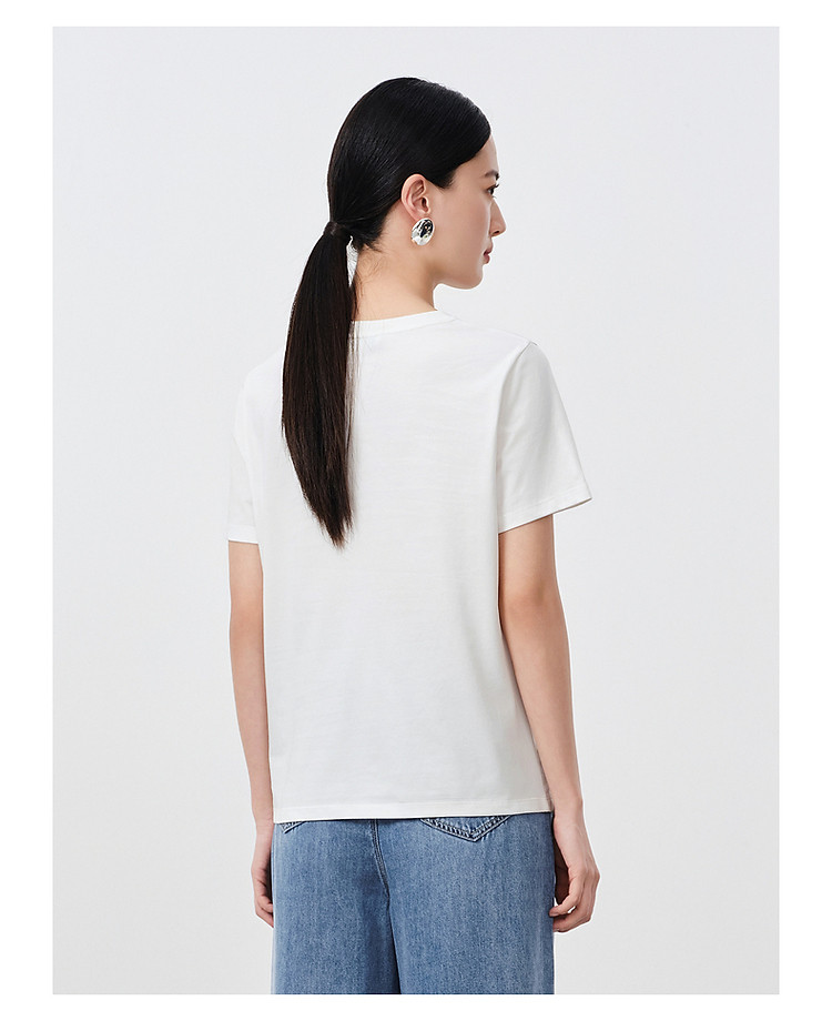 玖姿旗下安娜蔻系列简约绣花丝光棉正肩舒适短袖T恤女 654284