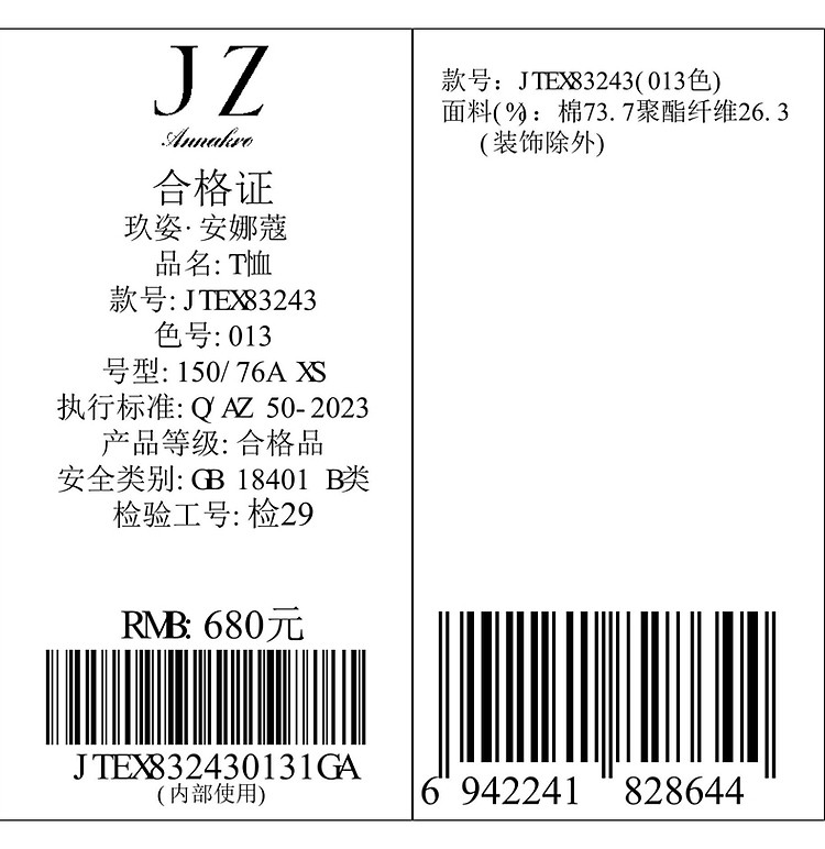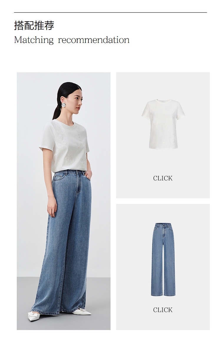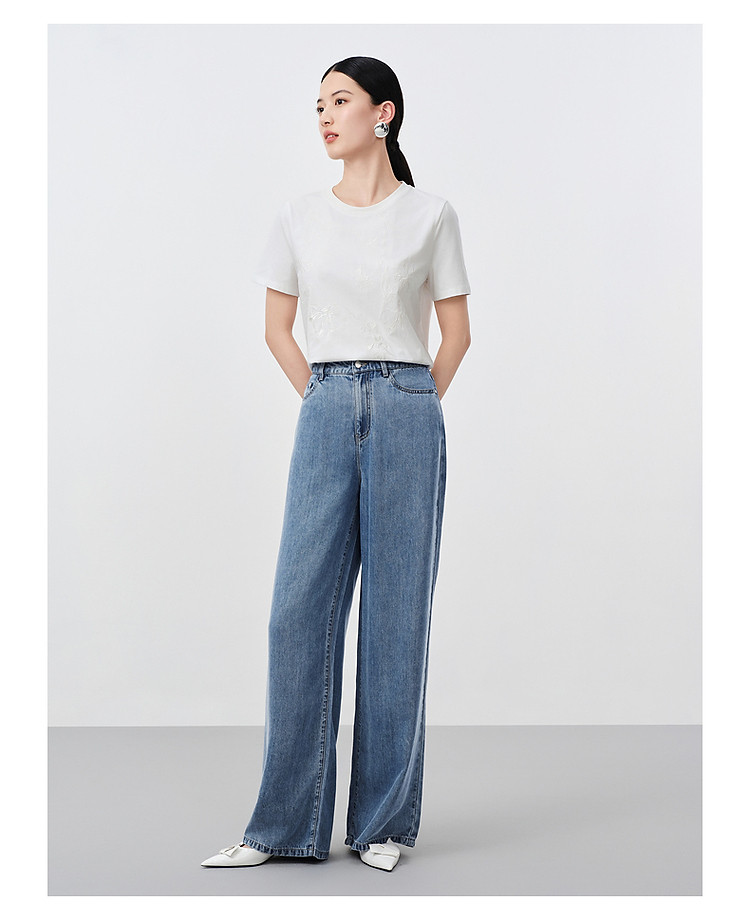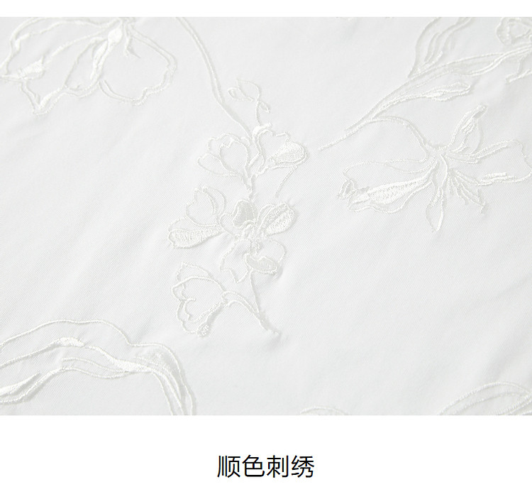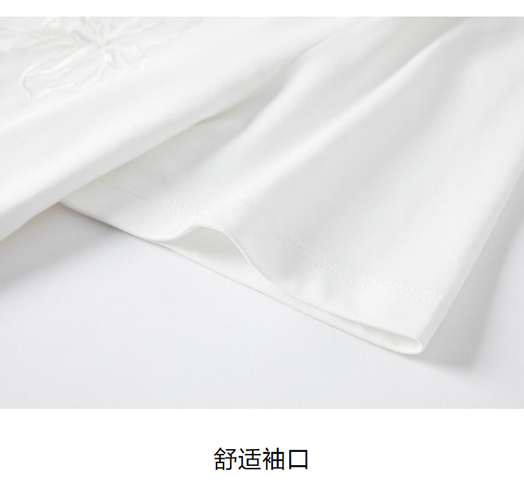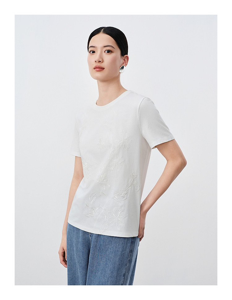 商品名称:玖姿旗下安娜蔻系列简约绣花丝光棉正肩舒适短袖T恤女 654284